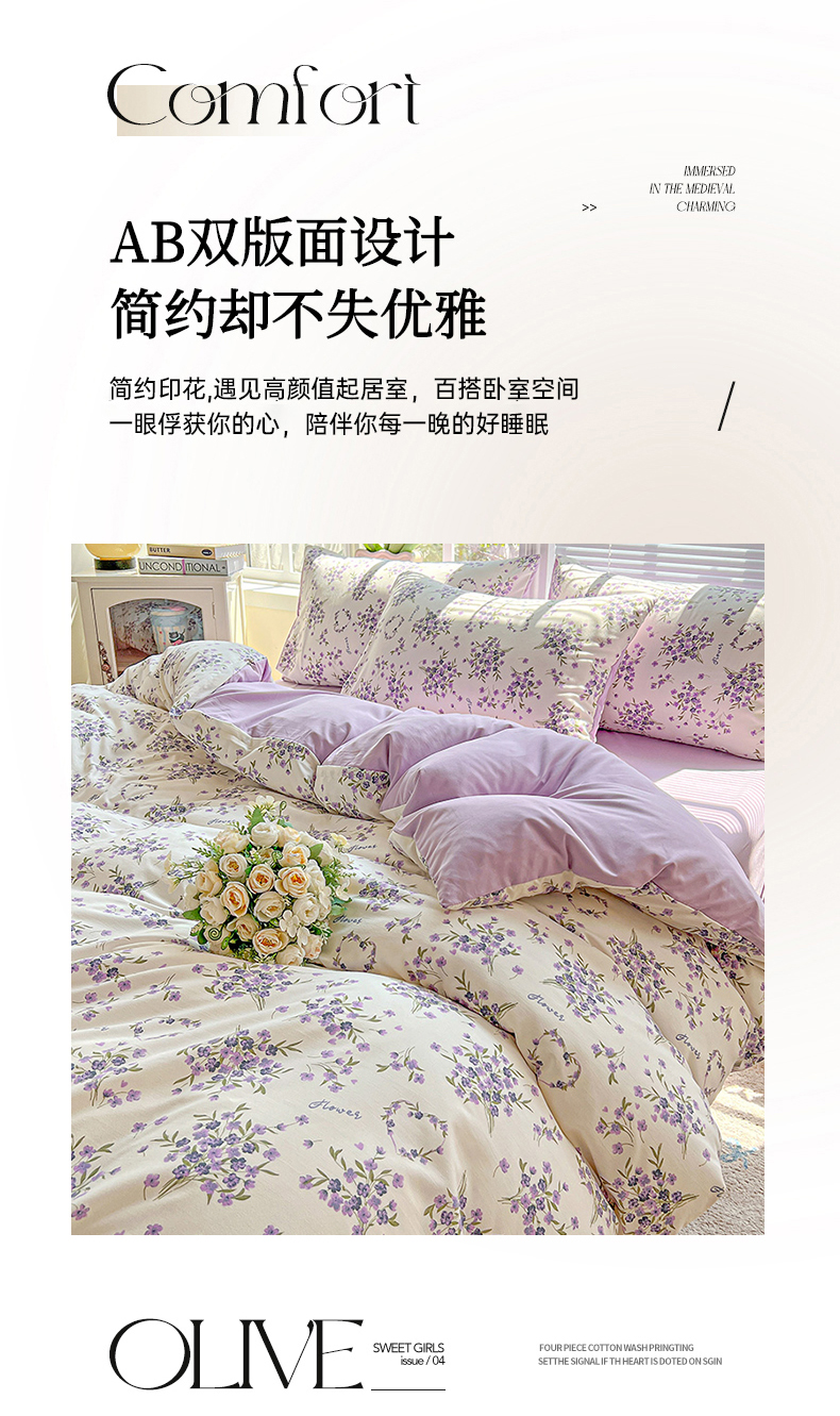 当前位置: 91家纺网 > 商品网购 > 床品套件 > 四件套 > 其它四件套 > 2025新款水洗云朵糯糯棉简约风ins风小碎花被套床单款床笠款三四件套 紫颜