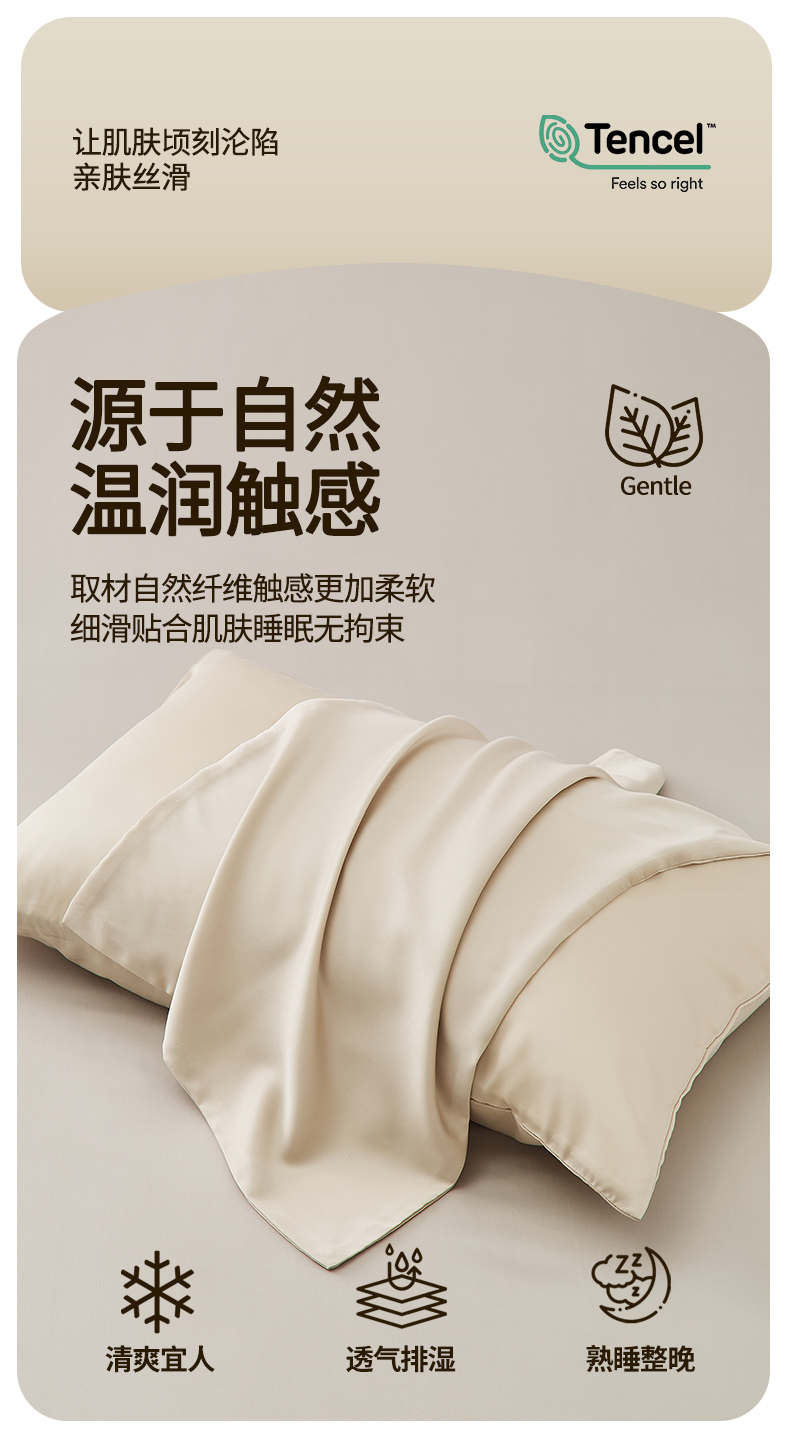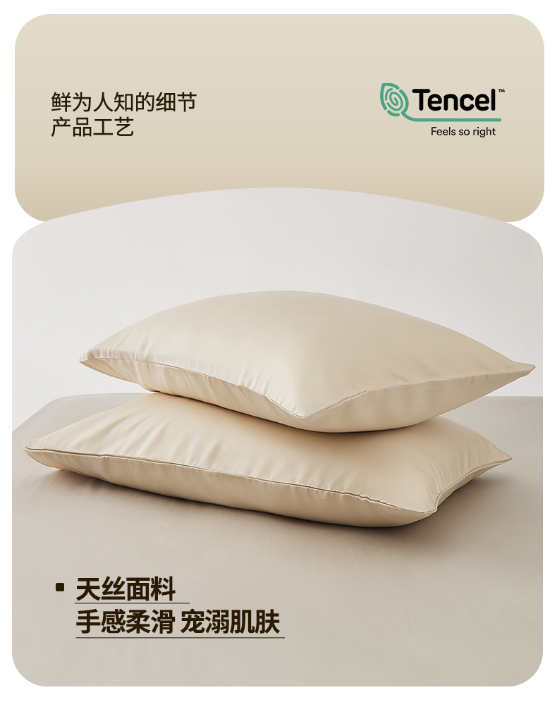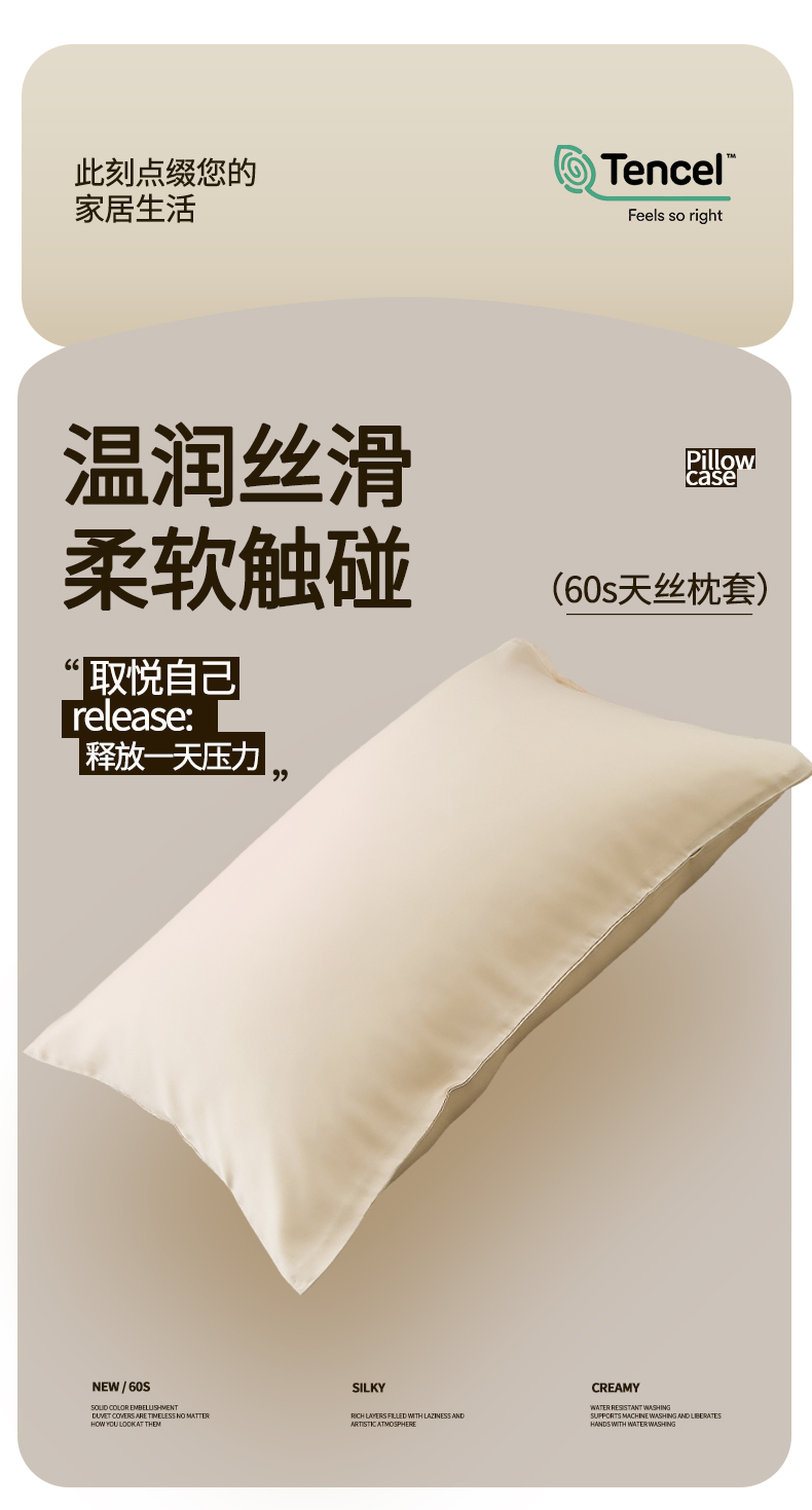 商品名称:禧缘家纺(原梦想家) 2025新款60天丝简约舒适纯色单品系列-单枕套 香槟金