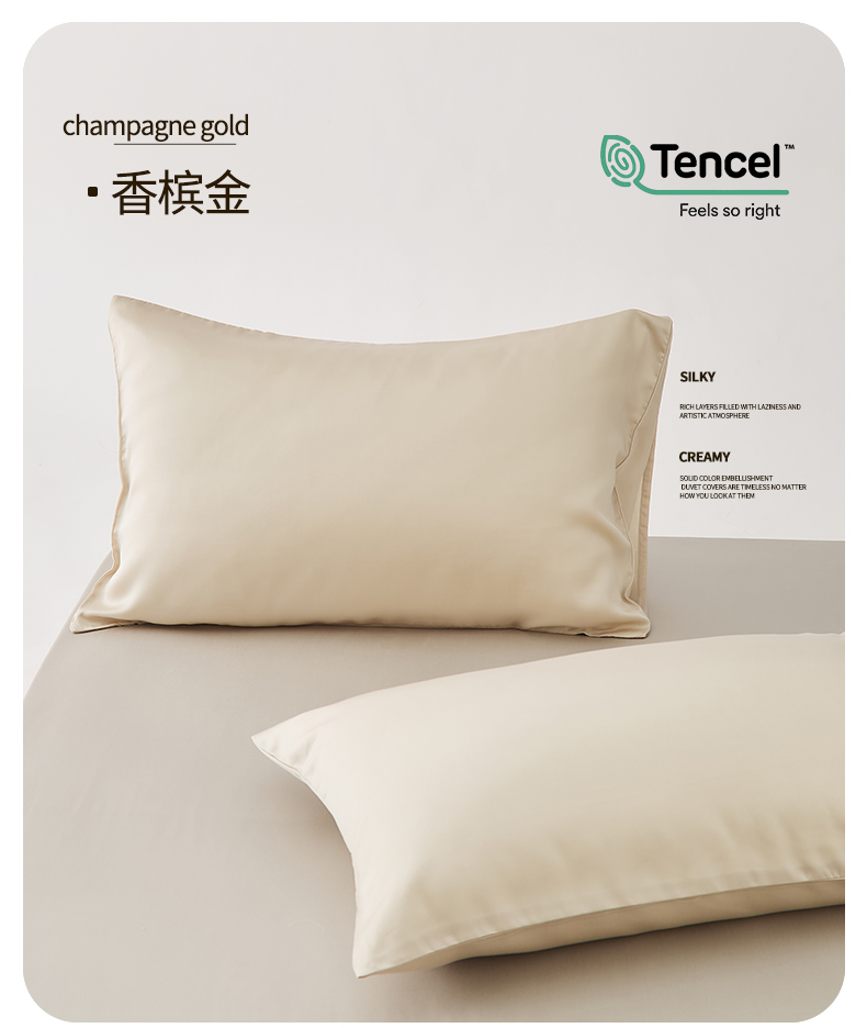 禧缘家纺(原梦想家) 2025新款60天丝简约舒适纯色单品系列-单枕套 香槟金