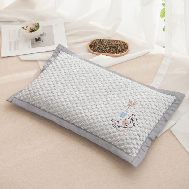 凉豆豆熬夜枕系列荞麦枕-小猫送花灰色35*55cm/只