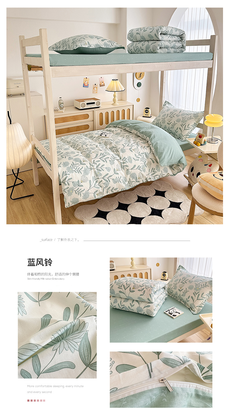 商品名称:卡普 2025新款爆款加厚卡通小清新全棉纯棉学生宿舍三件套床笠隔天可拿蓝风铃