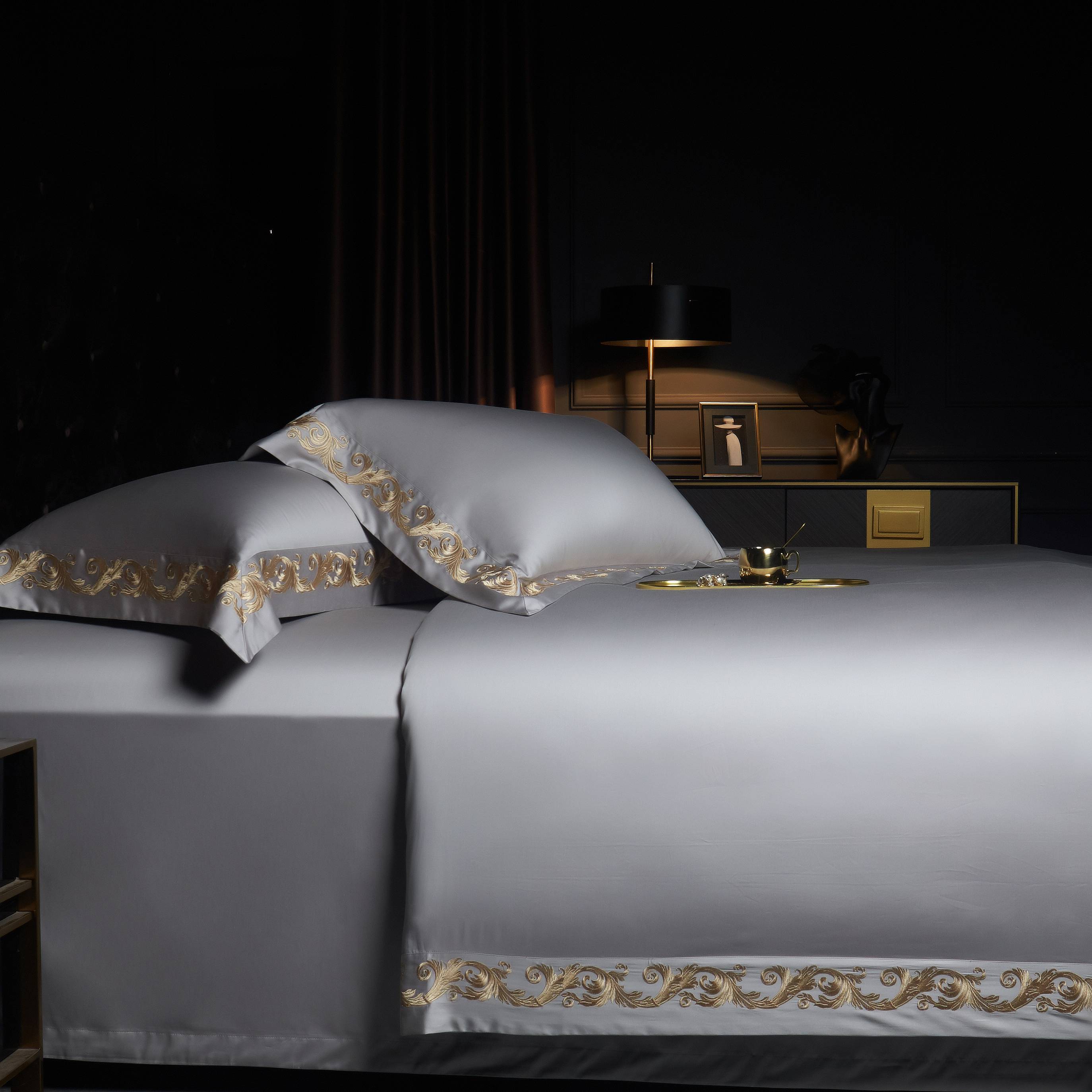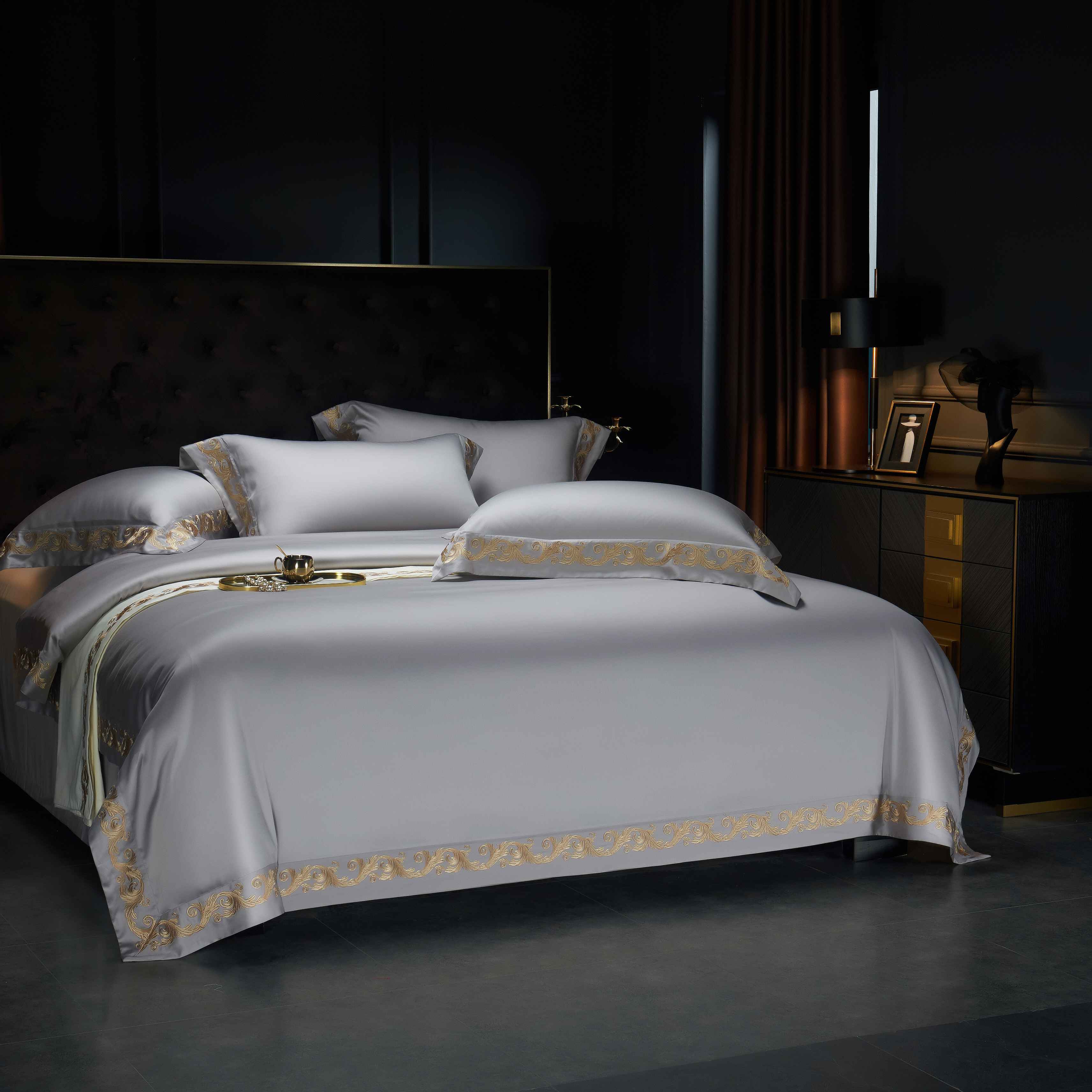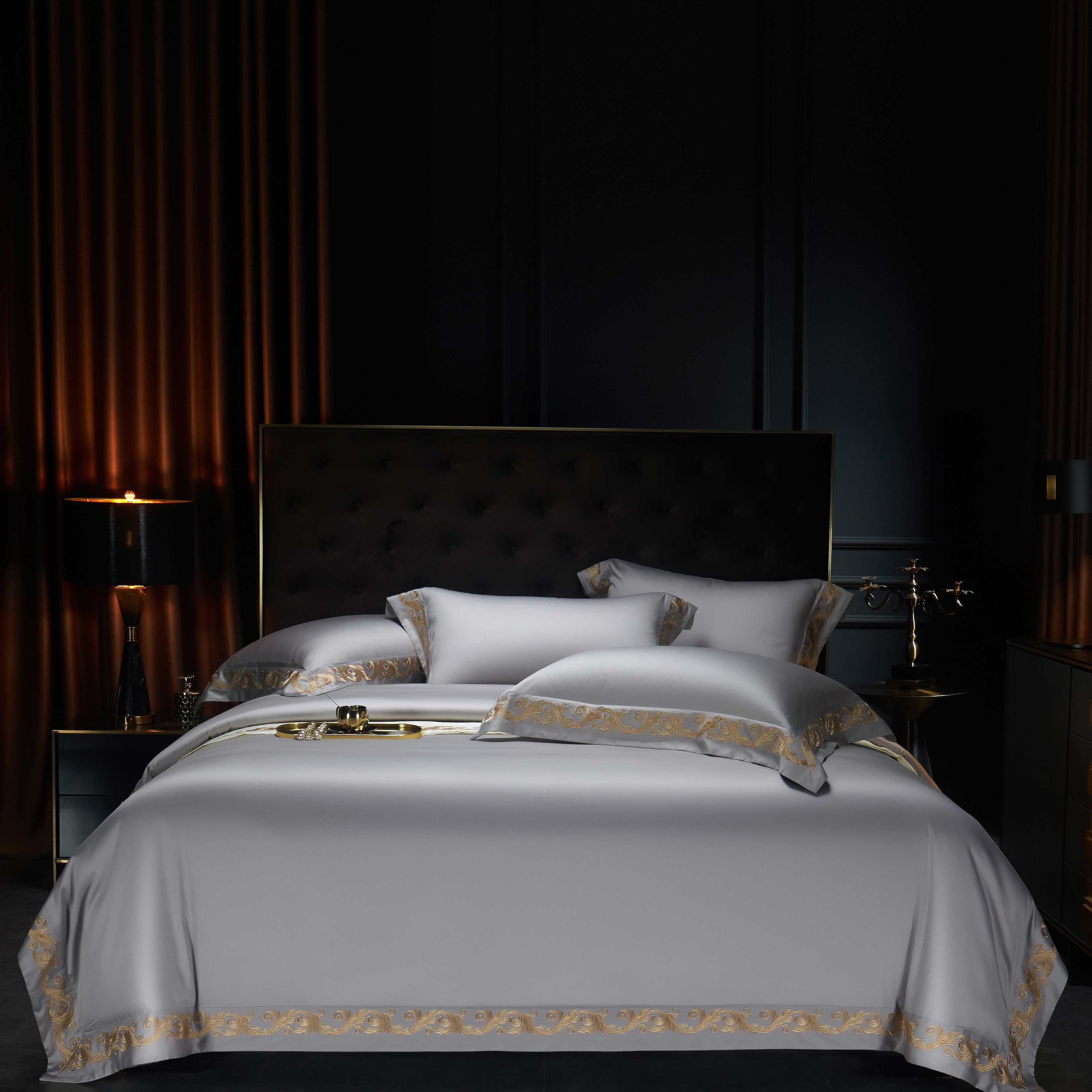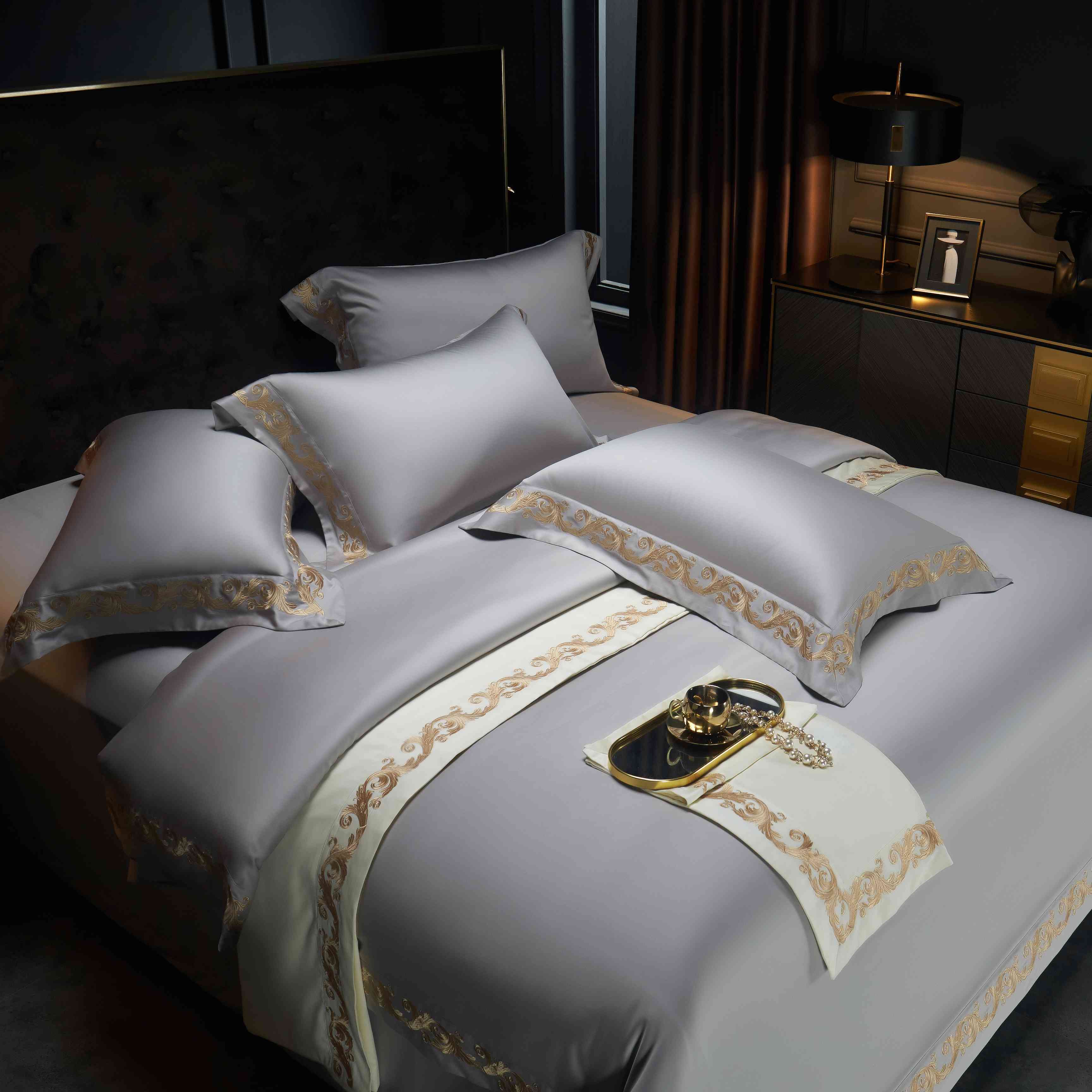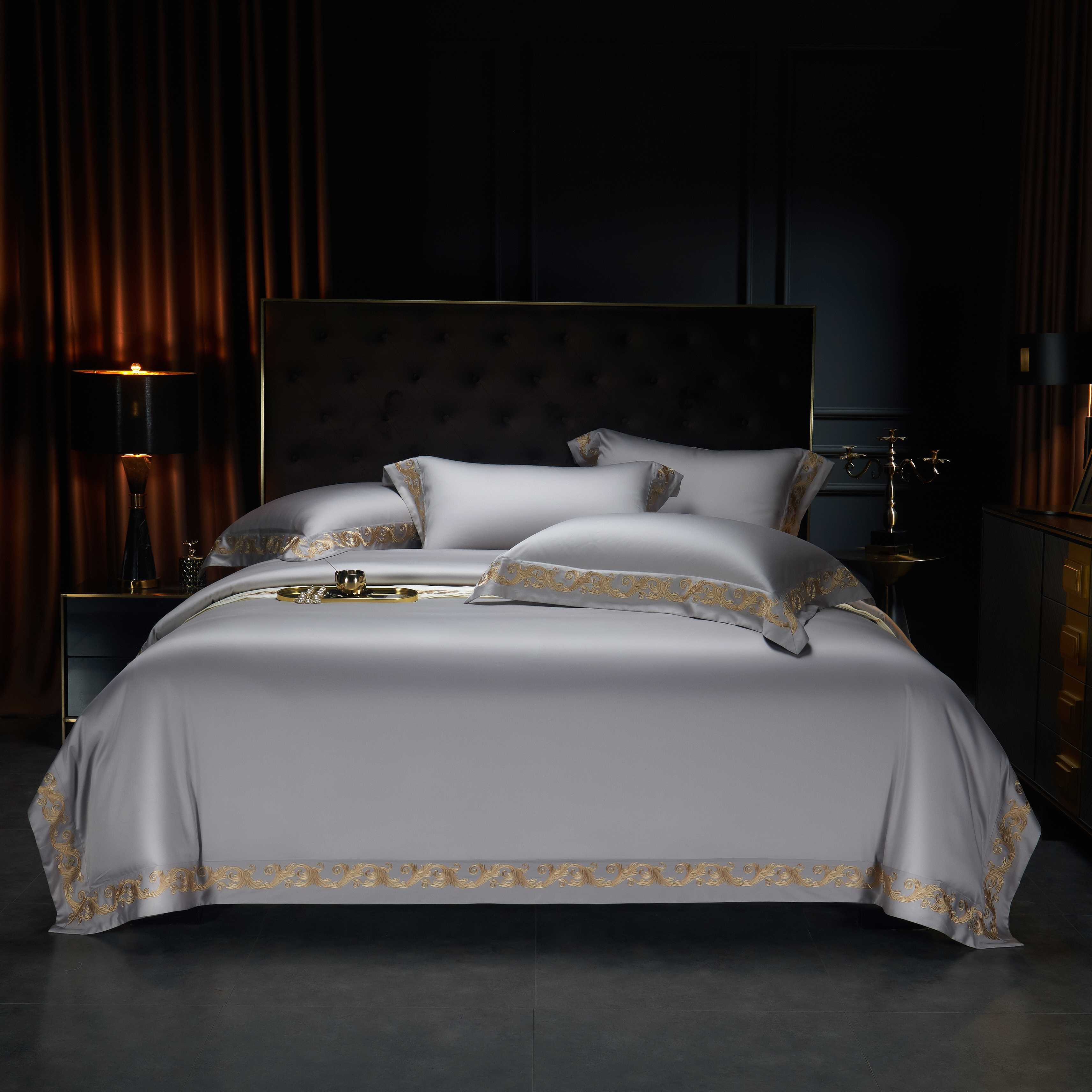 缔缦 2025新款高端定织面料S140长绒棉精梳棉重磅刺绣四件套罗莎系列 高级灰