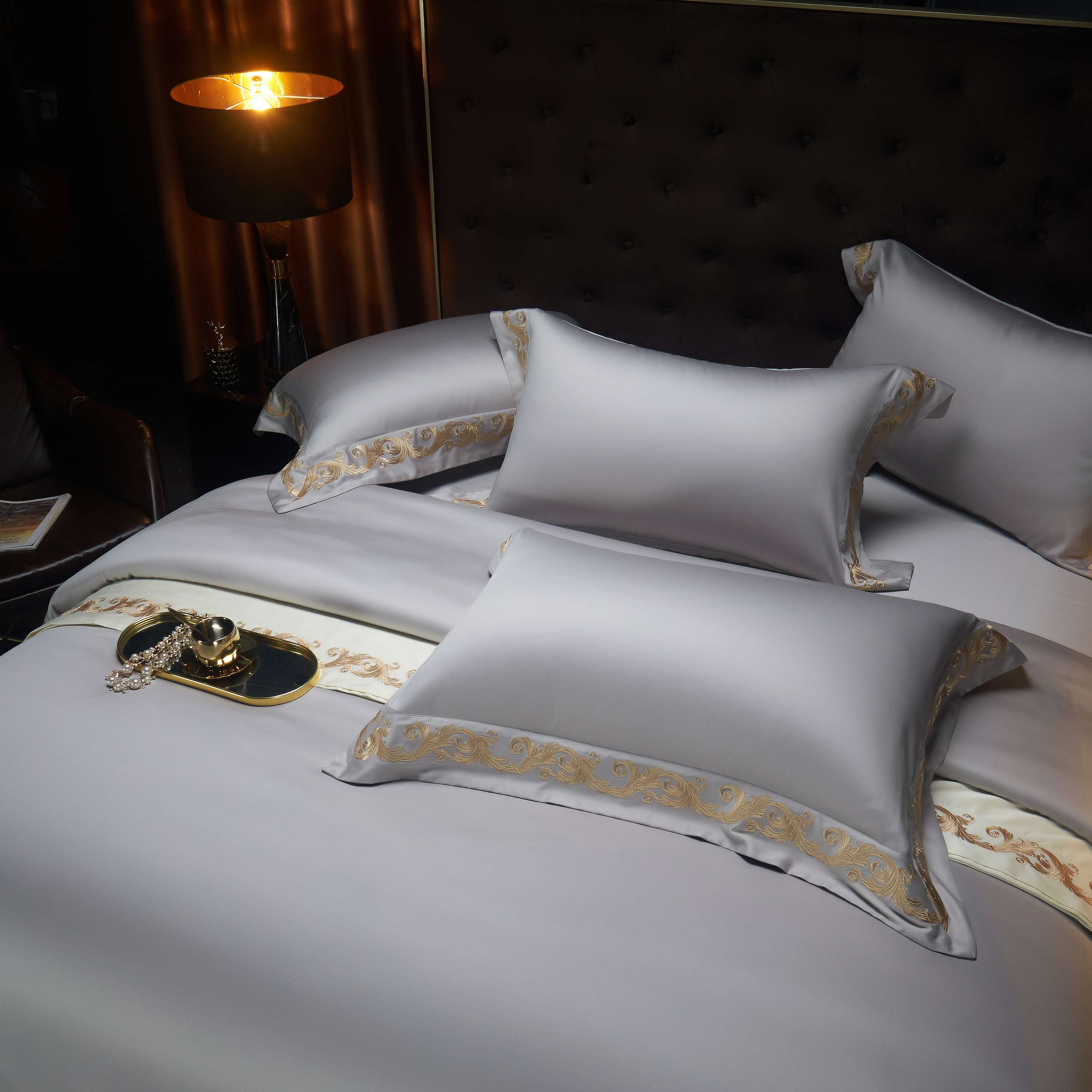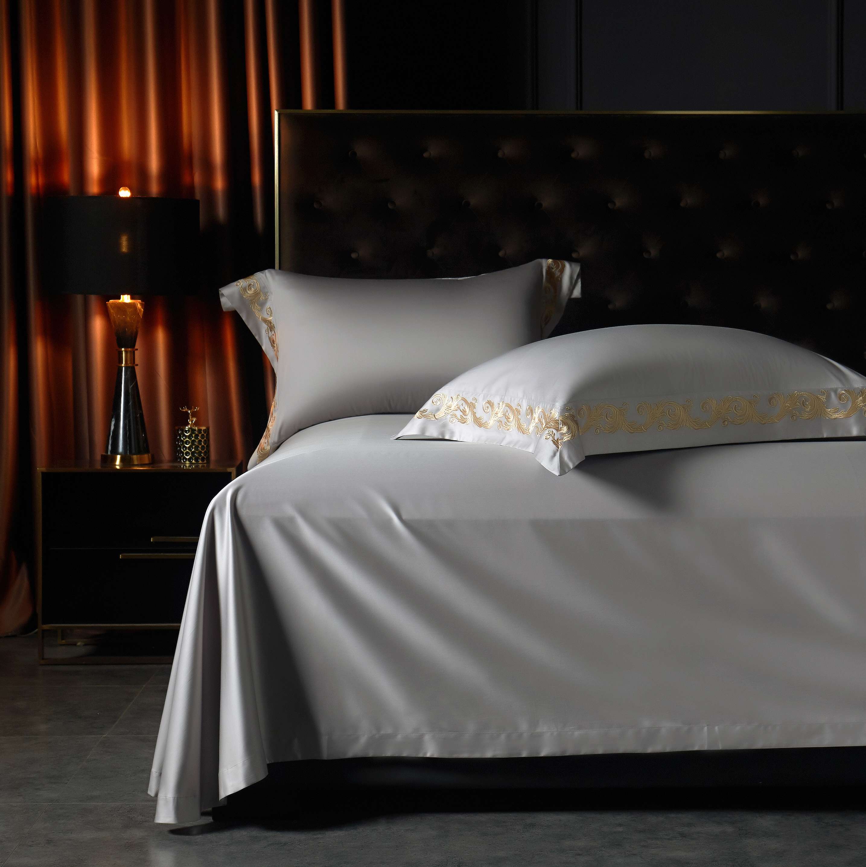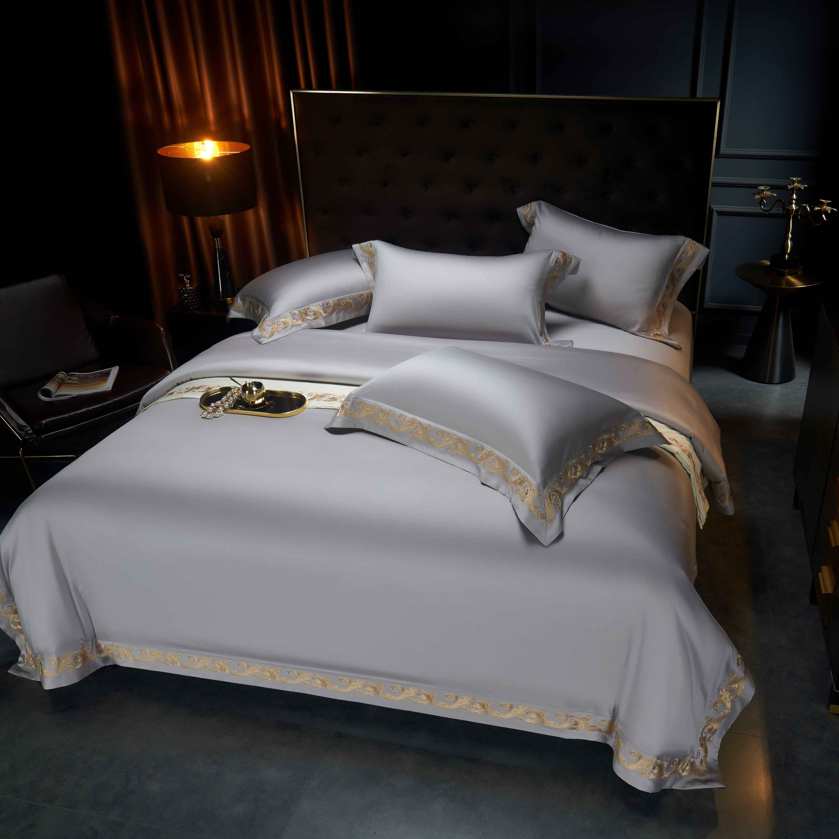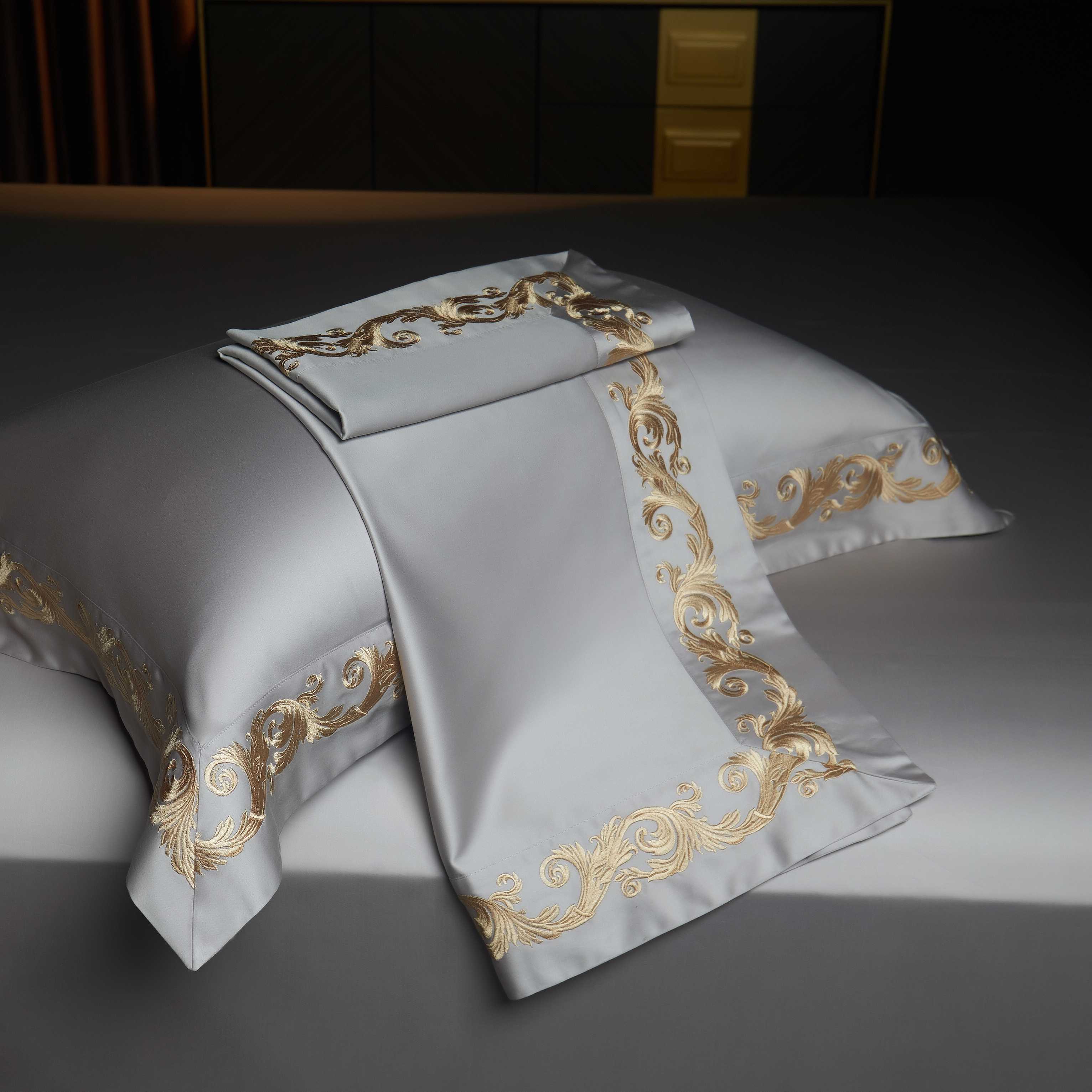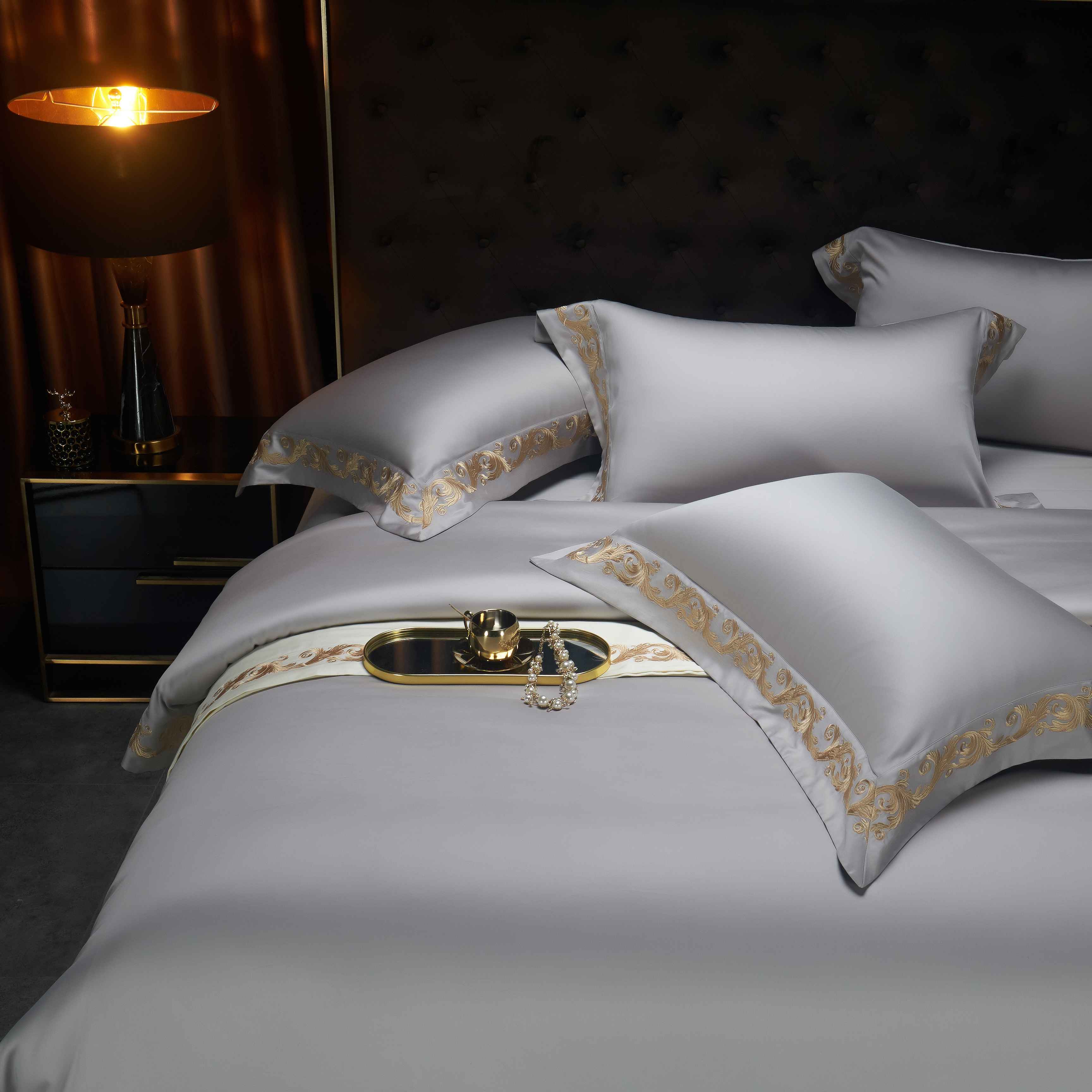 缔缦 2025新款高端定织面料S140长绒棉精梳棉重磅刺绣四件套罗莎系列 高级灰