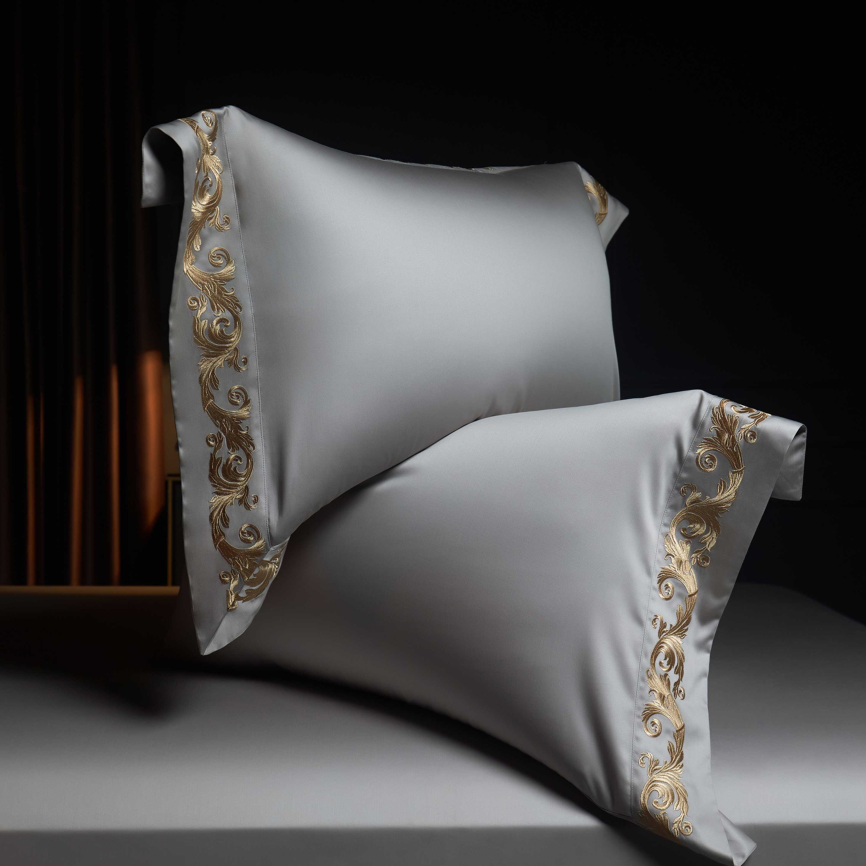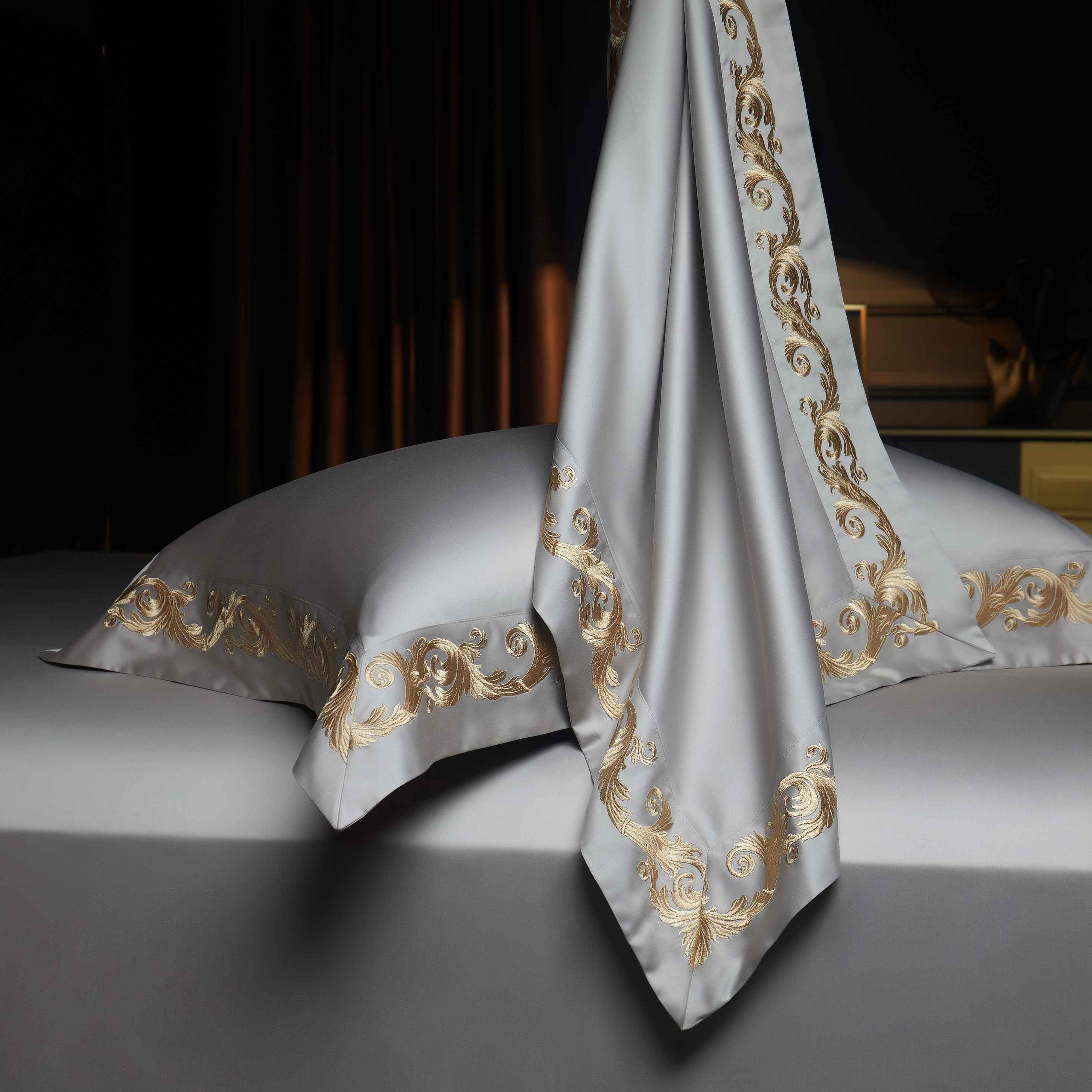商品名称:缔缦 2025新款高端定织面料S140长绒棉精梳棉重磅刺绣四件套罗莎系列 高级灰