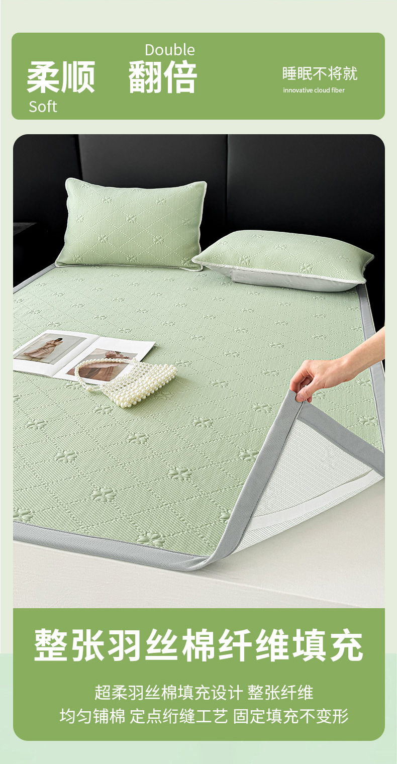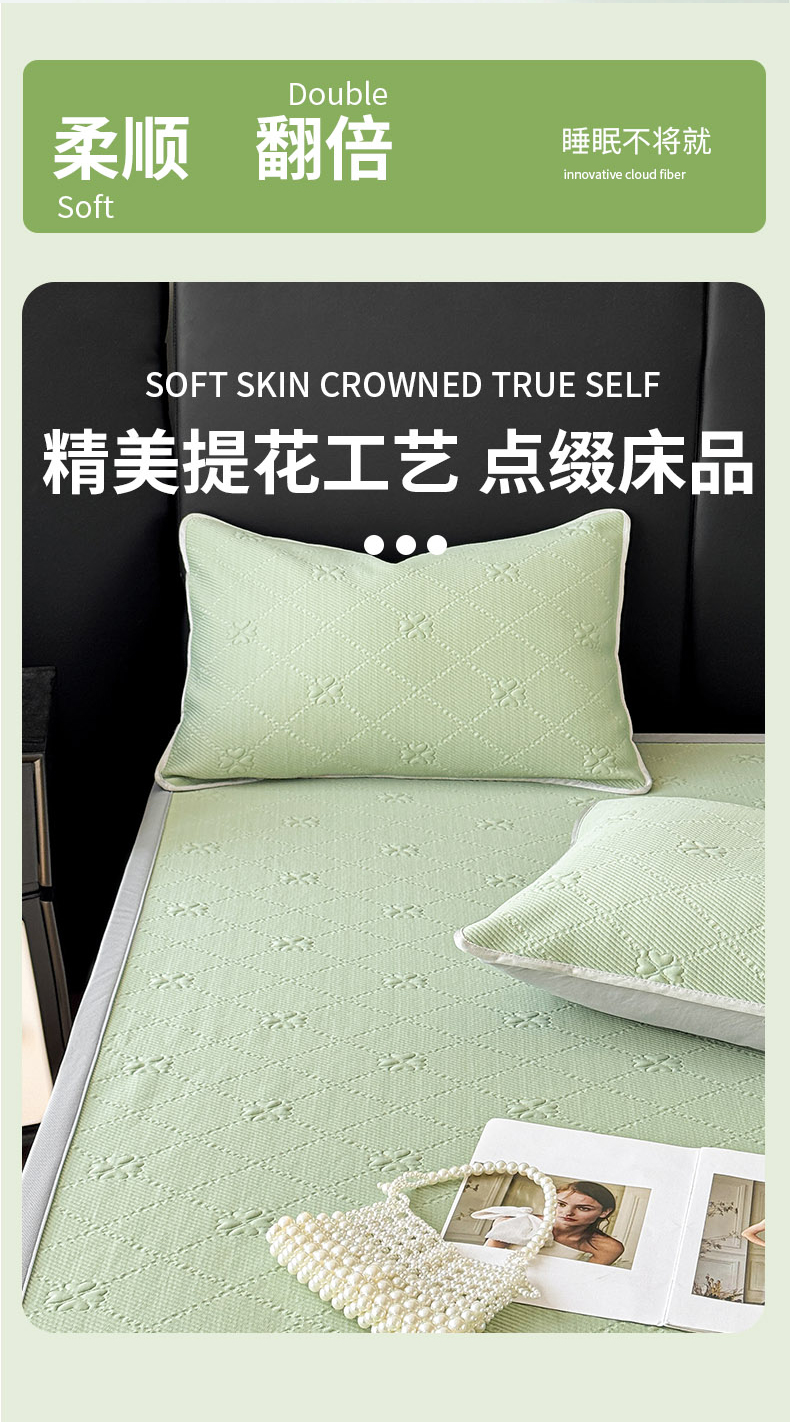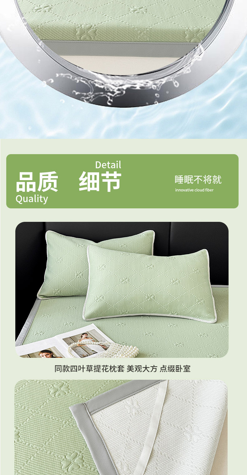吉祥家纺 2025新款提花四叶草凉席床席款 四叶草绿