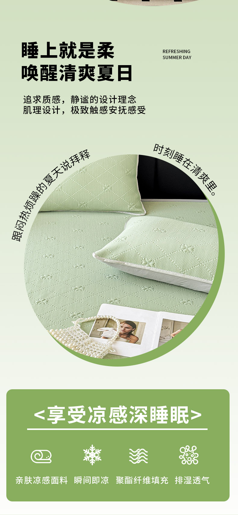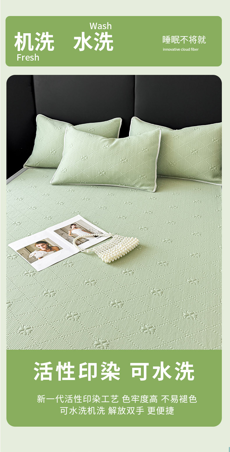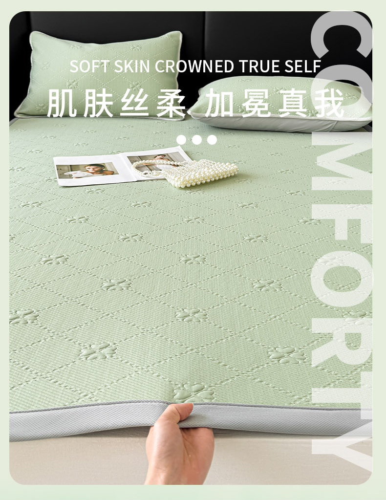 吉祥家纺 2025新款提花四叶草凉席床席款 四叶草绿