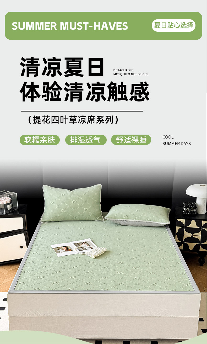 (总)吉祥家纺 2025新款提花四叶草凉席床席款,四叶草粉,四叶草黄,四叶草灰,四叶草蓝,四叶草绿
