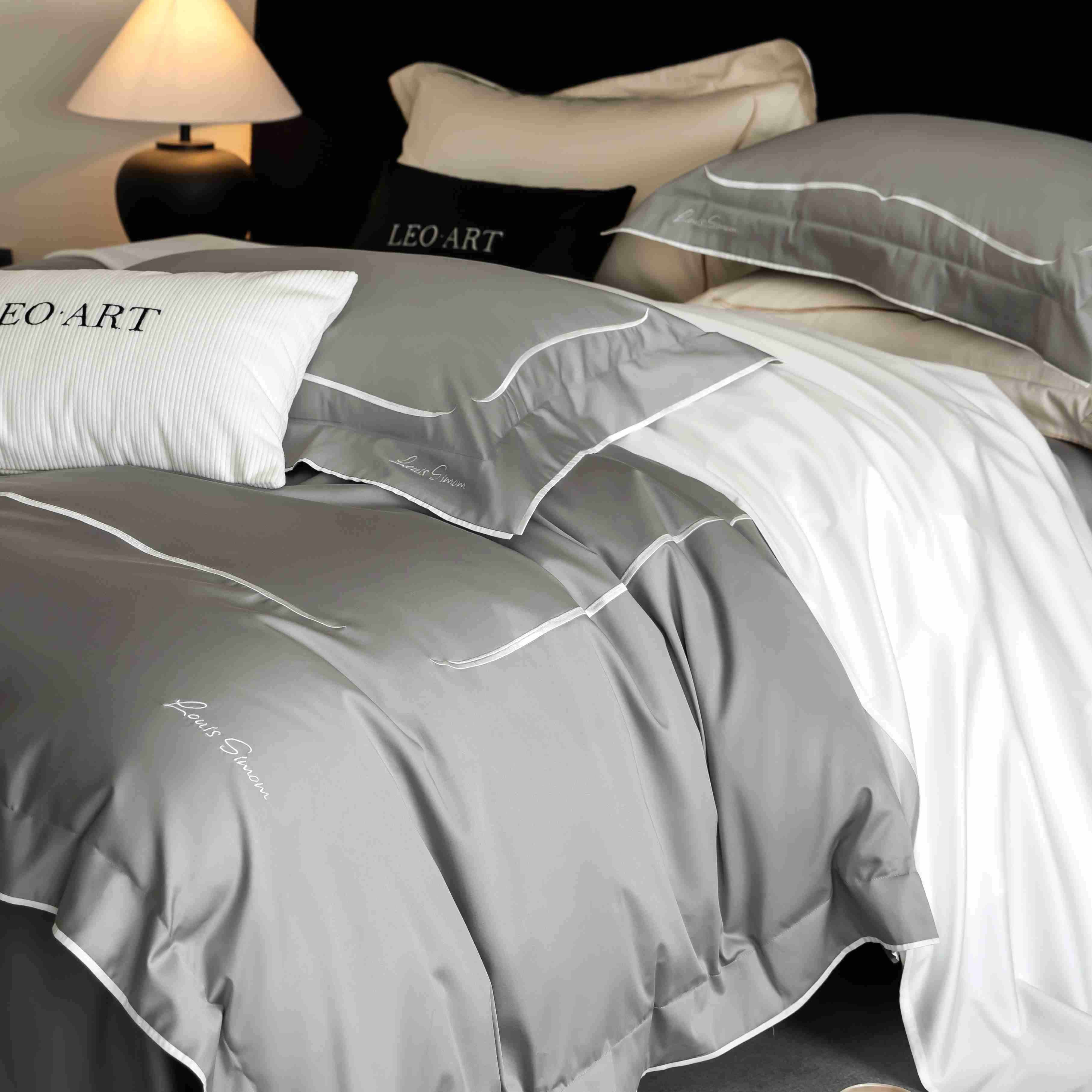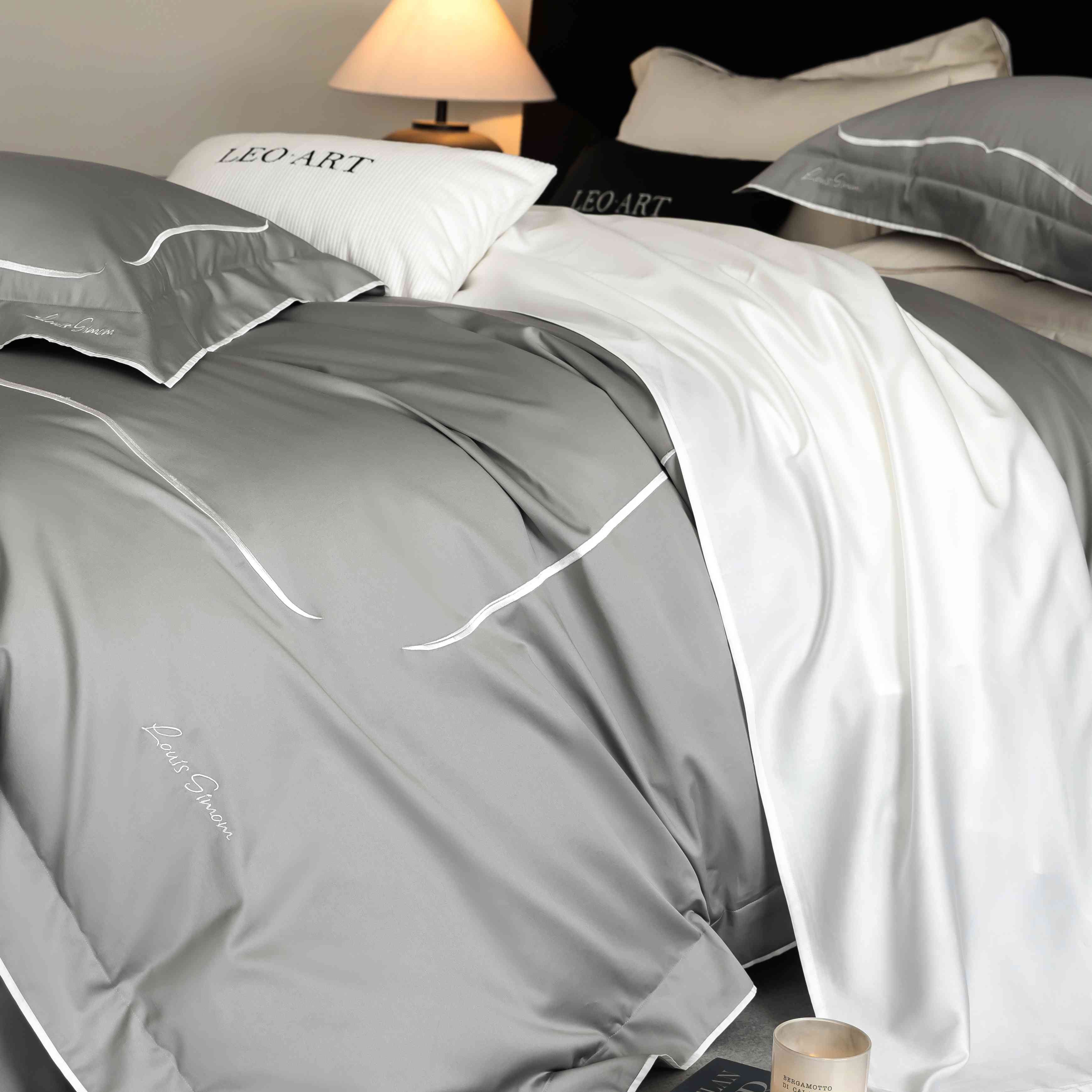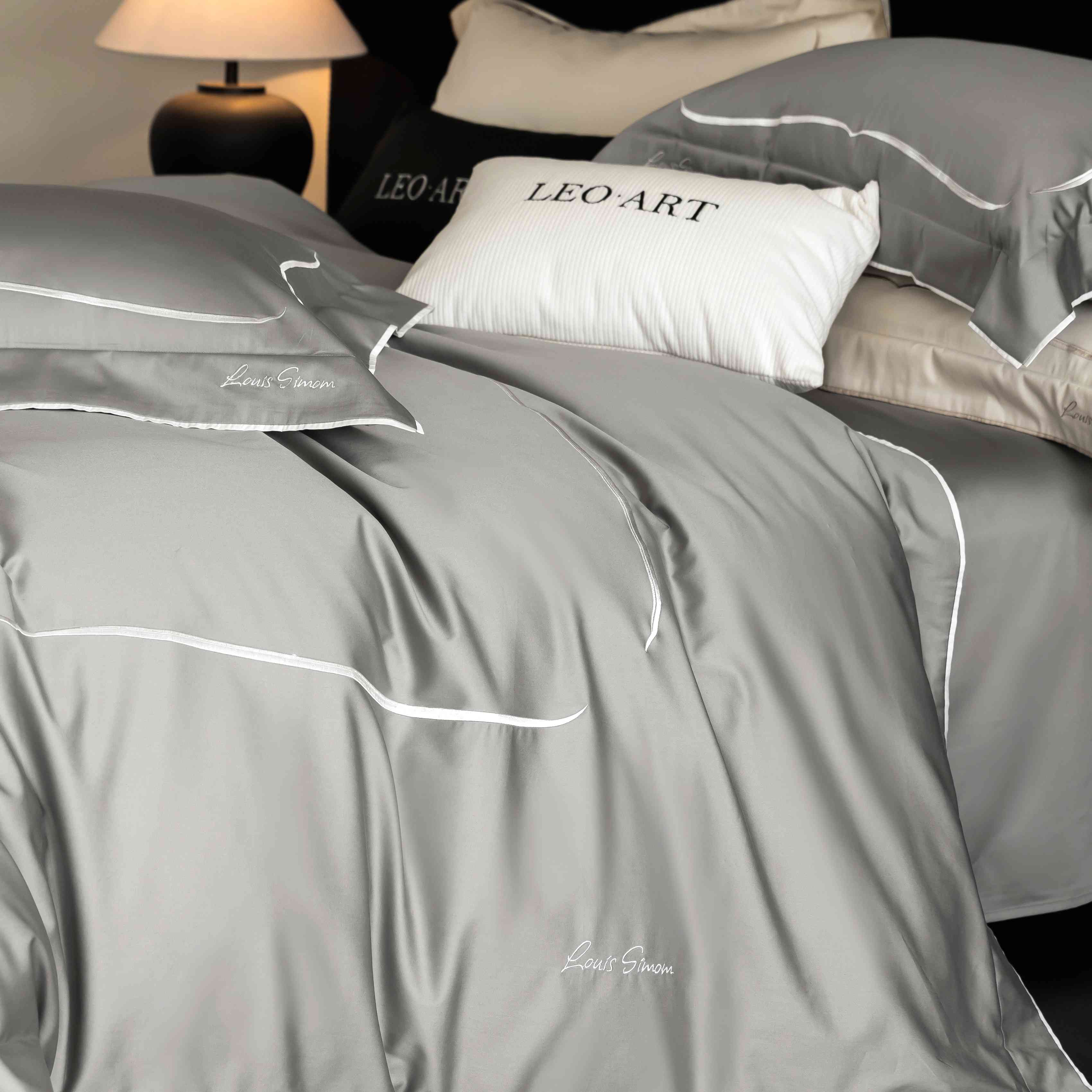 (总)涞澳家纺 2026新款埃及长绒棉纯棉四件套-简行,简行-炊烟灰,简行-玉粉,简行-月光银
