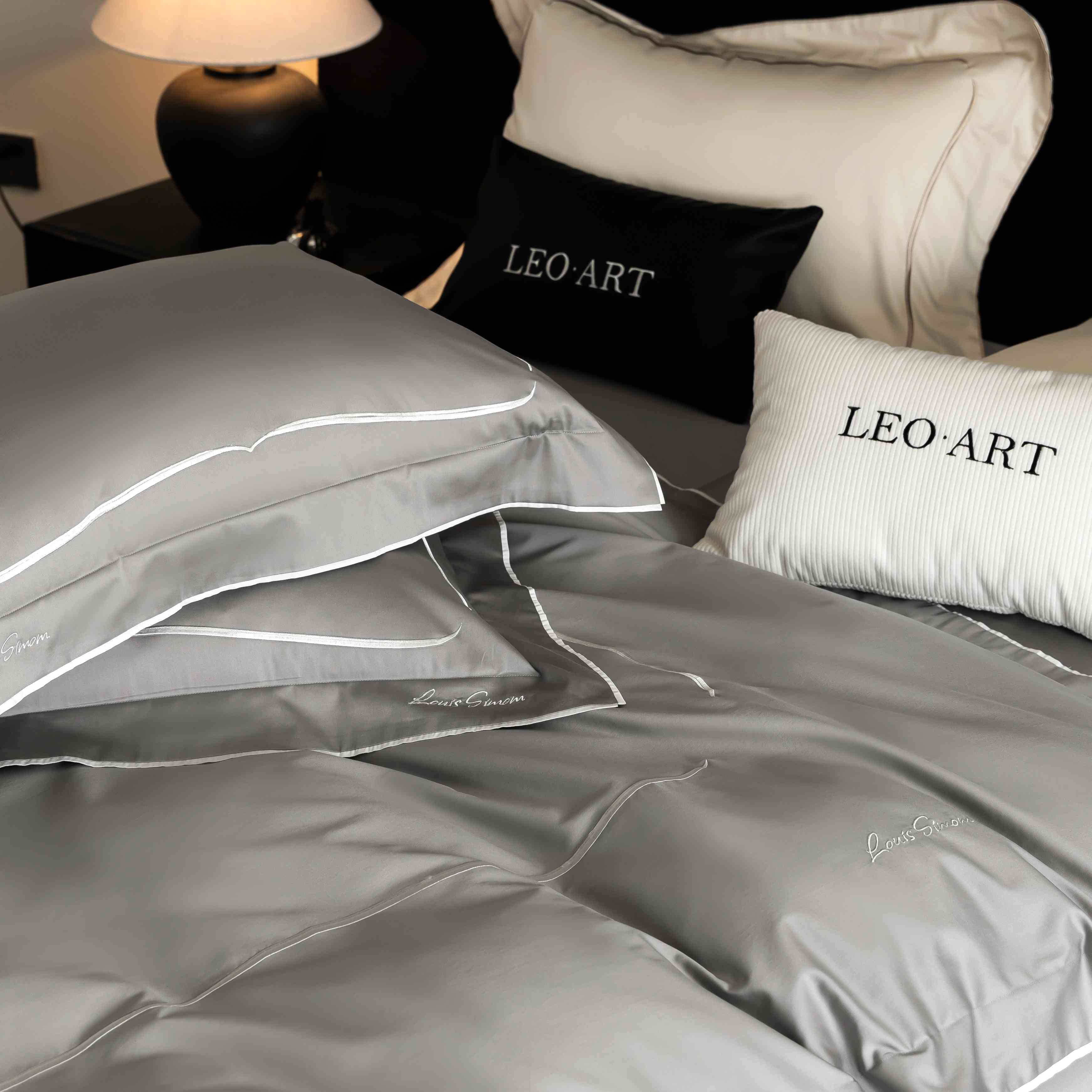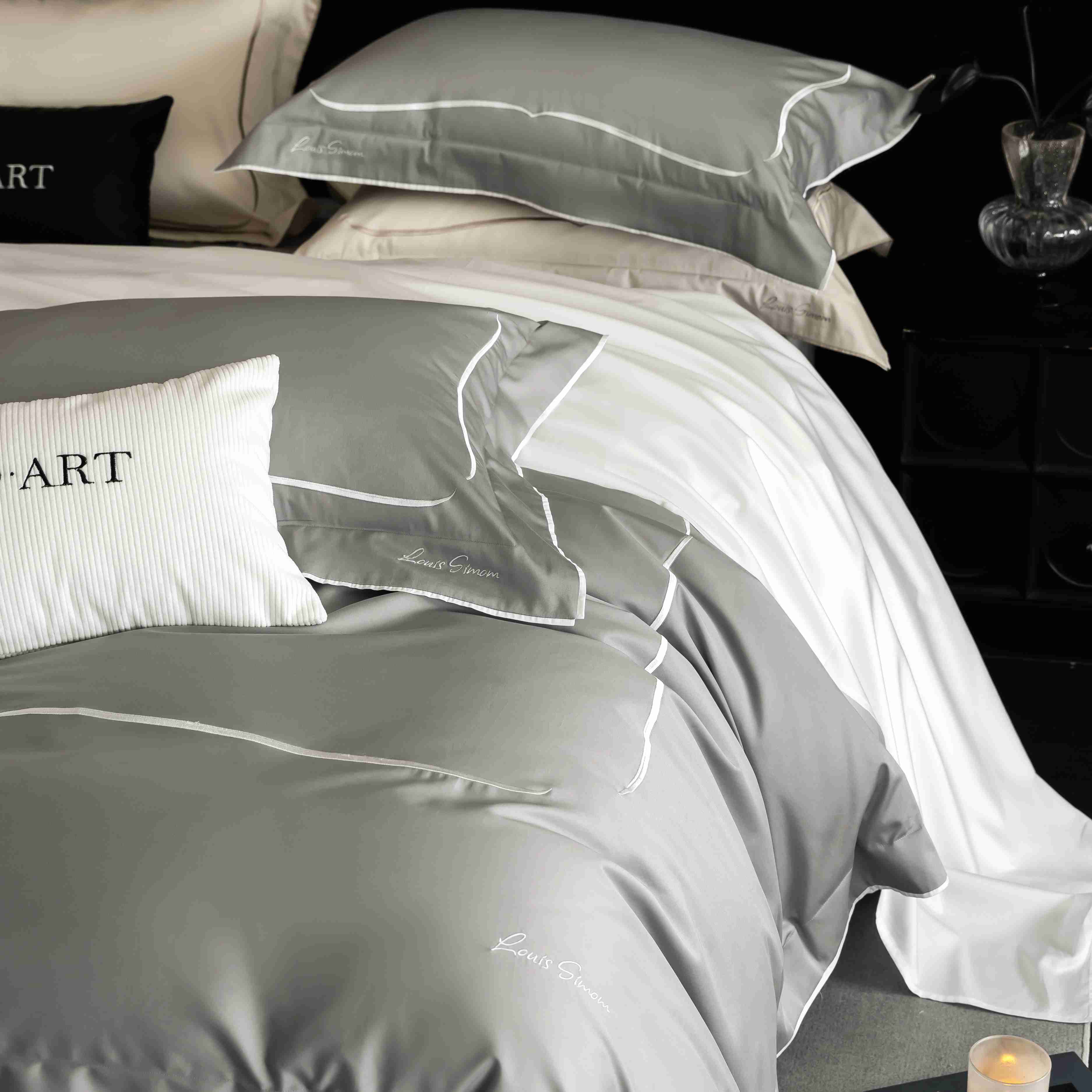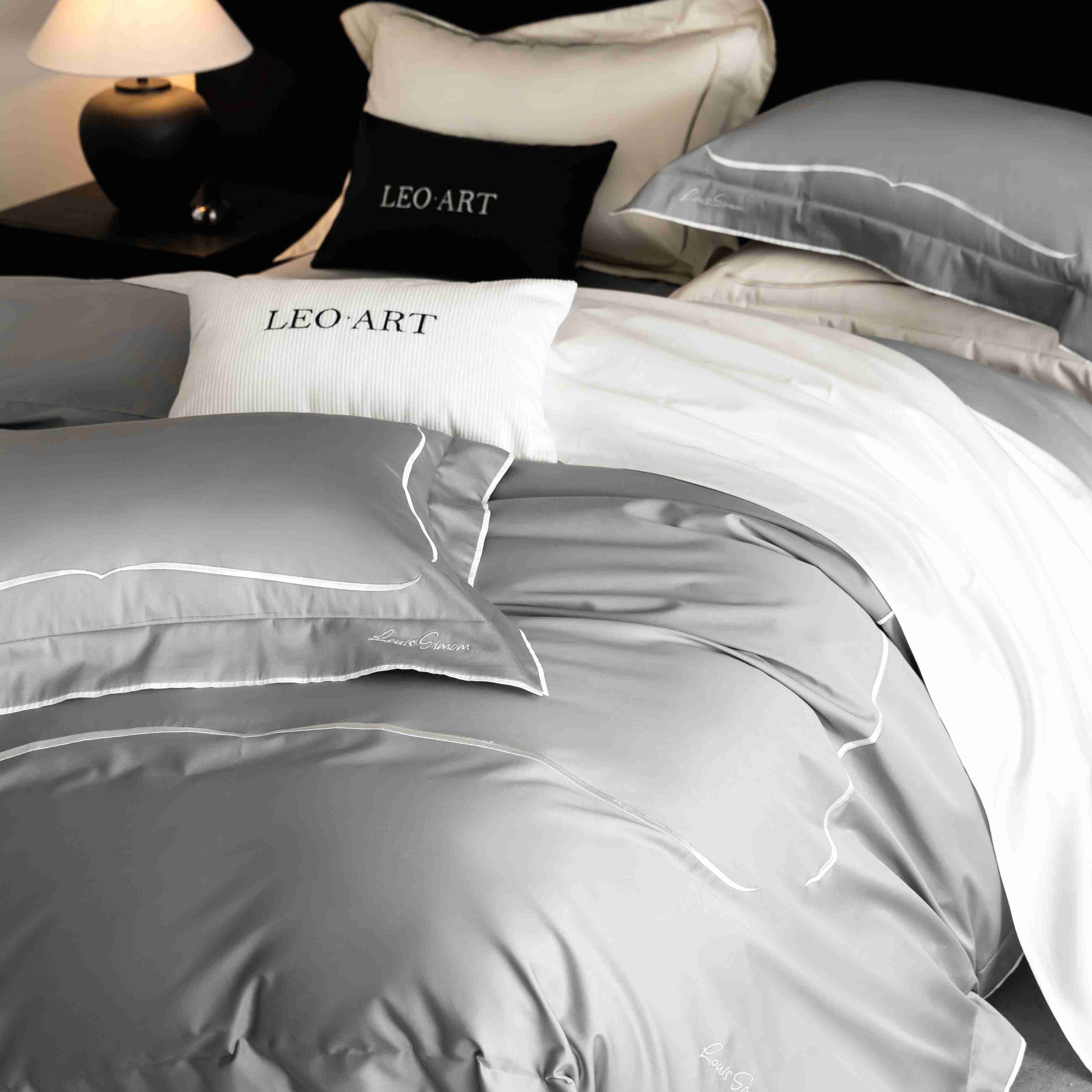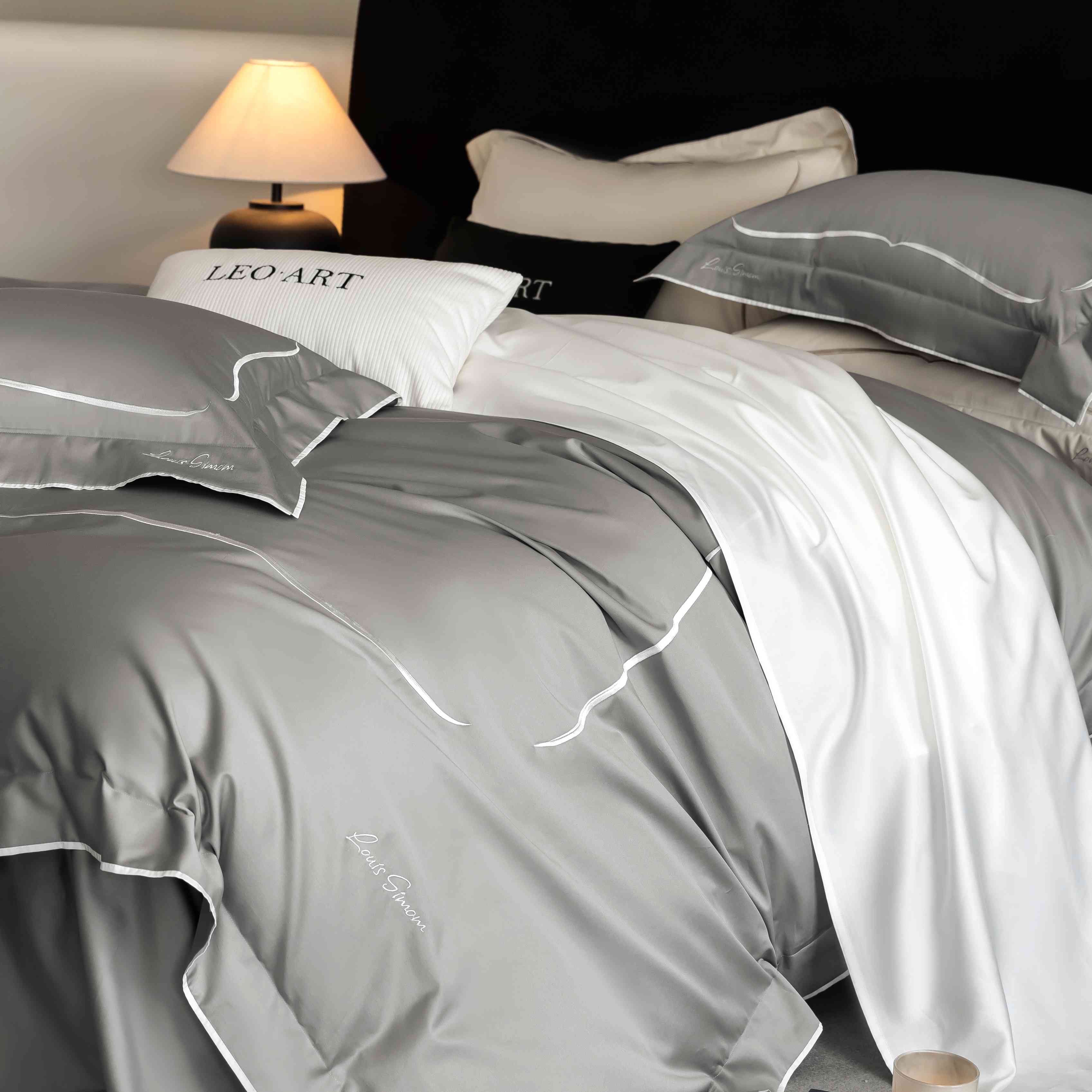 (总)涞澳家纺 2026新款埃及长绒棉纯棉四件套-简行,简行-炊烟灰,简行-玉粉,简行-月光银