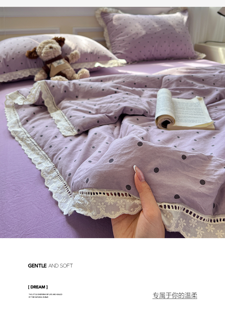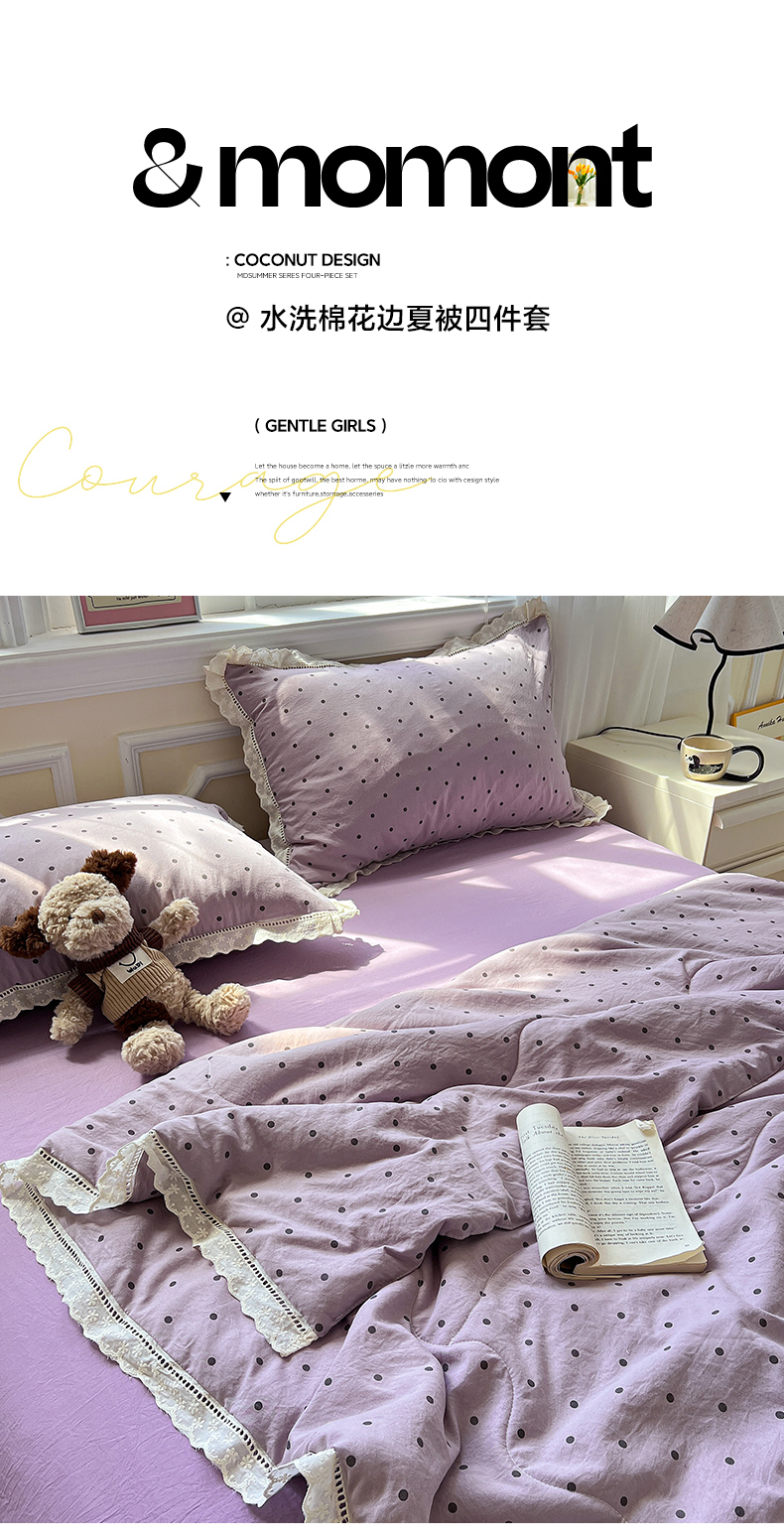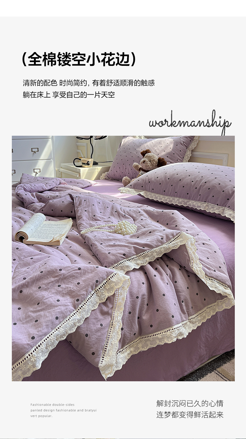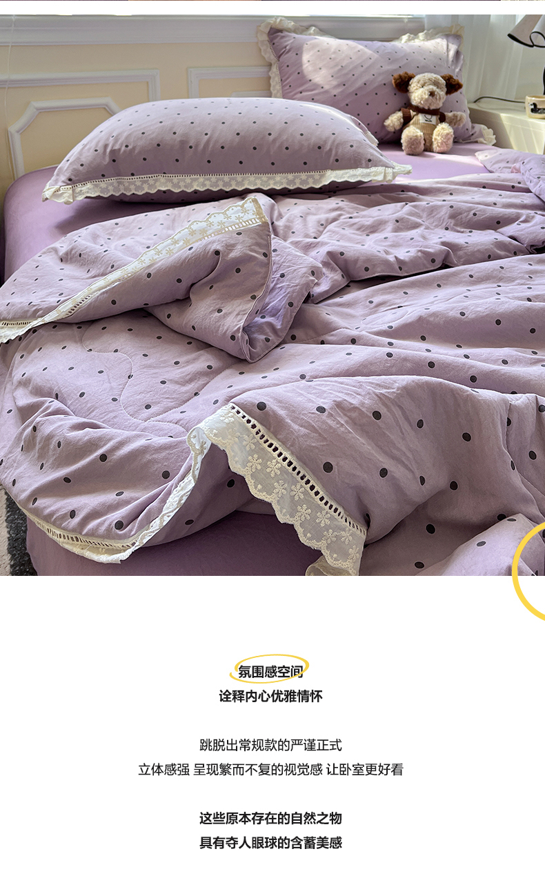 水墨江南 2025新款全棉镂空花边夏被四件套 芋泥波波