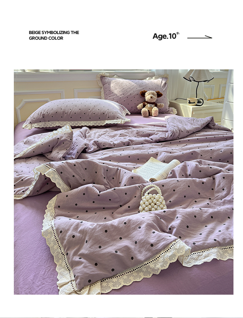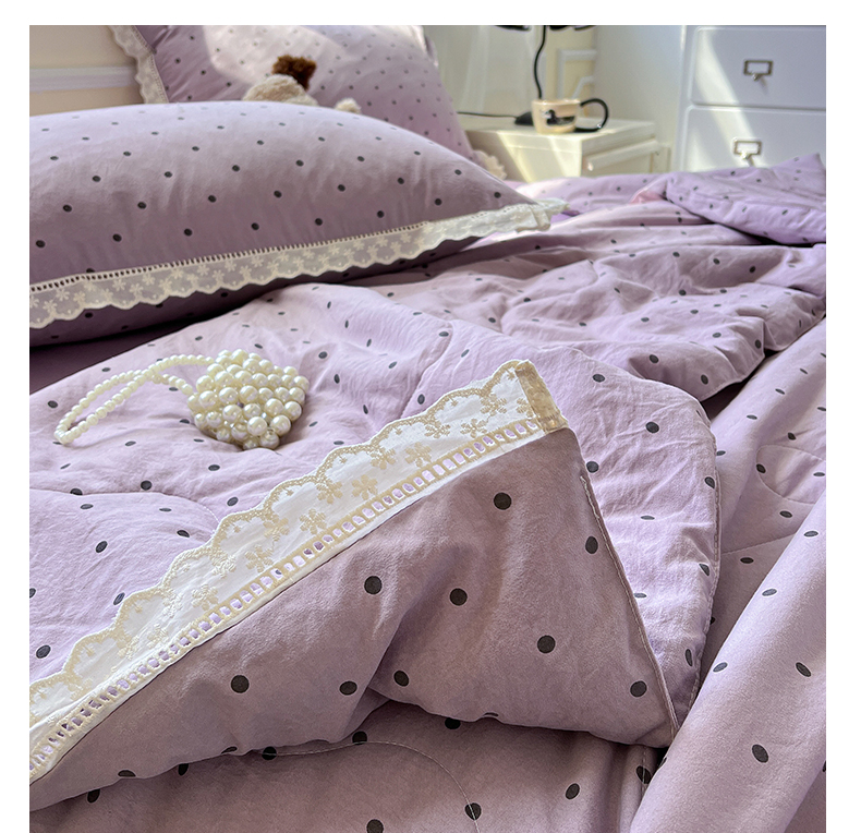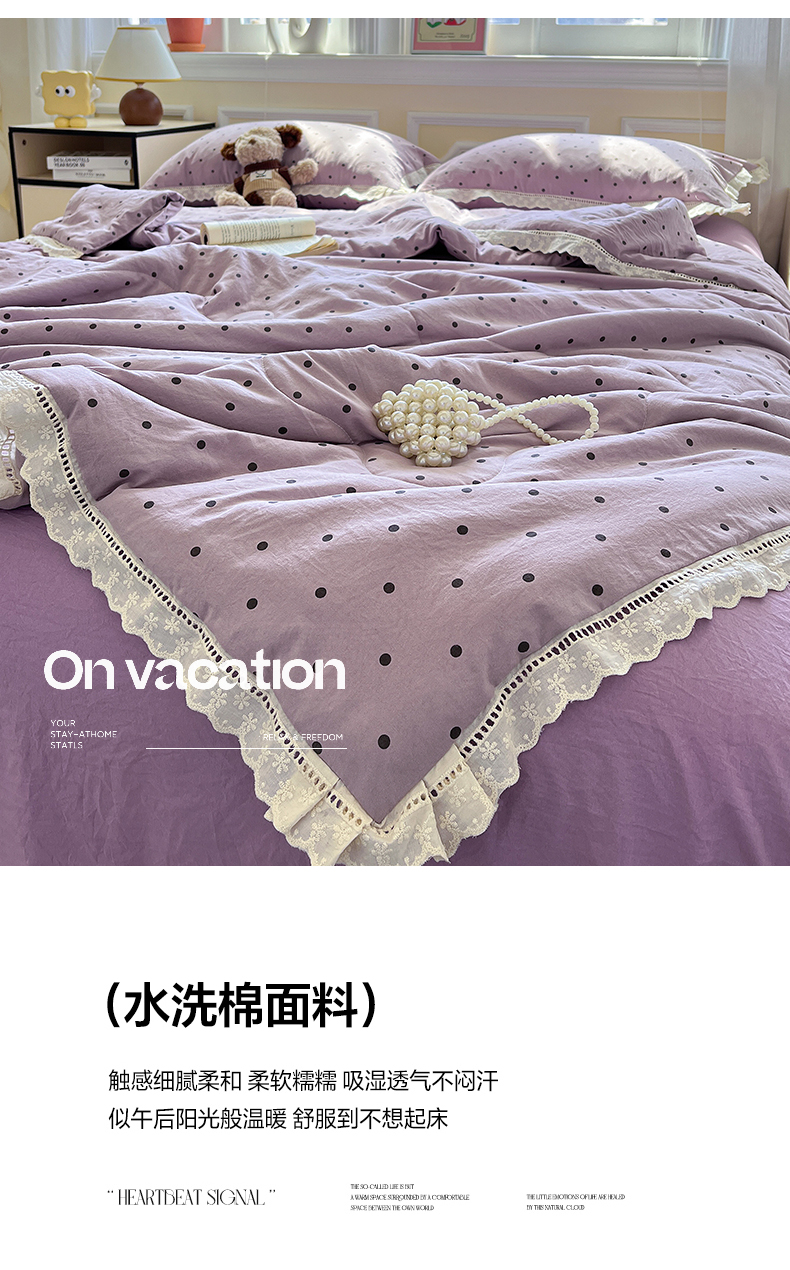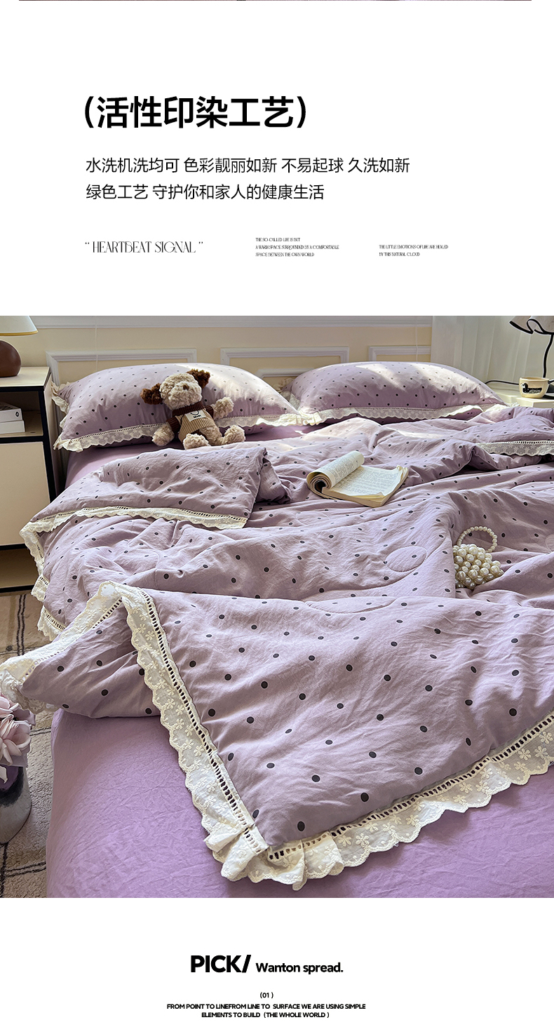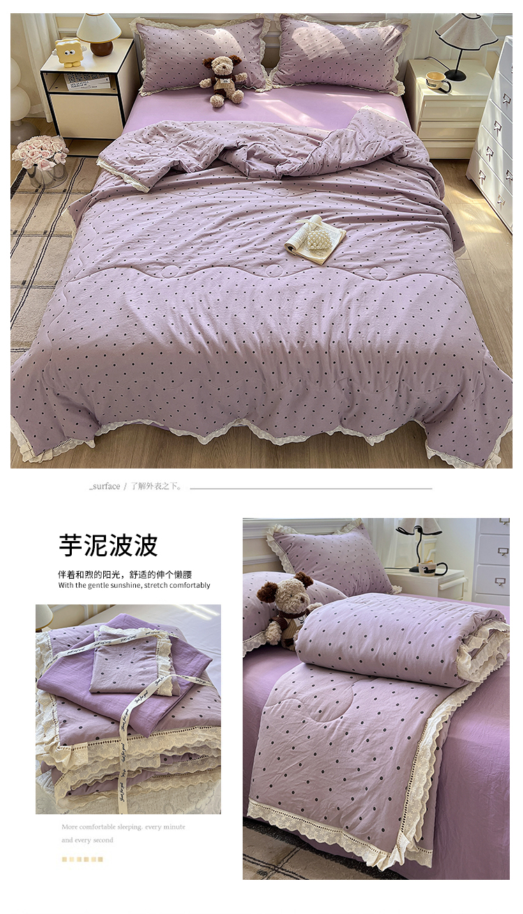 水墨江南 2025新款全棉镂空花边夏被四件套 芋泥波波