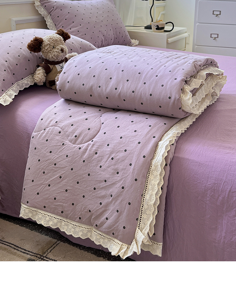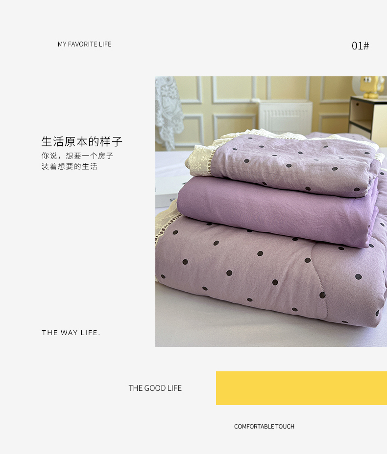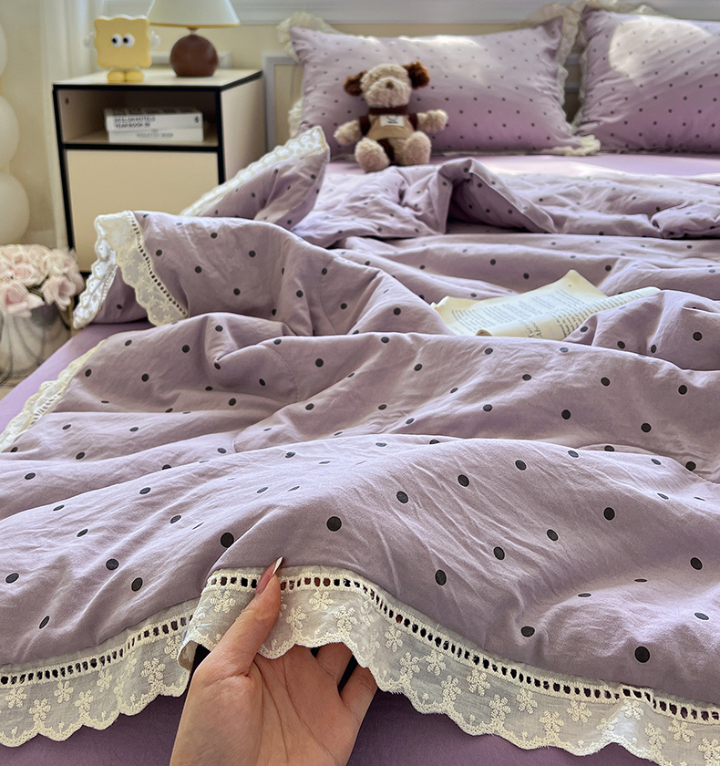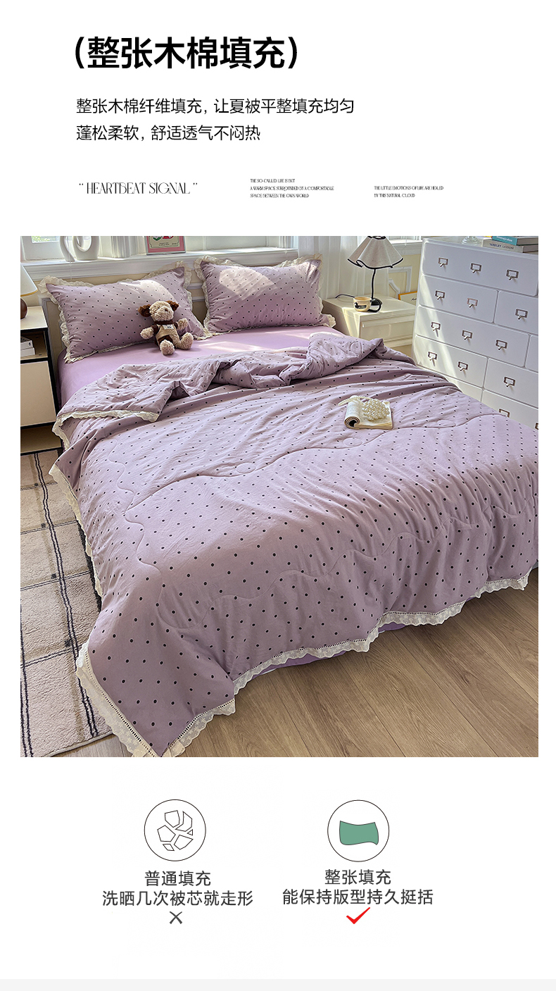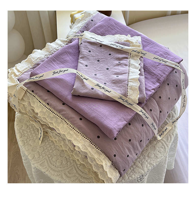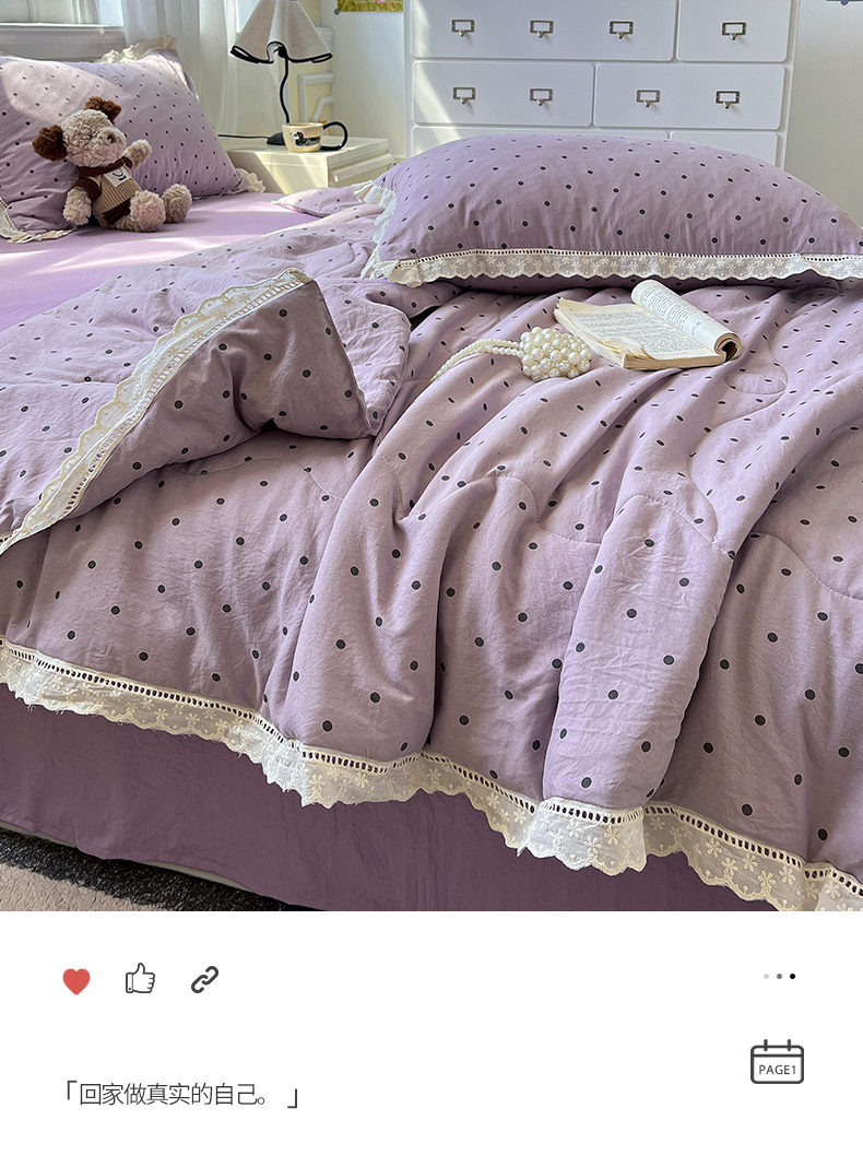 水墨江南 2025新款全棉镂空花边夏被四件套 芋泥波波