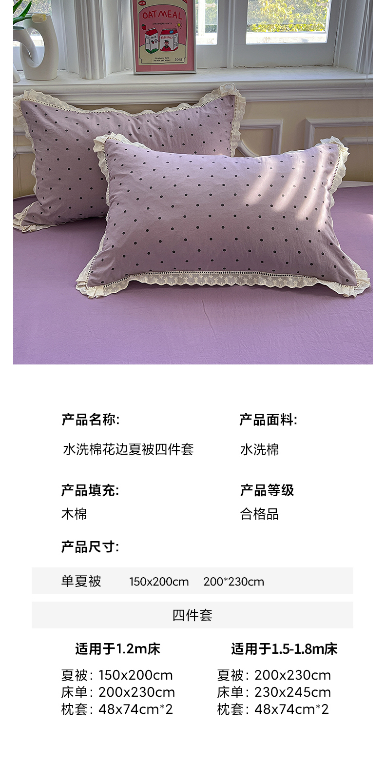 商品名称:水墨江南 2025新款全棉镂空花边夏被四件套 芋泥波波