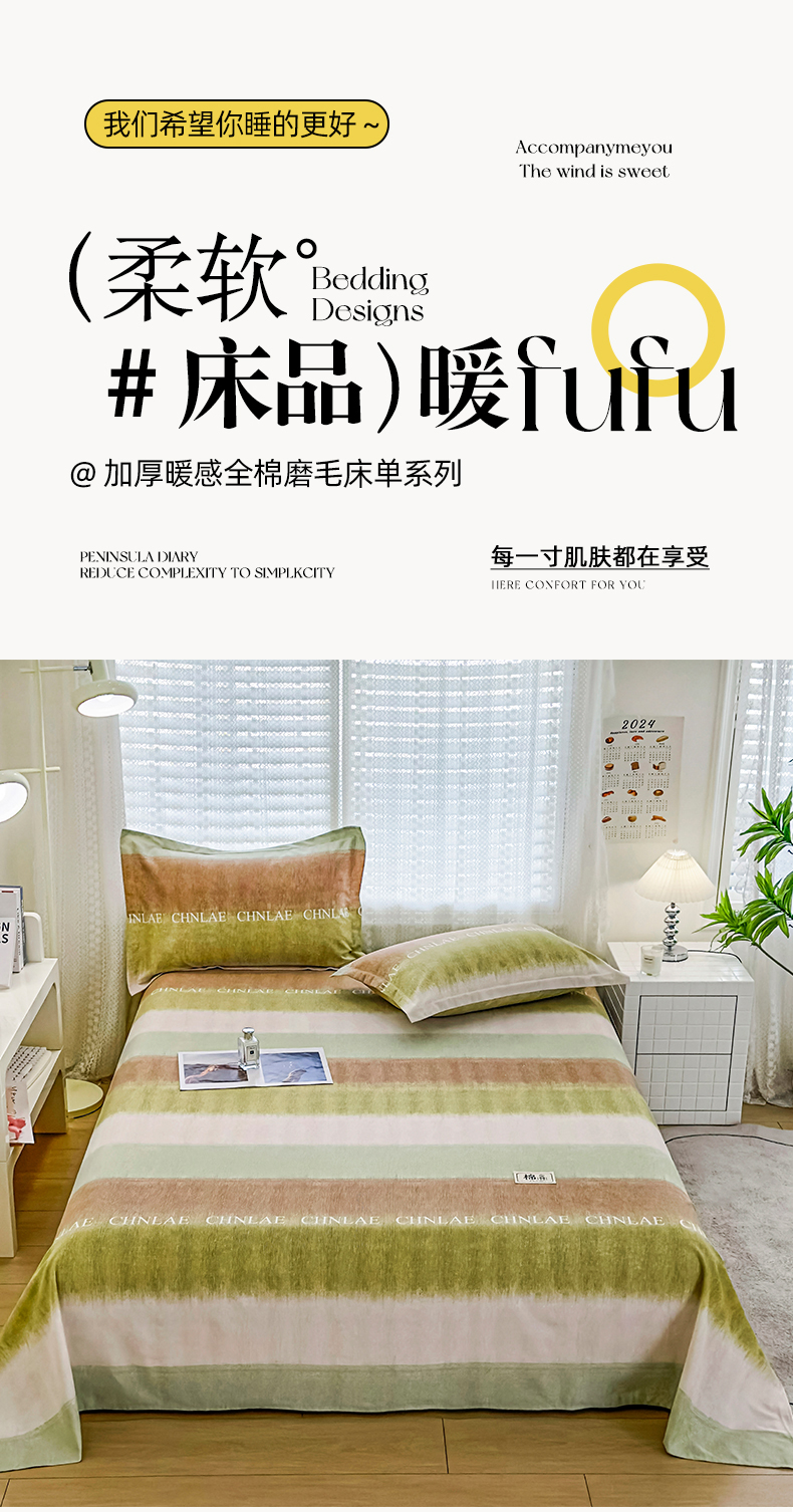 • 91家纺网 家纺一手货源 找家纺 丝芙妮家居(原乐视家纺) 2025春夏新款全棉纯棉混纺云糯棉双层纱单床单 床单单件 伊甸-绿