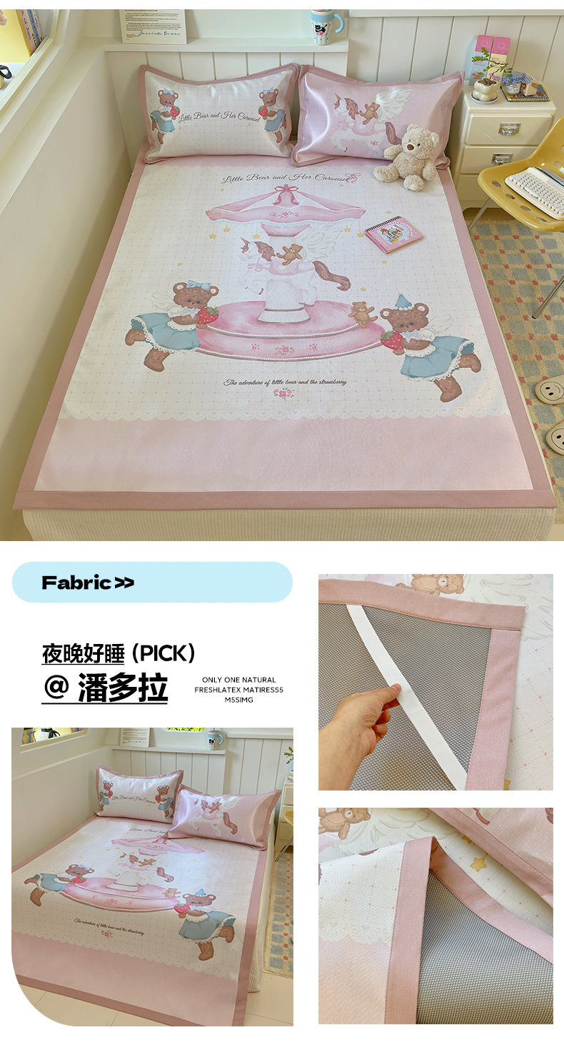 澳萝拉 2022新款凉感丝乳胶凉席-蓝心小熊,蓝心小熊