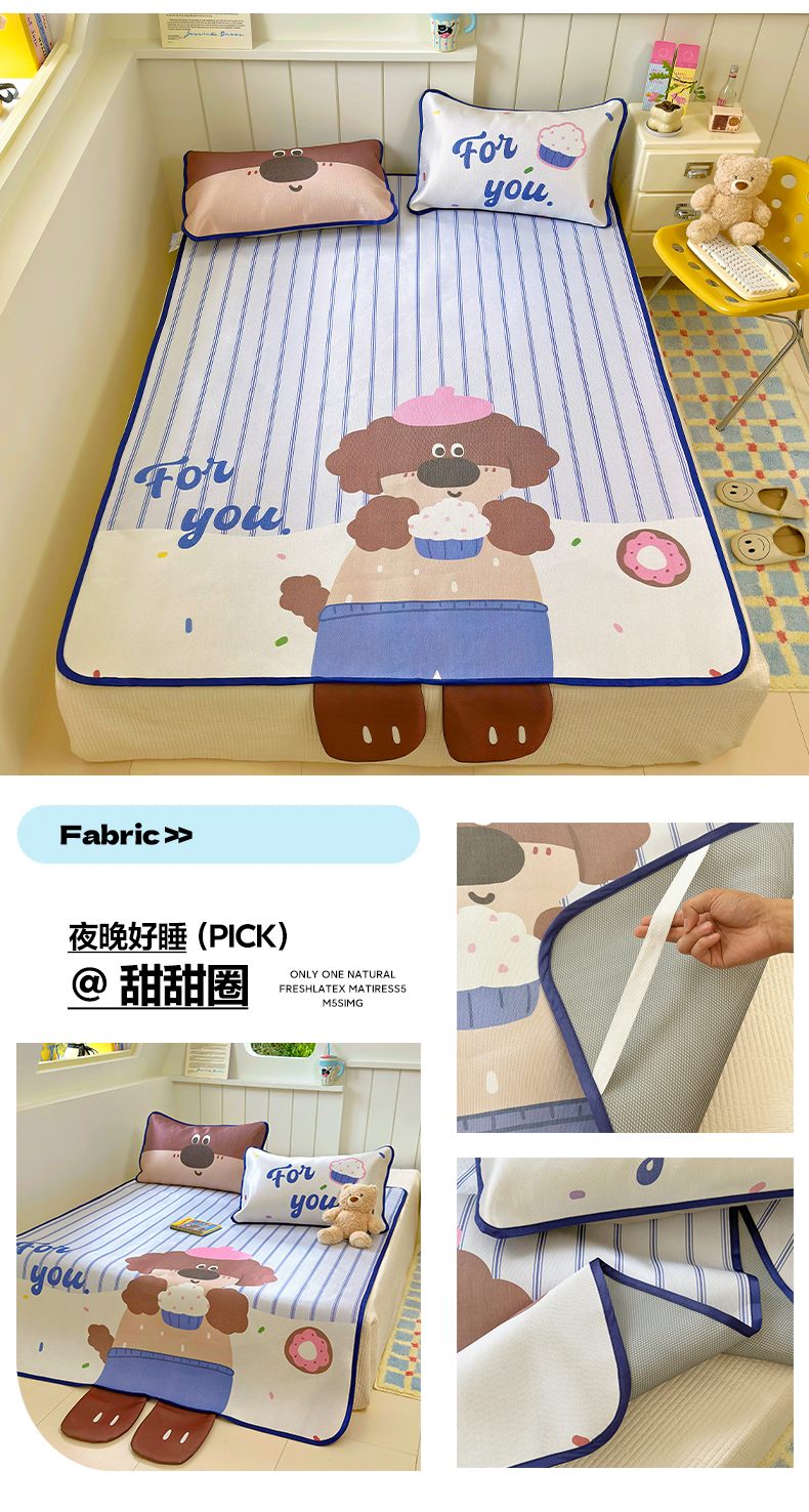 澳萝拉 2022新款凉感丝乳胶凉席-蓝心小熊,蓝心小熊