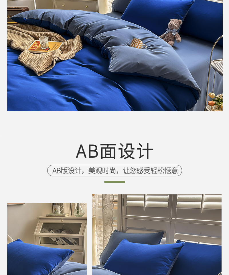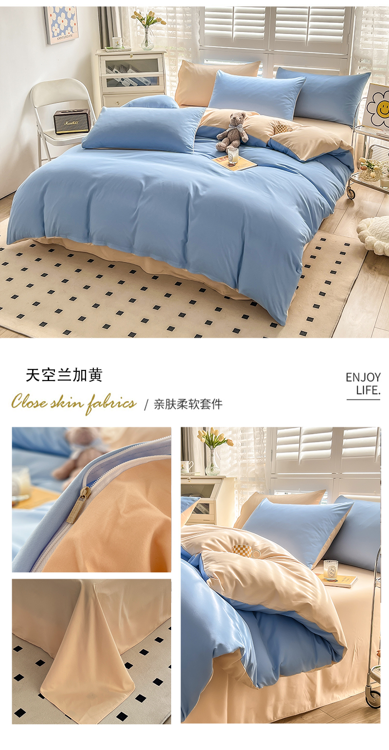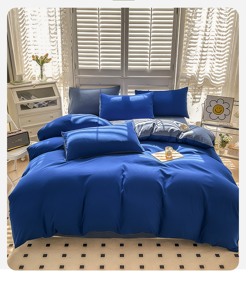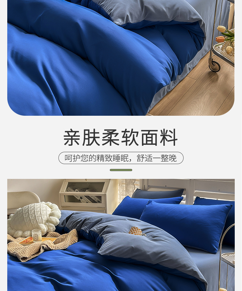当前位置: 91家纺网 > 商品网购 > 床品套件 > 四件套 > 其它四件套 > 啊雅家居 2025新款学生宿舍双拼磨毛被套床单床笠单品三件套四件套 克莱因蓝加浅蓝灰