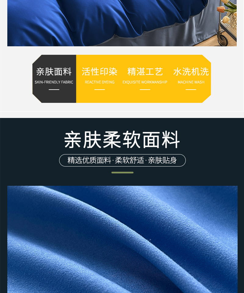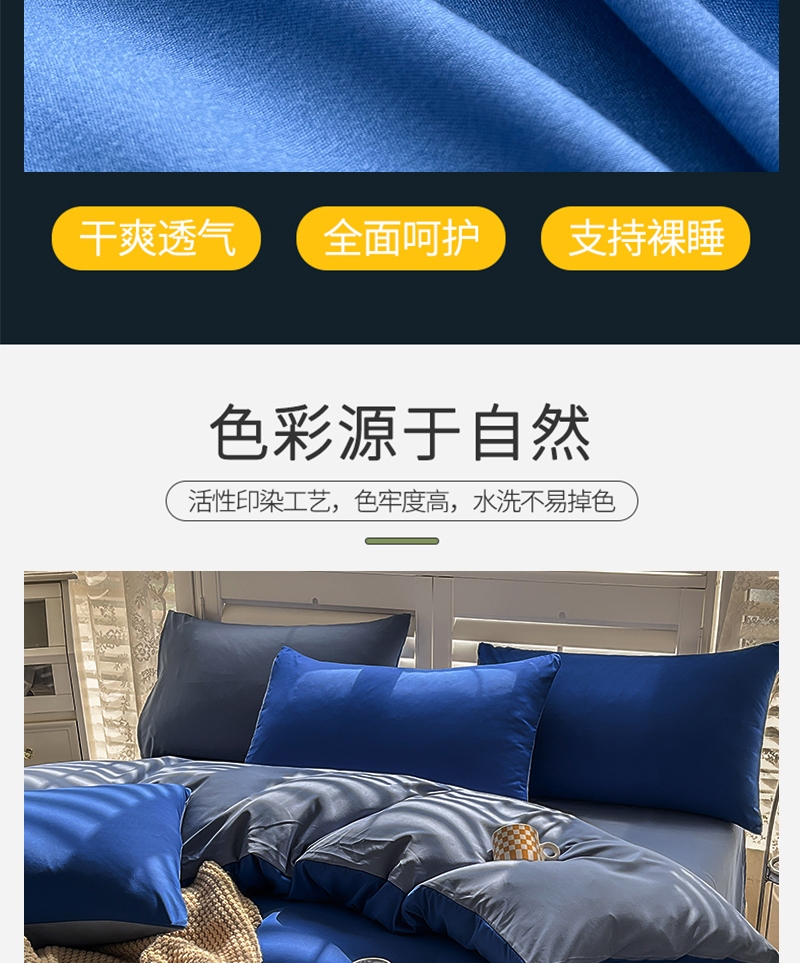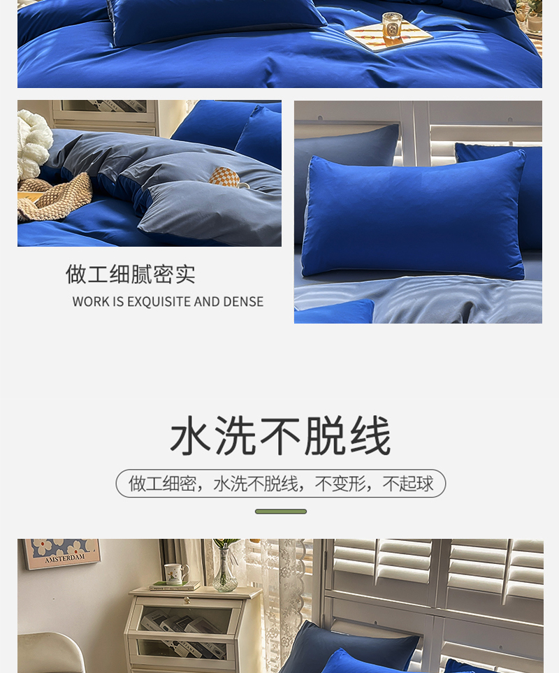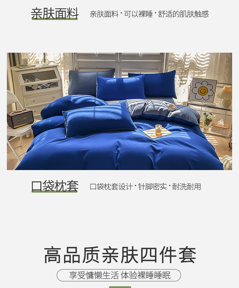 当前位置: 91家纺网 > 商品网购 > 床品套件 > 四件套 > 其它四件套 > 啊雅家居 2025新款学生宿舍双拼磨毛被套床单床笠单品三件套四件套 克莱因蓝加浅蓝灰