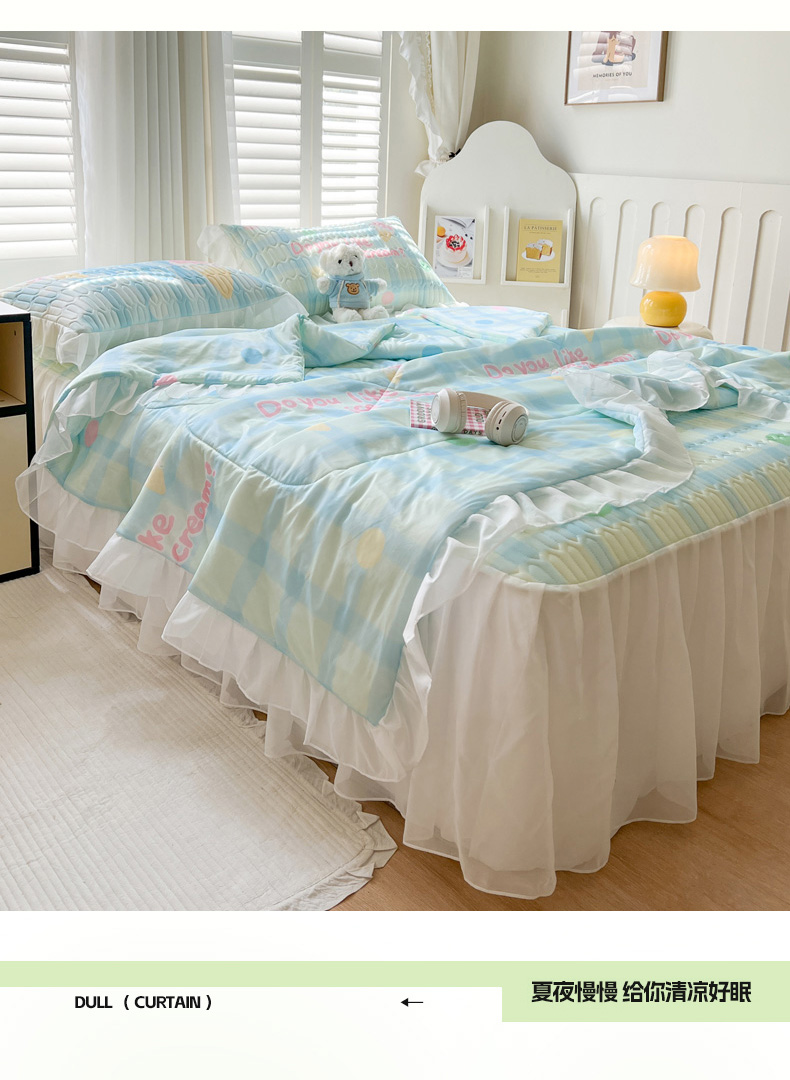 沐慕 2025新款床裙款凉感丝凉席三件套 床裙-黑蝴蝶