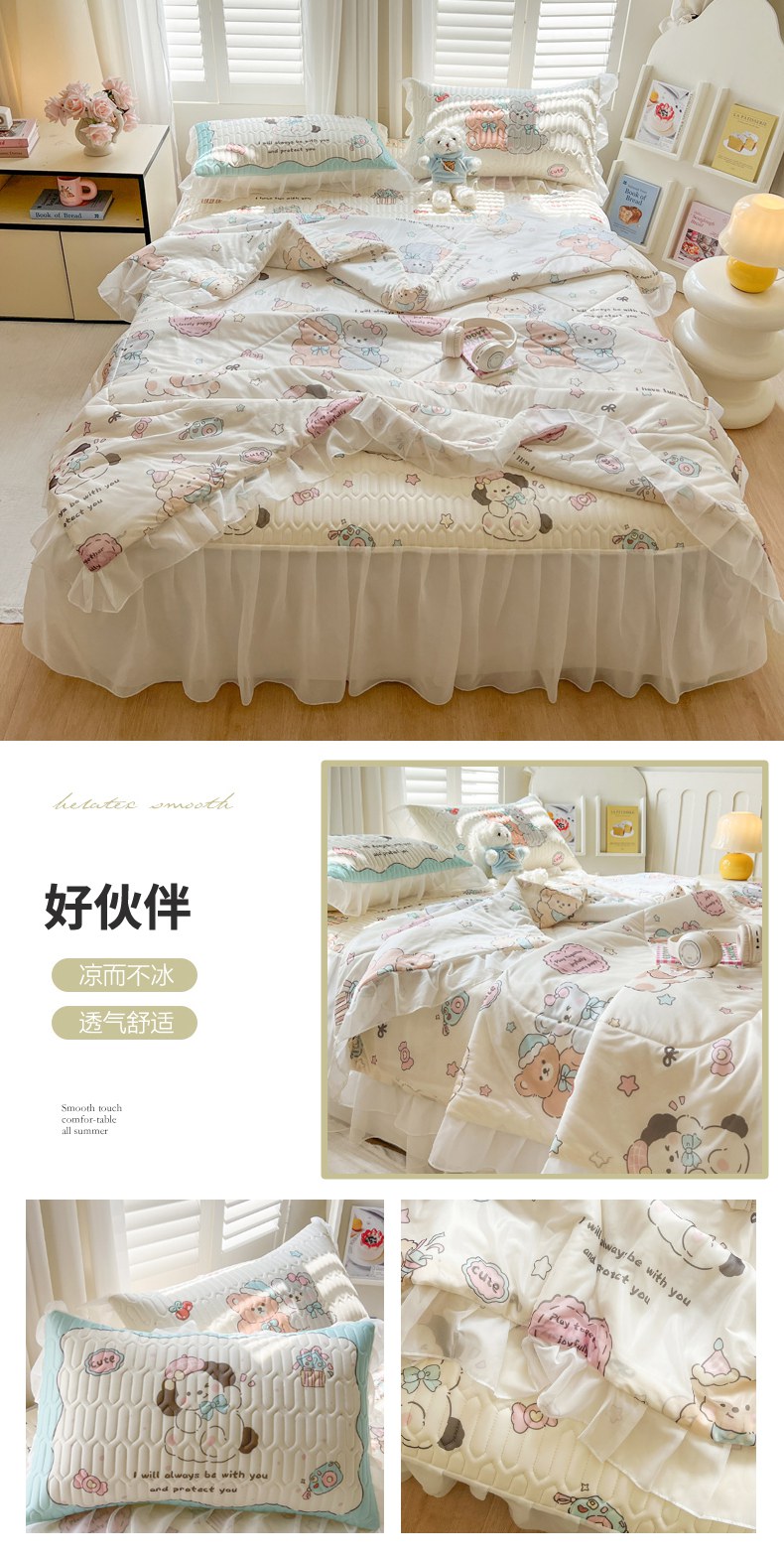 (总)沐慕 2026新款大贴布绣云朵棉四件套,Coco小姐,爱心兔兔,萌星星,木马猫咪,晚安小熊,小碎花猫咪