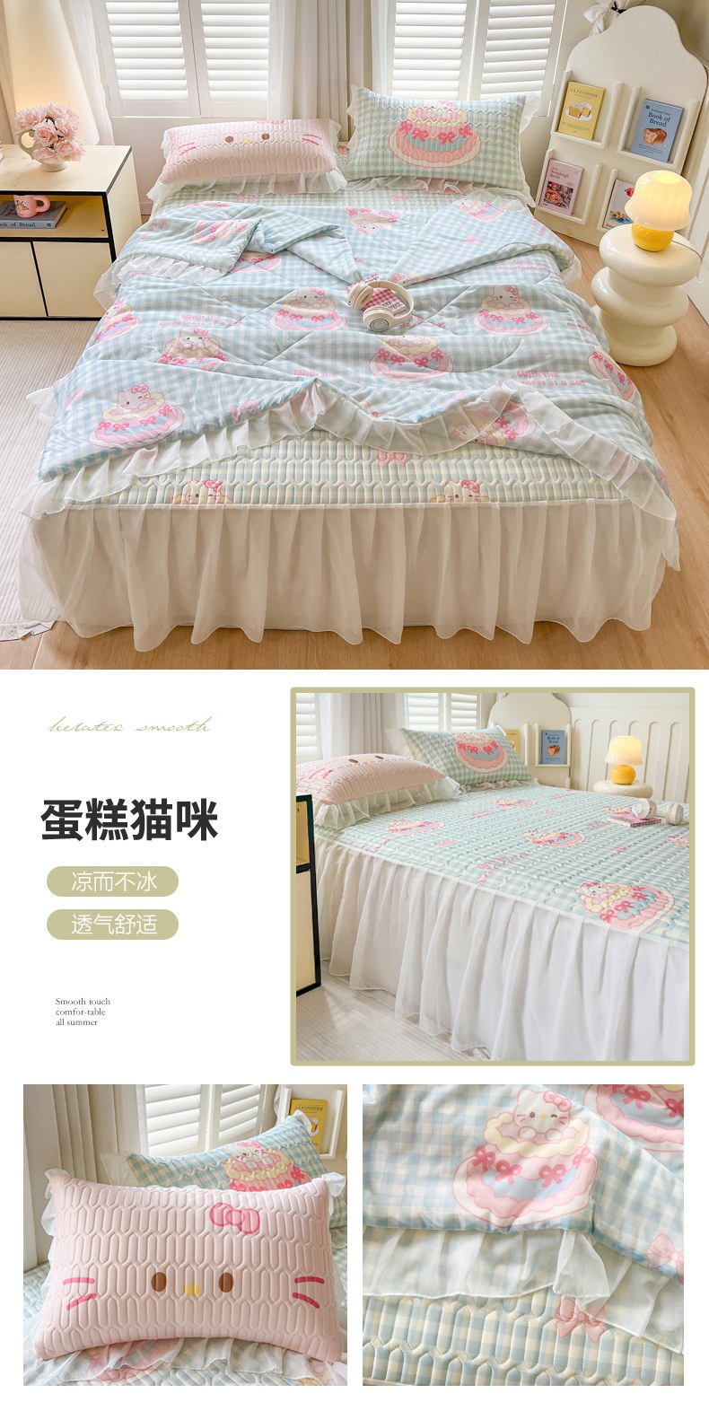 (总)沐慕 2026新款加厚款水洗棉云朵棉花边款四件套,M蛋糕猫咪,M粉黛kt,M格子碎花喵,M猫咪仙子,M玫瑰粉喵,M奶黄精灵屋,M奶咖小喵,M奶油小草莓,M桃桃精灵派