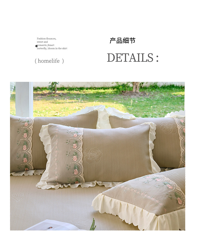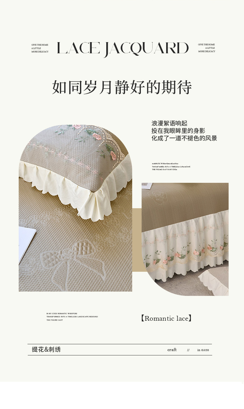 (总)乐朵家居 2026春夏 23-2觅彩 锦棉 蕾丝床裙,豆沙色,灰色,蓝色,绿色,奶白色,玉色
