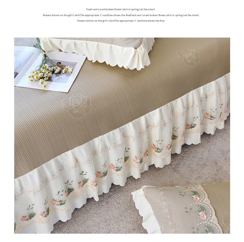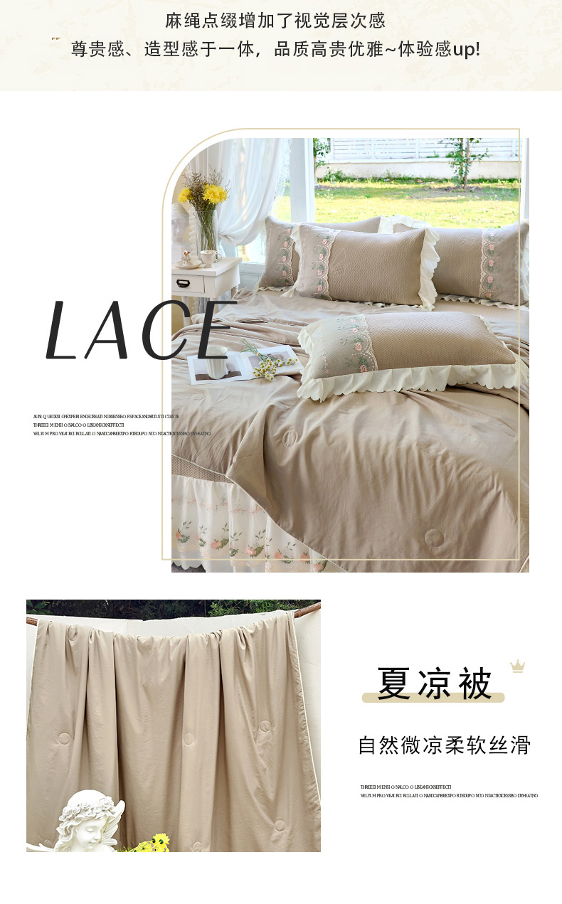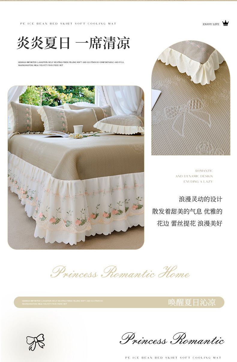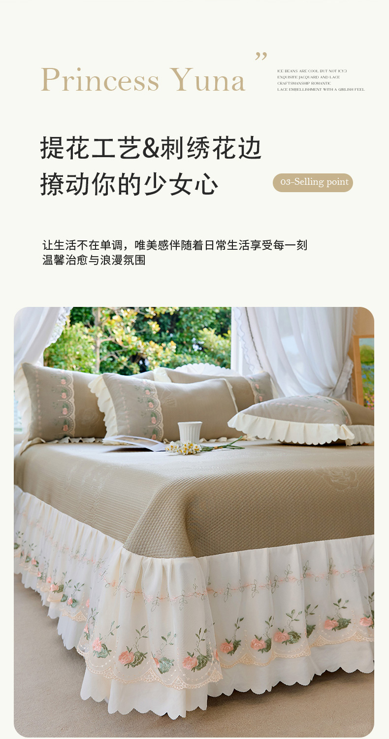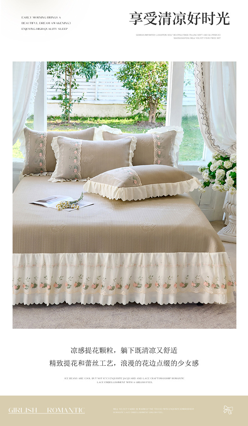 (总)乐朵家居 2026新款 25-3郁金香 天丝缎蕾丝床裙+可配空调被,绿,豆沙,奶白,灰,紫,卡其