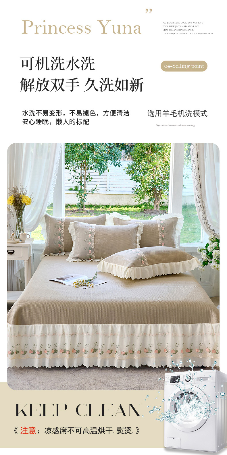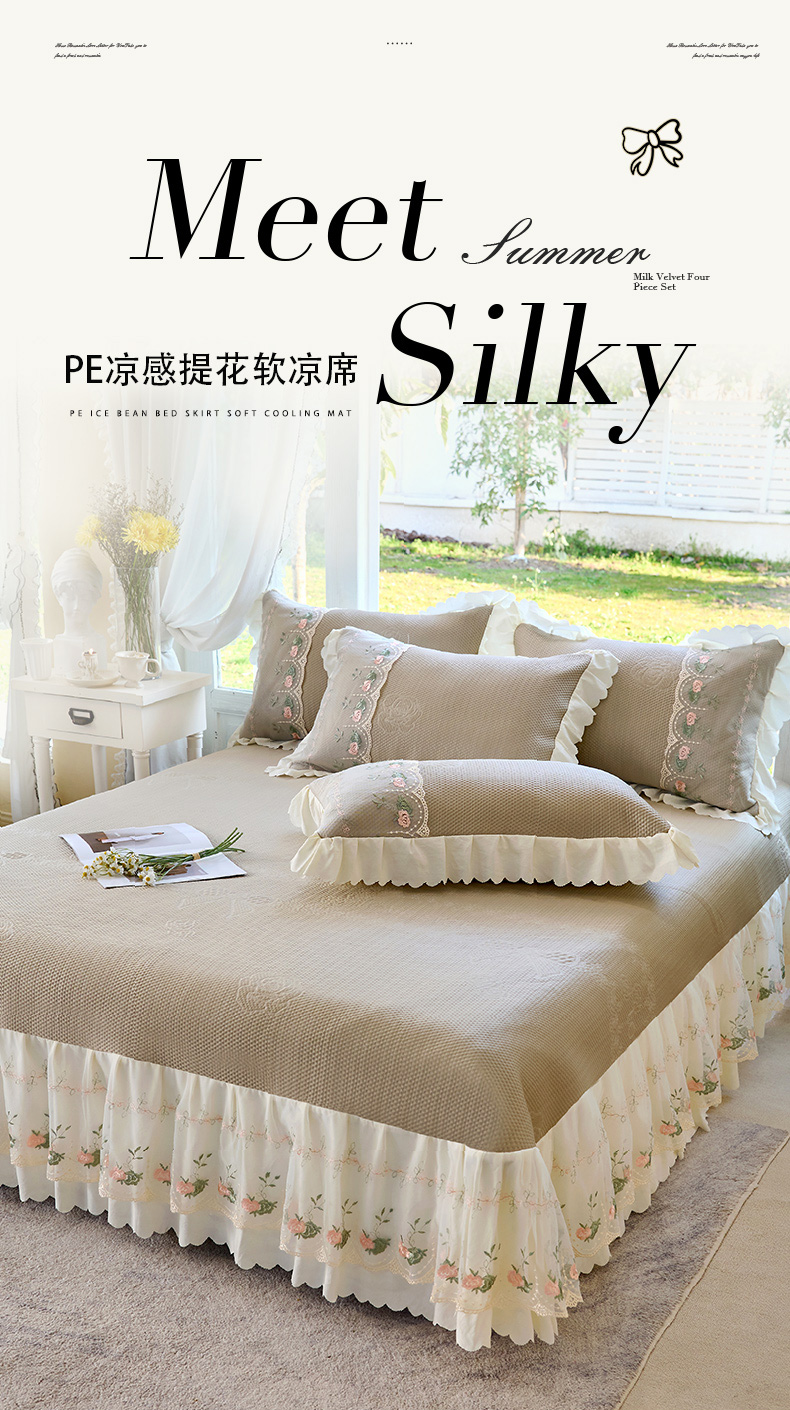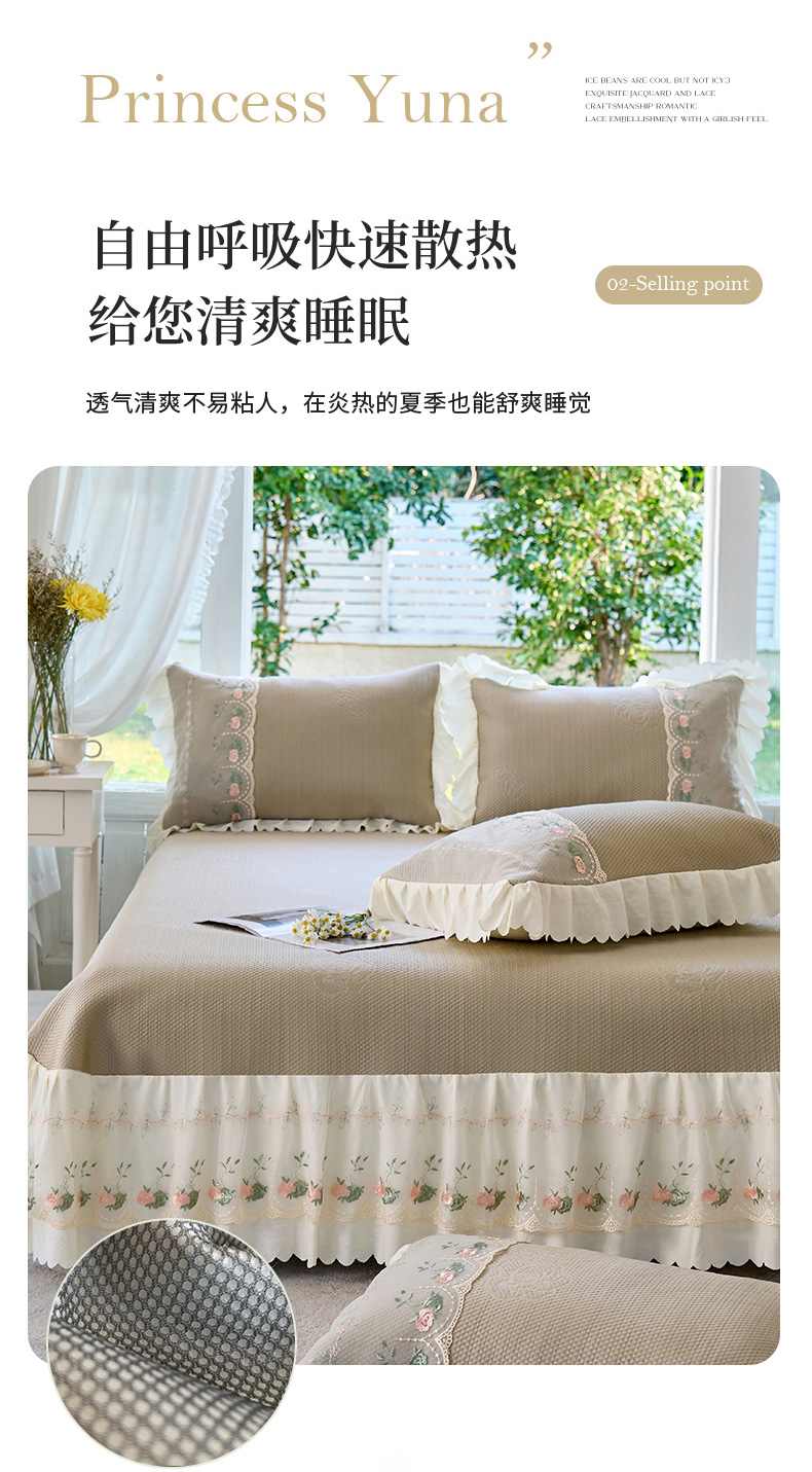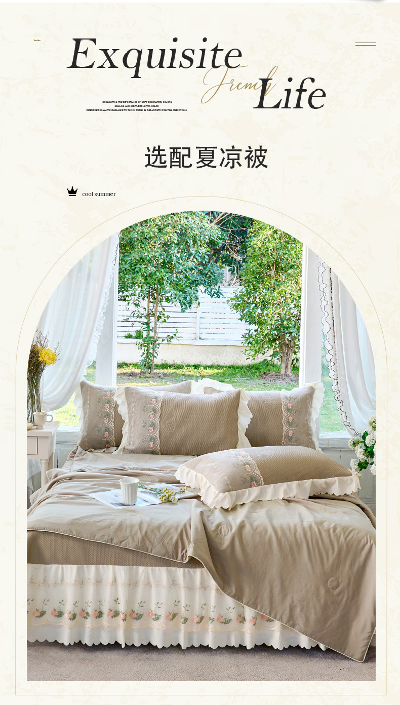 (总)乐朵家居 2026新款 25-3郁金香 天丝缎蕾丝床裙+可配空调被,绿,豆沙,奶白,灰,紫,卡其