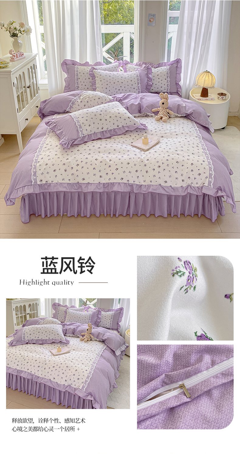 商品名称:皇谱家纺 2025新款A类有氧木棉床裙四件套 蓝风铃