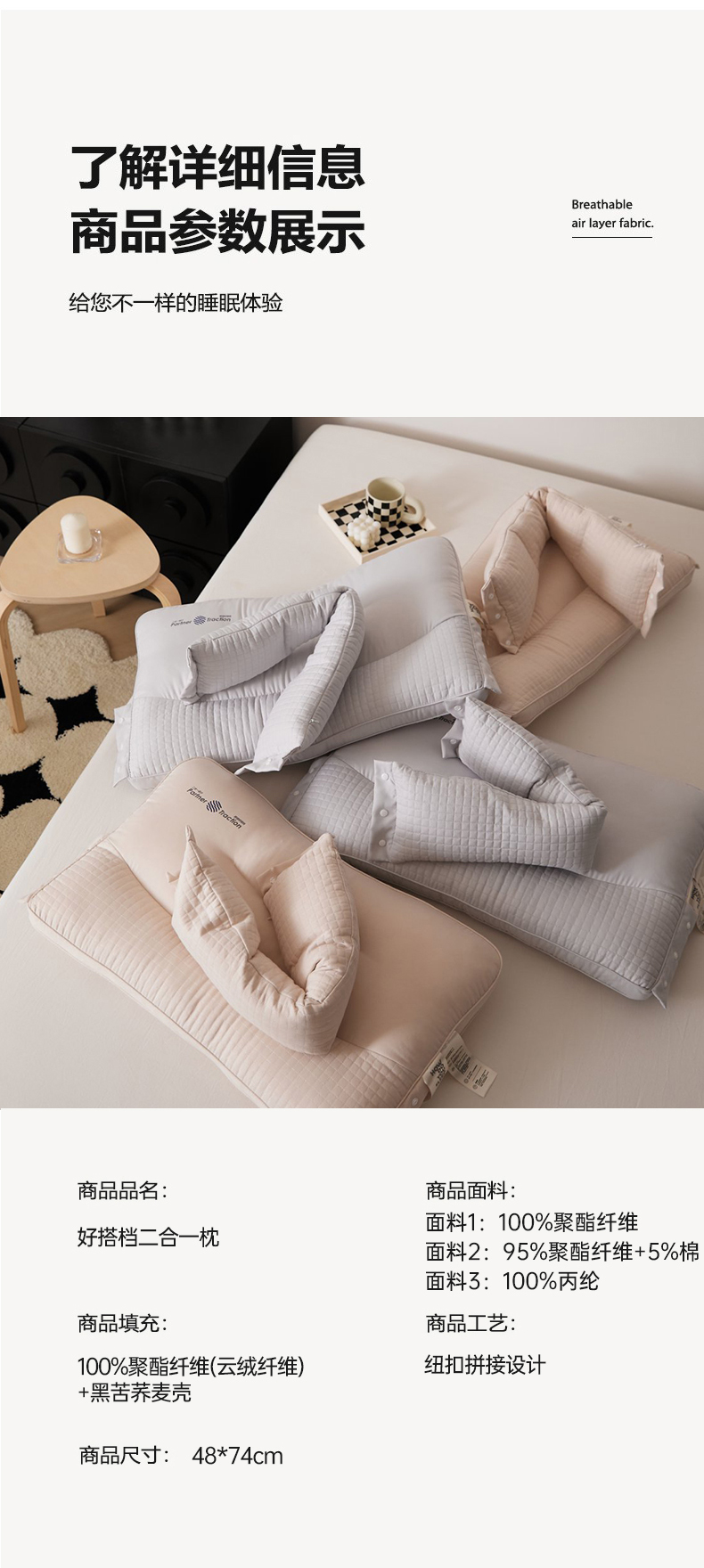 当前位置: 91家纺网 > 商品网购 > 枕头/枕芯/保健枕/颈椎枕 > 普通枕芯 > 境月枕芯坊 2025新款好搭档二合一枕系列枕头枕芯 咖 48*74cm/只