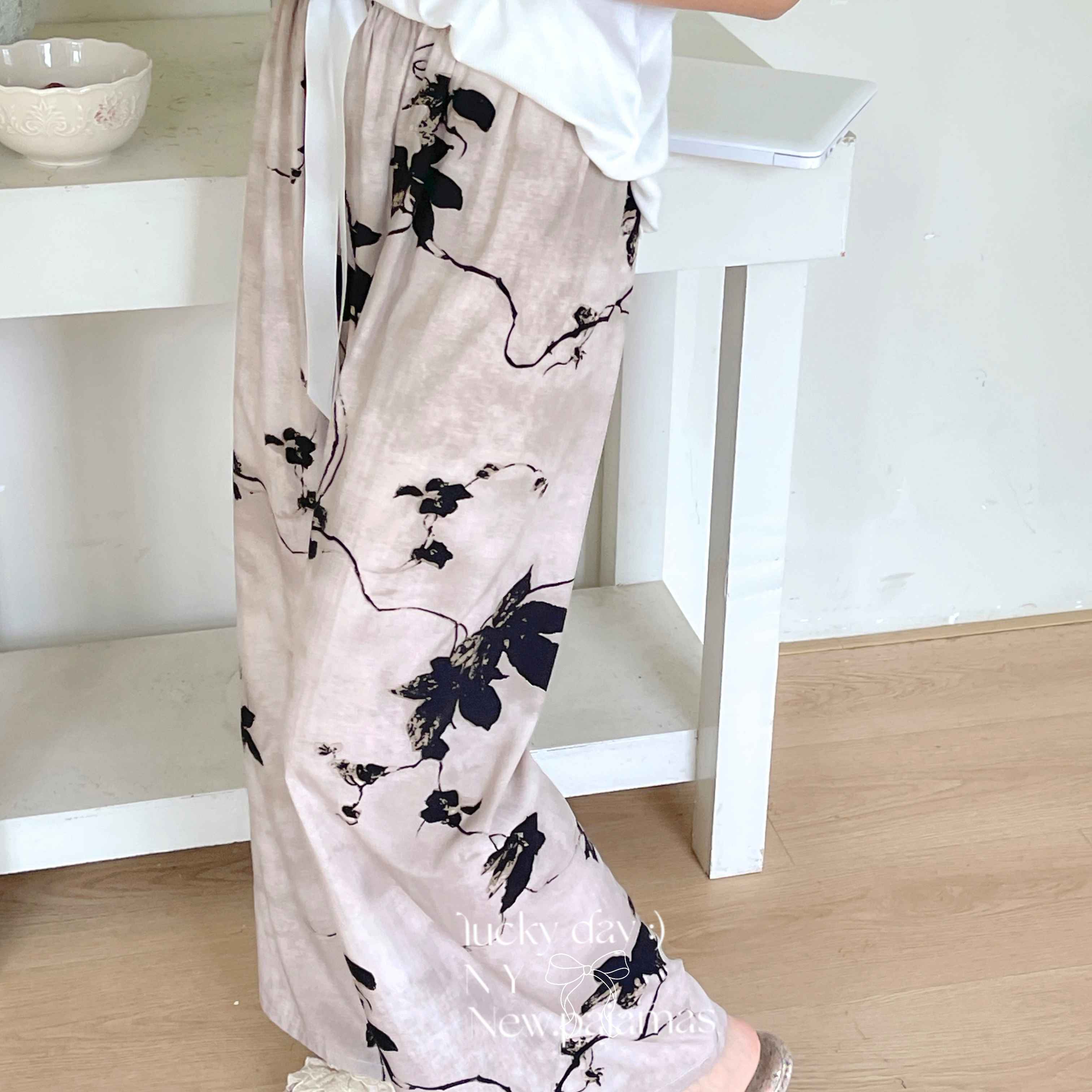 商品名称:纽约生活 2025新款人棉阔腿裤 花想