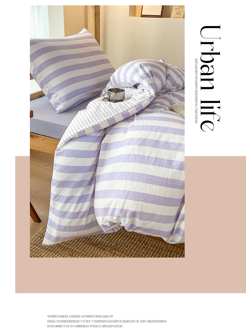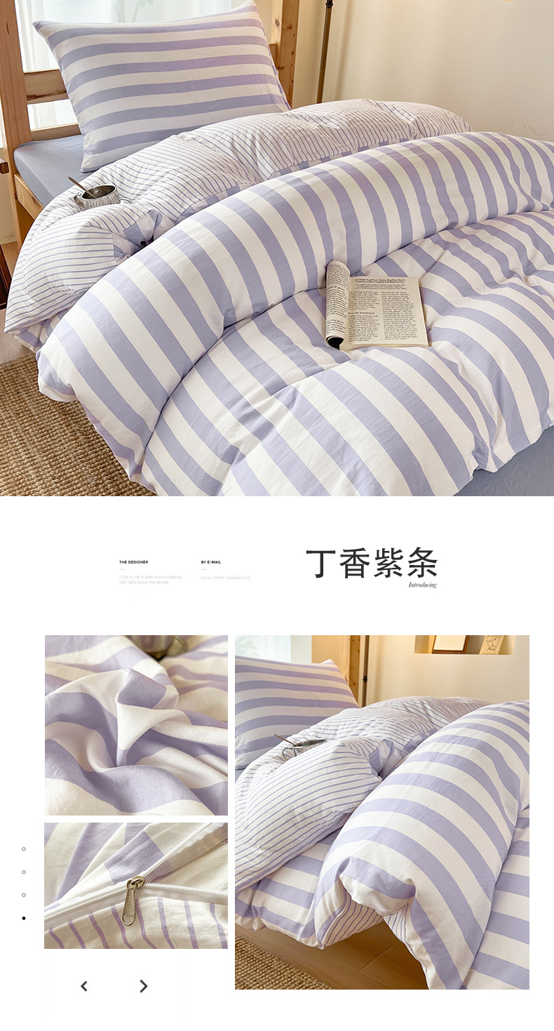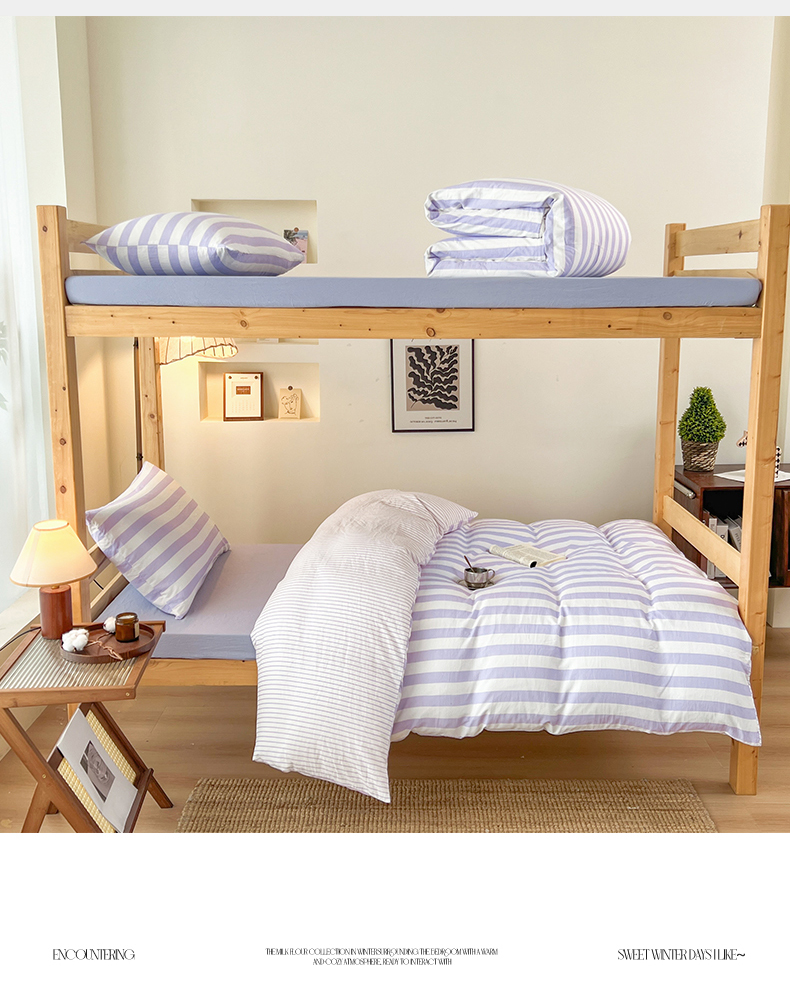 当前位置: 91家纺网 > 商品网购 > 床品套件 > 三件套 > 多品家纺 2025春夏新款超柔水洗棉学生宿舍三件套 丁香紫条