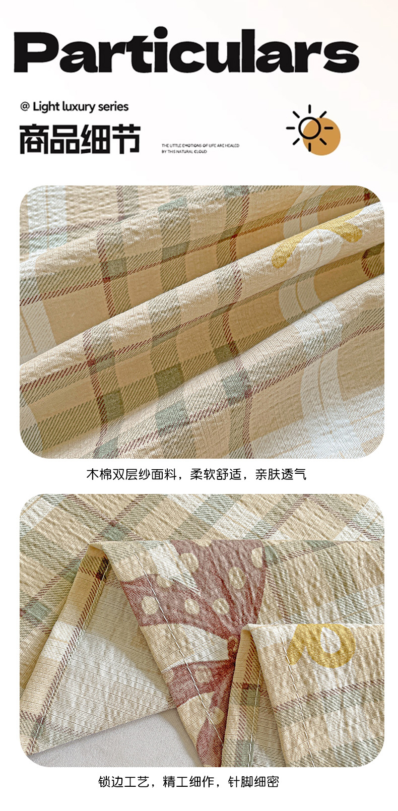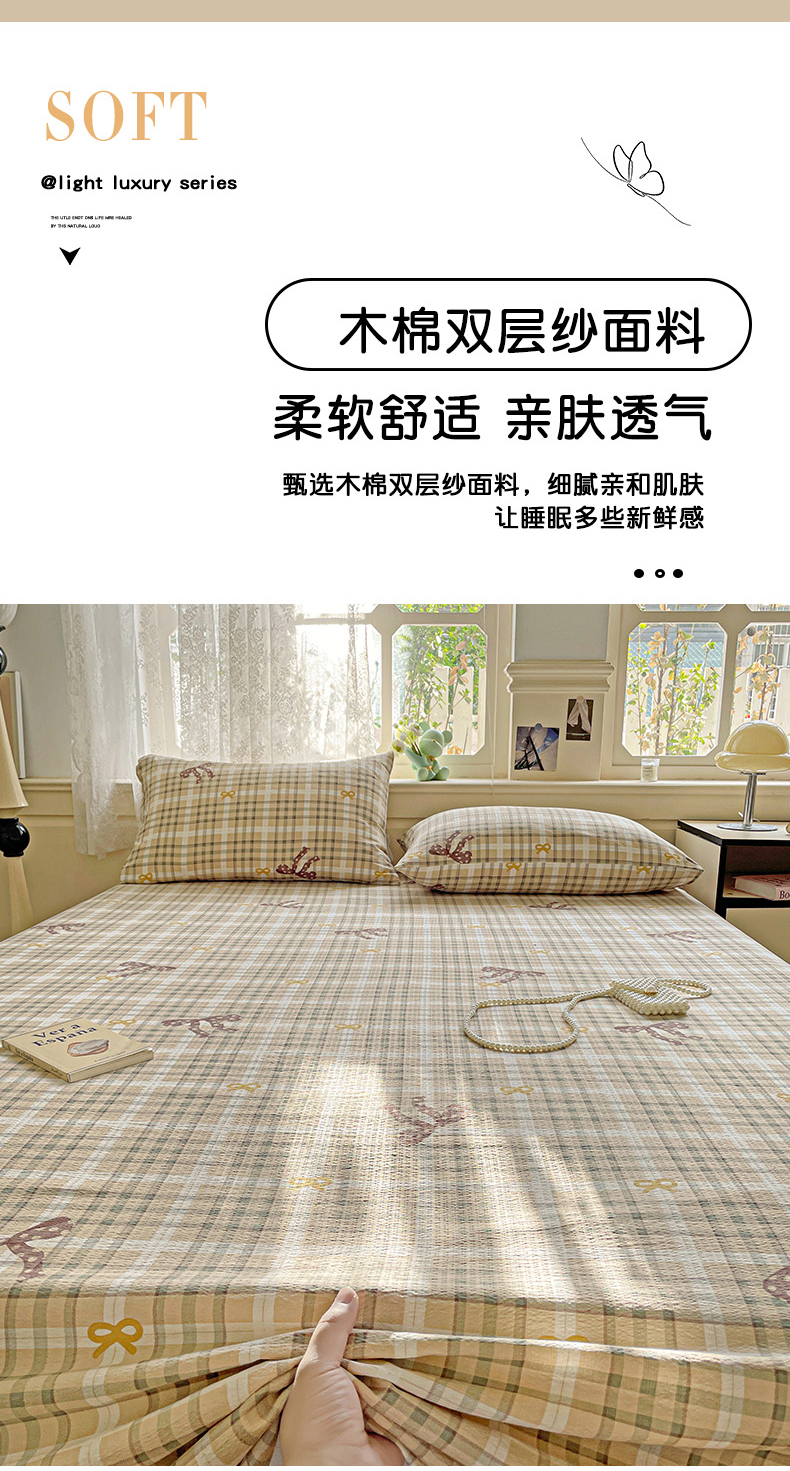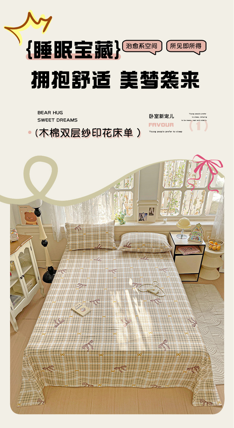 当前位置: 91家纺网 > 商品网购 > 床品套件 > 四件套 > 双层纱四件套 > 暖芯优选 2025新款母婴级ins小清新双层纱印花床单枕套三件套(提供买家秀) 条格蝴蝶结