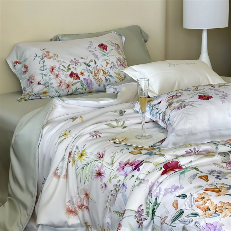 (总)馨蕊家居 2025新款春夏新品天丝印花80SLF奥地利兰精天丝四件套-初见,天丝初见-蔷薇粉,天丝初见-氧气绿