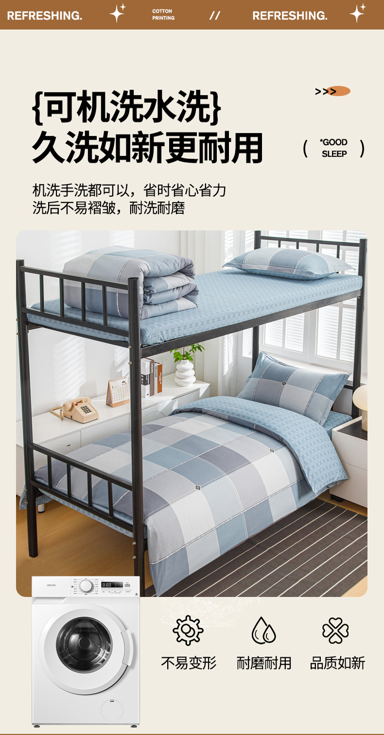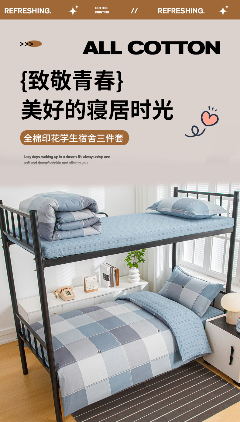 当前位置: 91家纺网 > 商品网购 > 床品套件 > 多件套 > 多件套 > 乐旗家纺 2025新款A类AB版全棉环保印花学生上下铺宿舍三件套六件套 西雅图