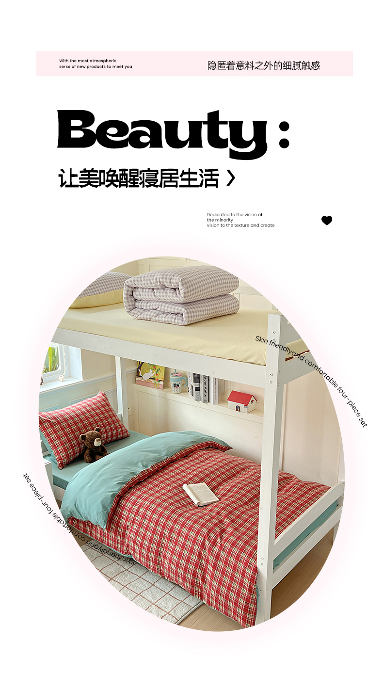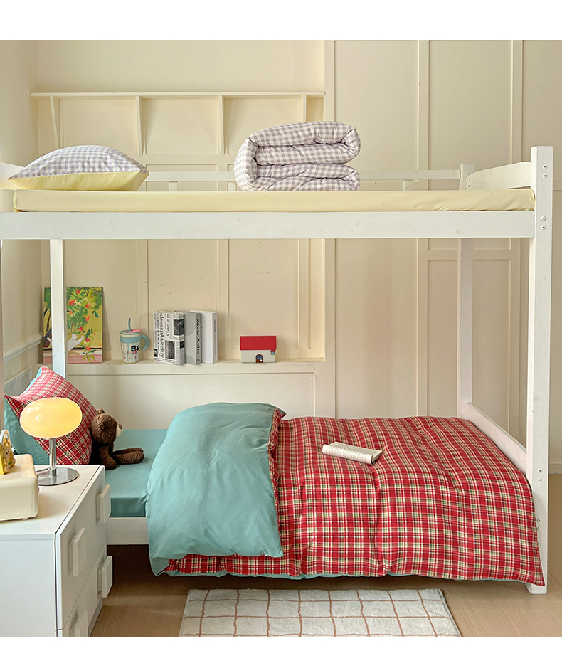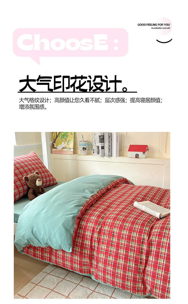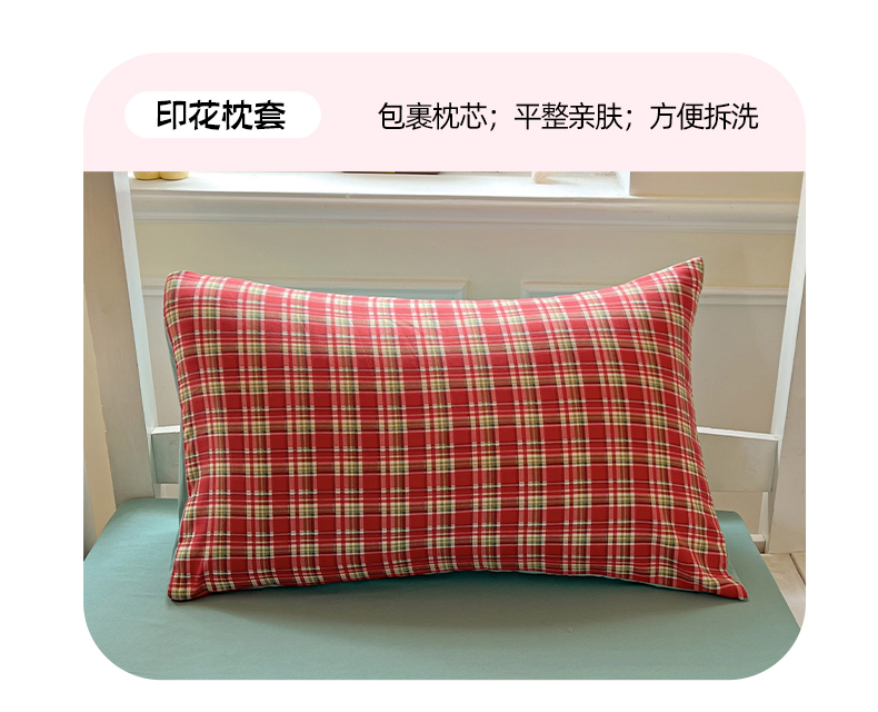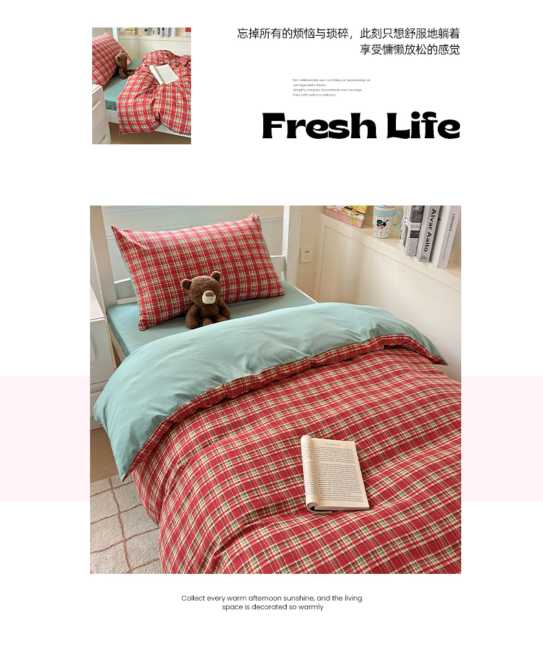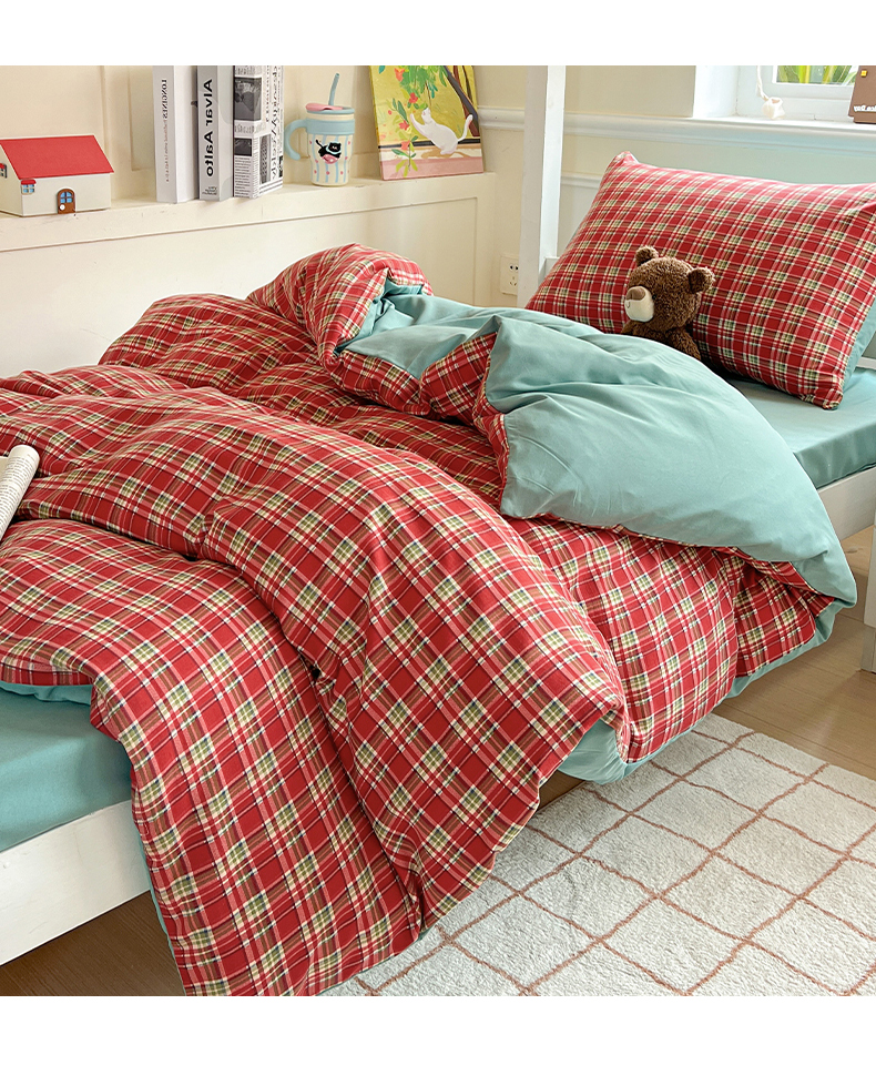 商品名称:妖妖家纺 2025新款软糯水洗棉格子学生三件套 丝绒红茶