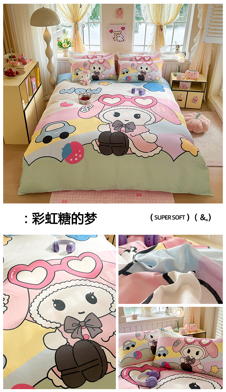 商品名称:馨语家居 2025新款全棉双层纱四件套 彩虹糖的梦