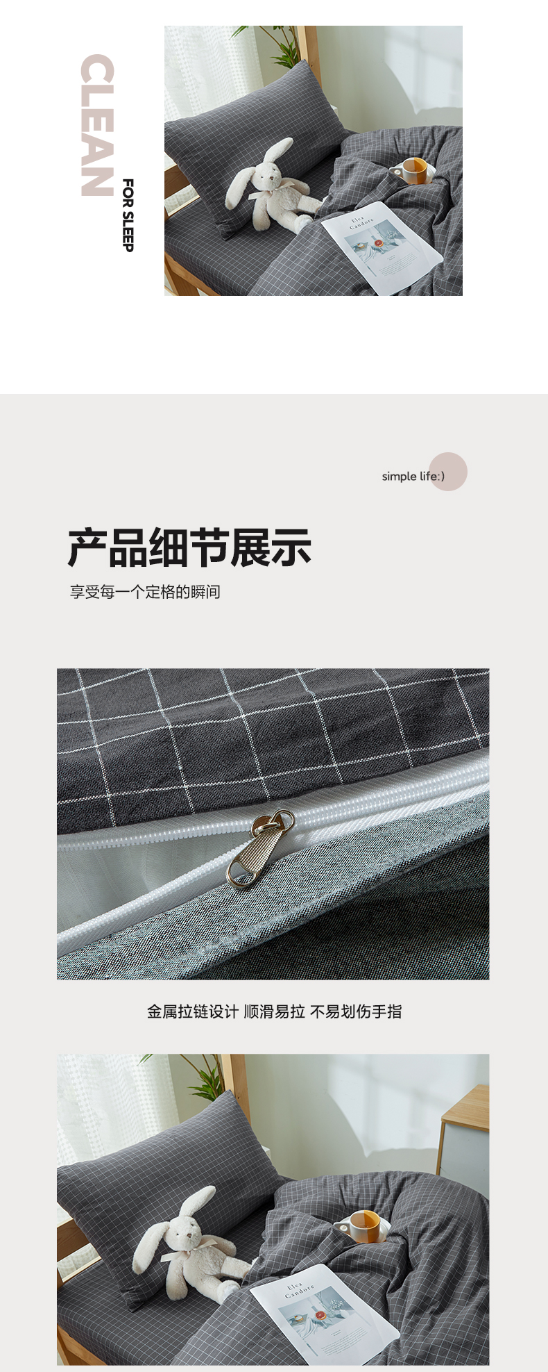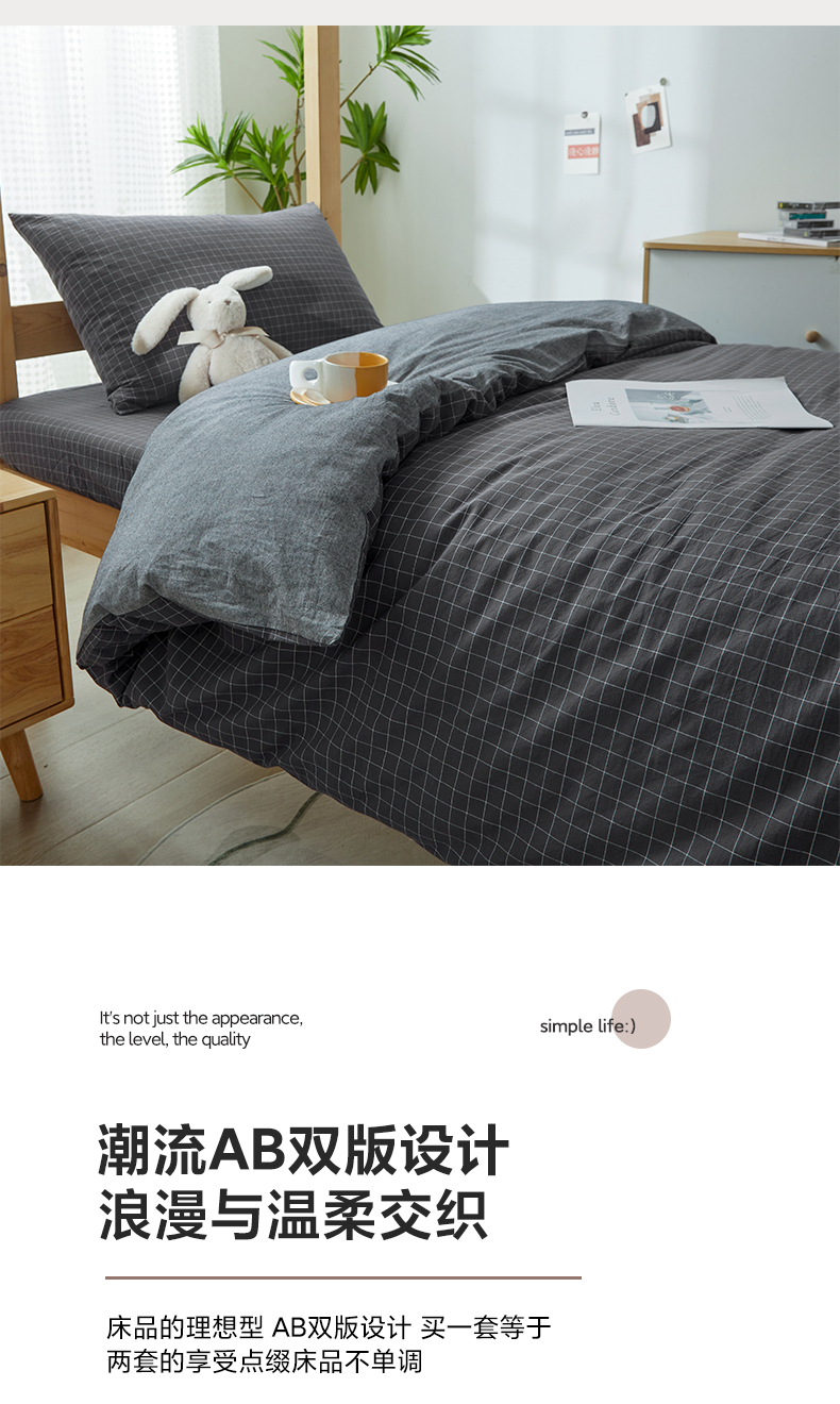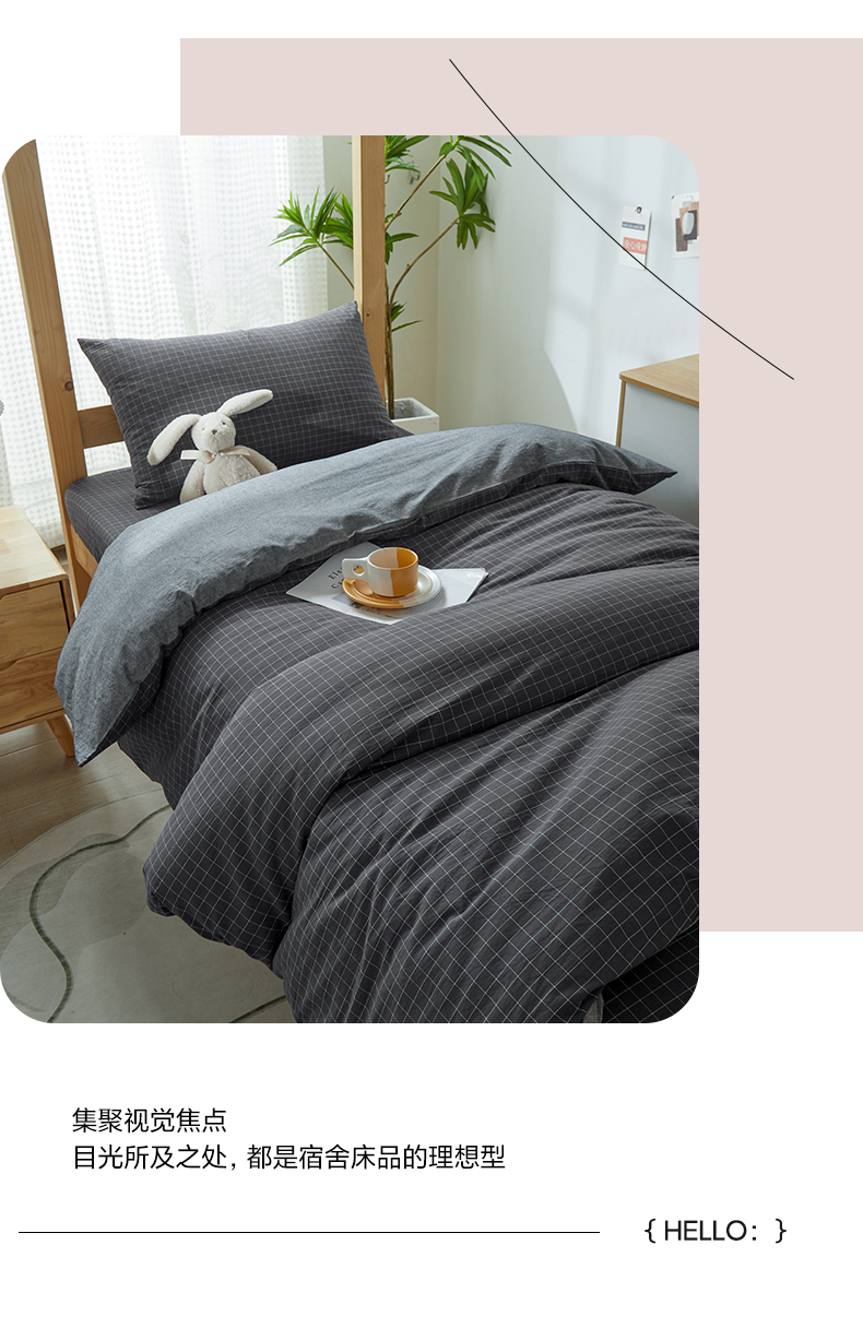 商品名称:鸣升家纺 2025新款全棉纯棉色织水洗棉学生三件套 新灰格