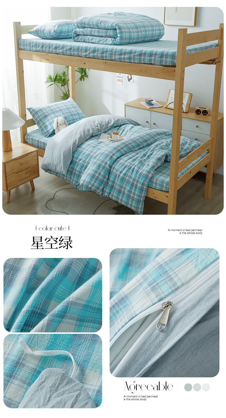 九沐良品 2025新款全棉纯棉色织水洗棉学生三件套宿舍三件套上下铺三件套 格林粉