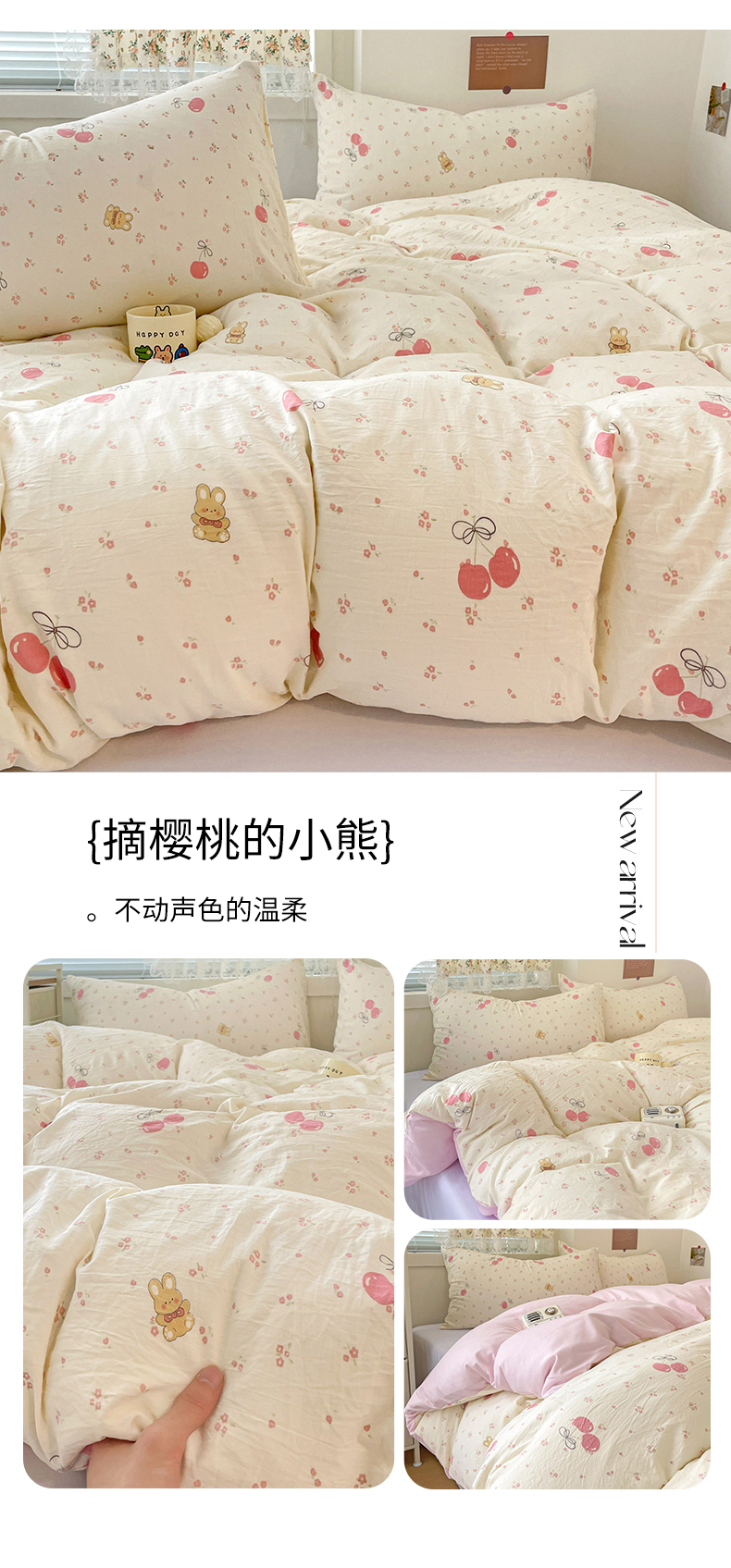 商品名称:纽曼2025新款纯棉水洗棉单品被套 摘樱桃的小熊