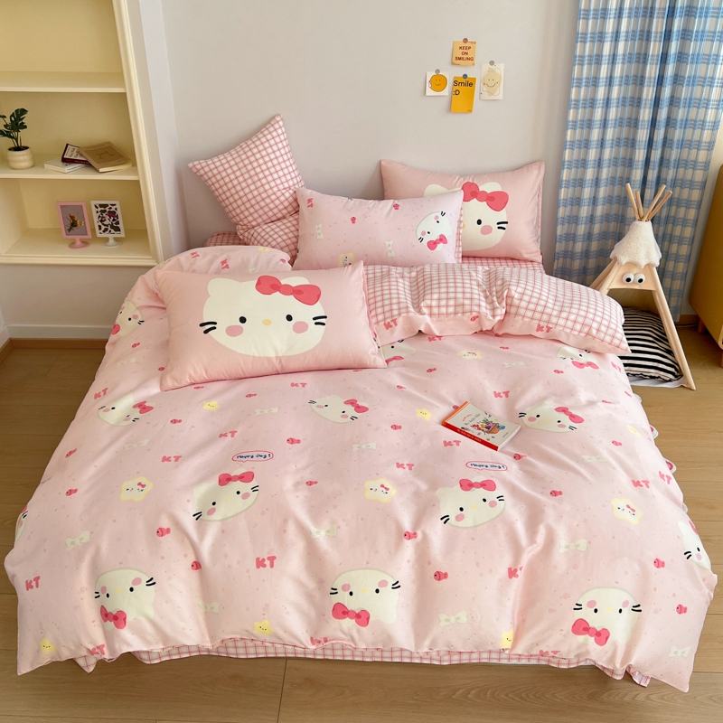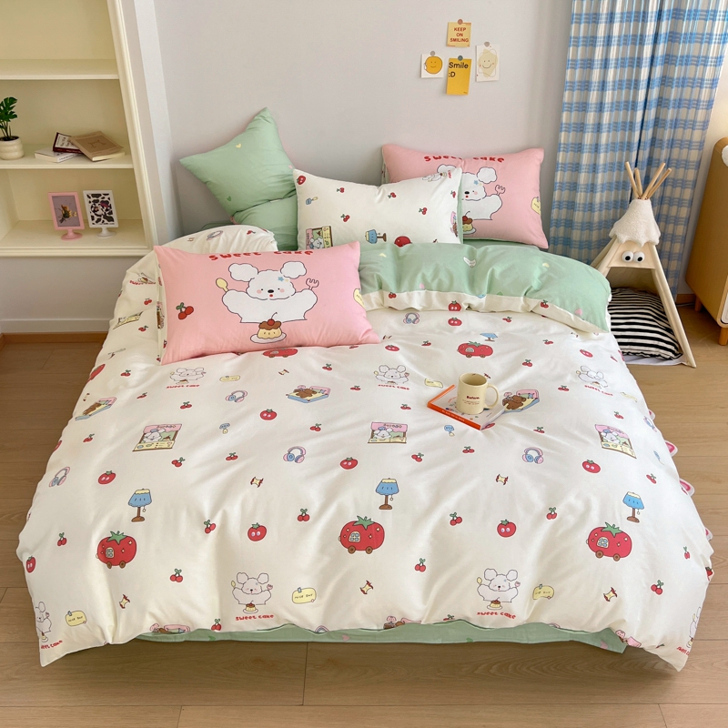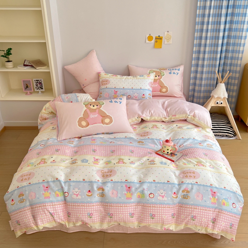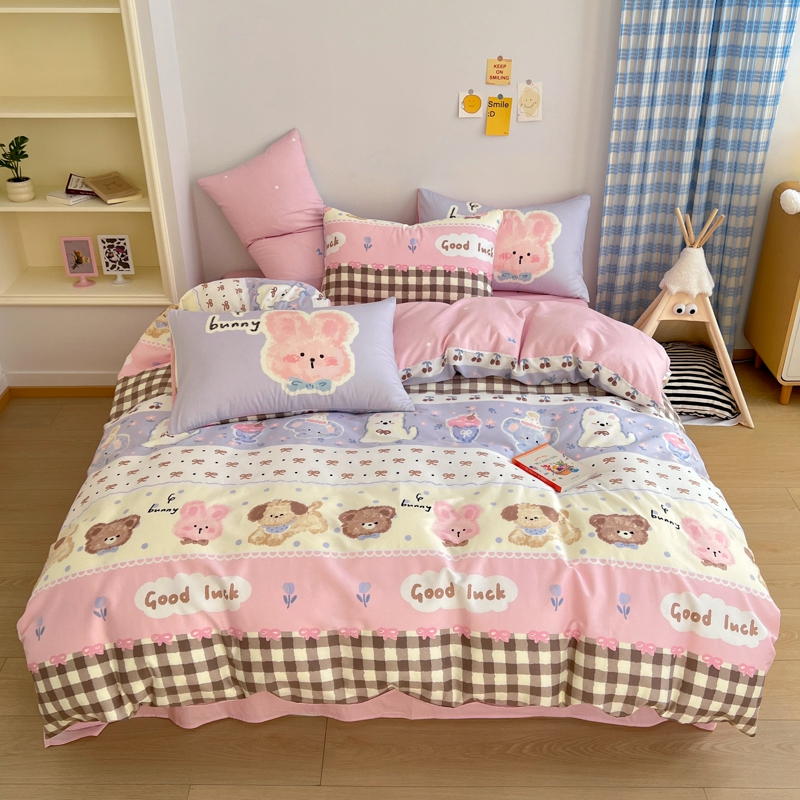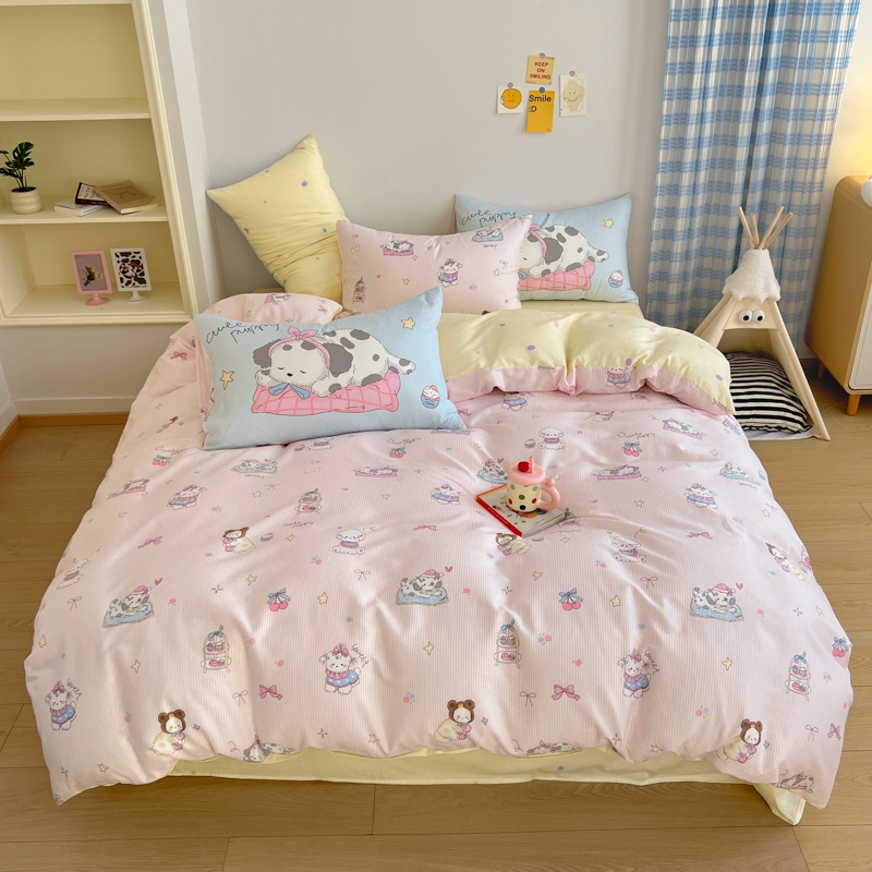 (总)桃喜 2026新款全棉混搭卡通印花学生三件套四件套,费尔岛蝴蝶结小狗,费尔岛小熊,可爱动物团,可爱小兔子,星星猫咪