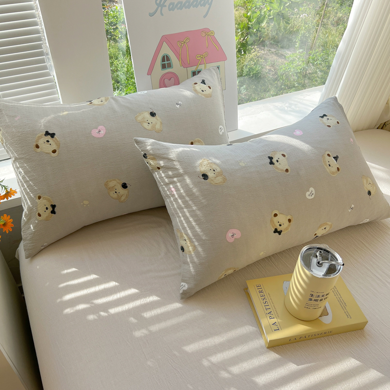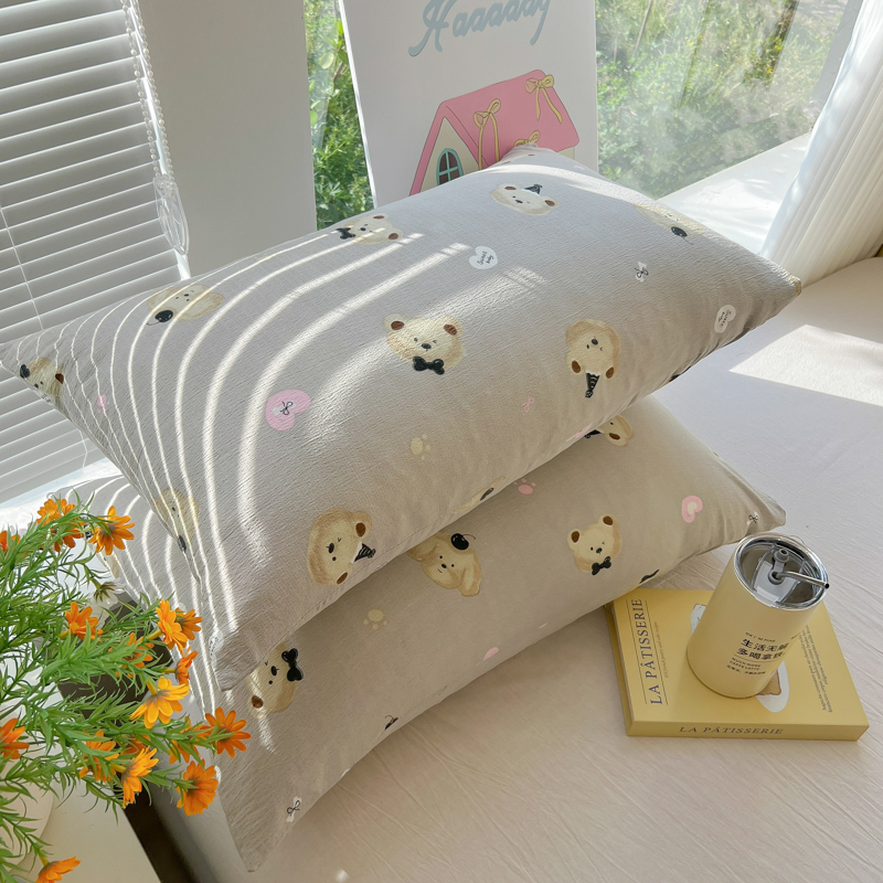 韩巢家纺 2025新款云感提花双层纱枕套头套枕芯套 奇妙小熊