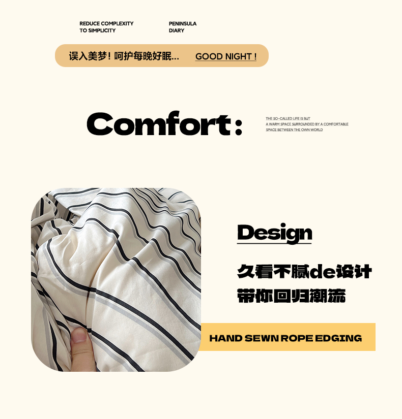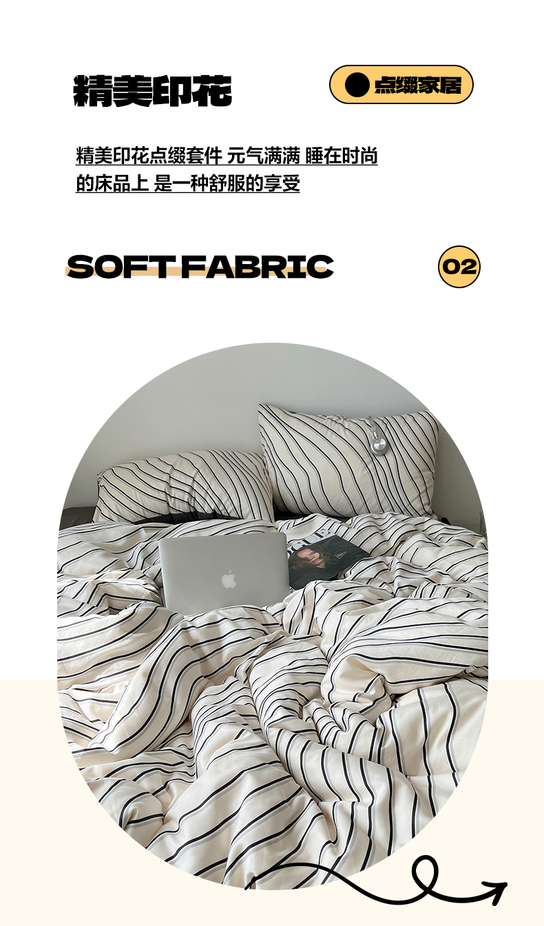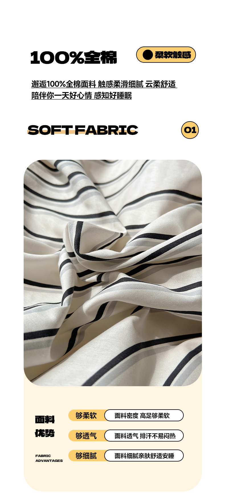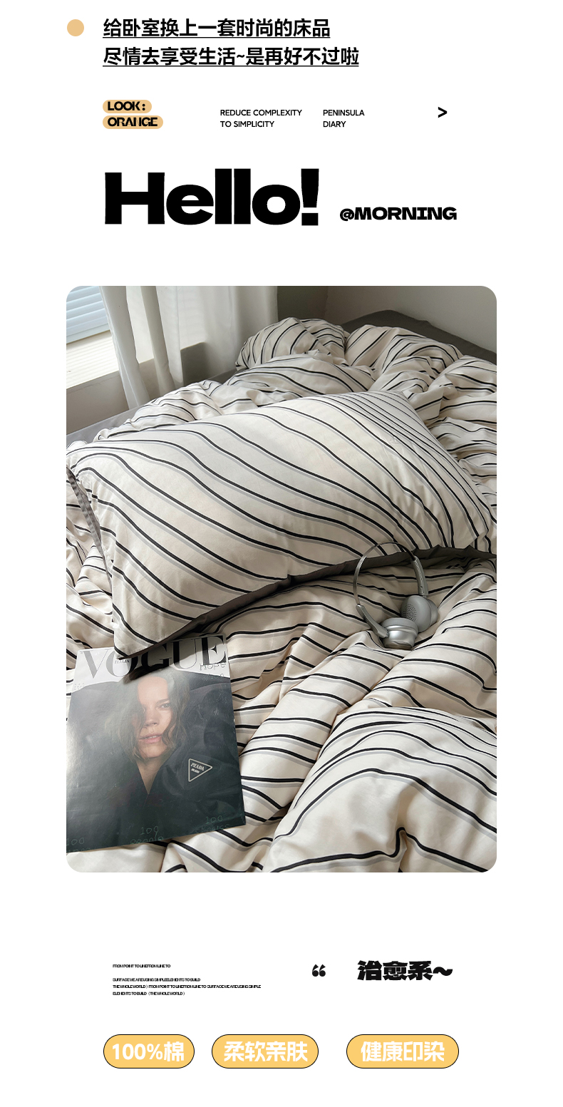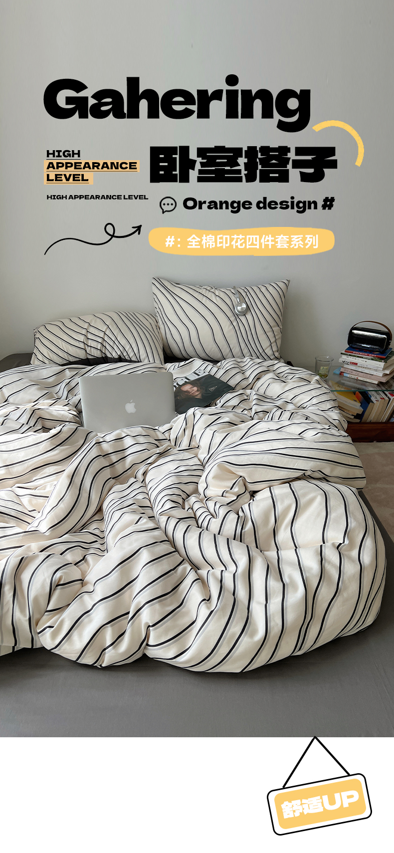 当前位置: 91家纺网 > 商品网购 > 床品套件 > 四件套 > 全棉普通四件套 > 雅居纺家纺 2025春夏新款全棉纯棉印花四件套 斜纹波条
