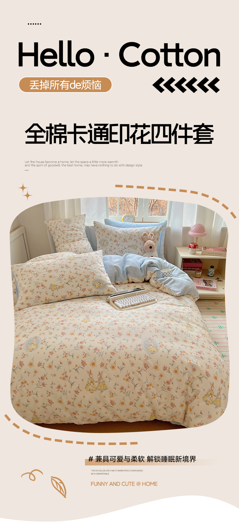 当前位置: 91家纺网 > 商品网购 > 床品套件 > 四件套 > 全棉普通四件套 > 雅居纺家纺 2025春夏新款全棉纯棉印花四件套 小精灵