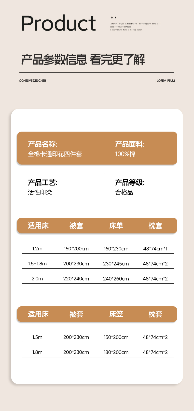 【床笠款】1.5四件套-被套200x230 | ¥90.00 |