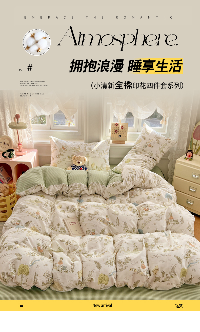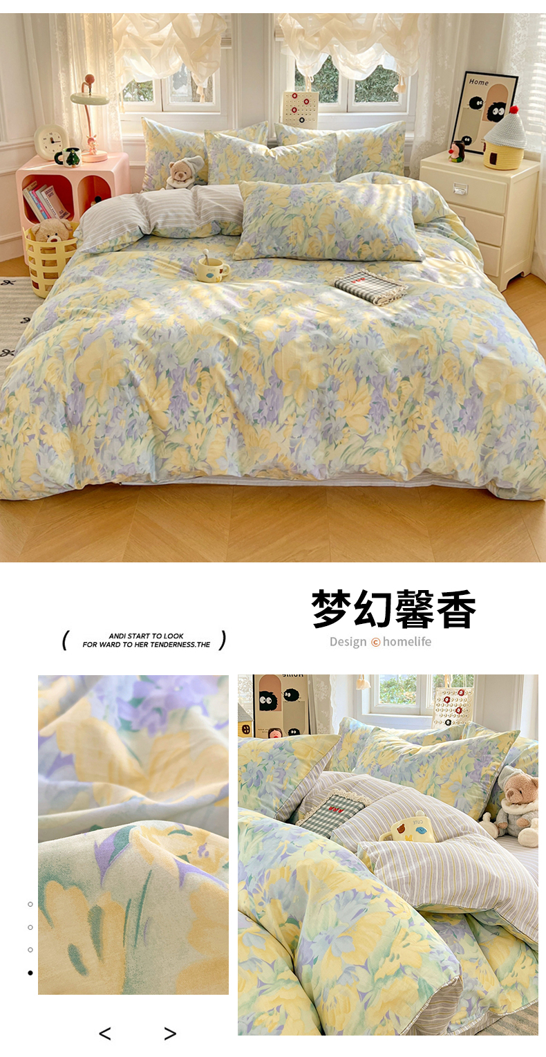 商品名称:(总)2025年新款13070全棉四件套加厚斜纹田园清新风四件套纯棉床单床笠款床品套件
