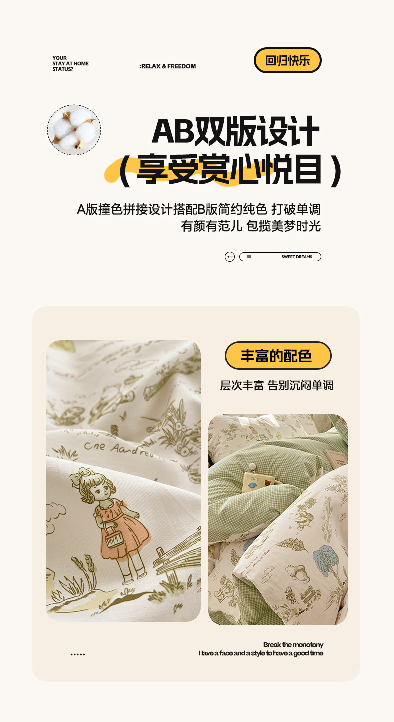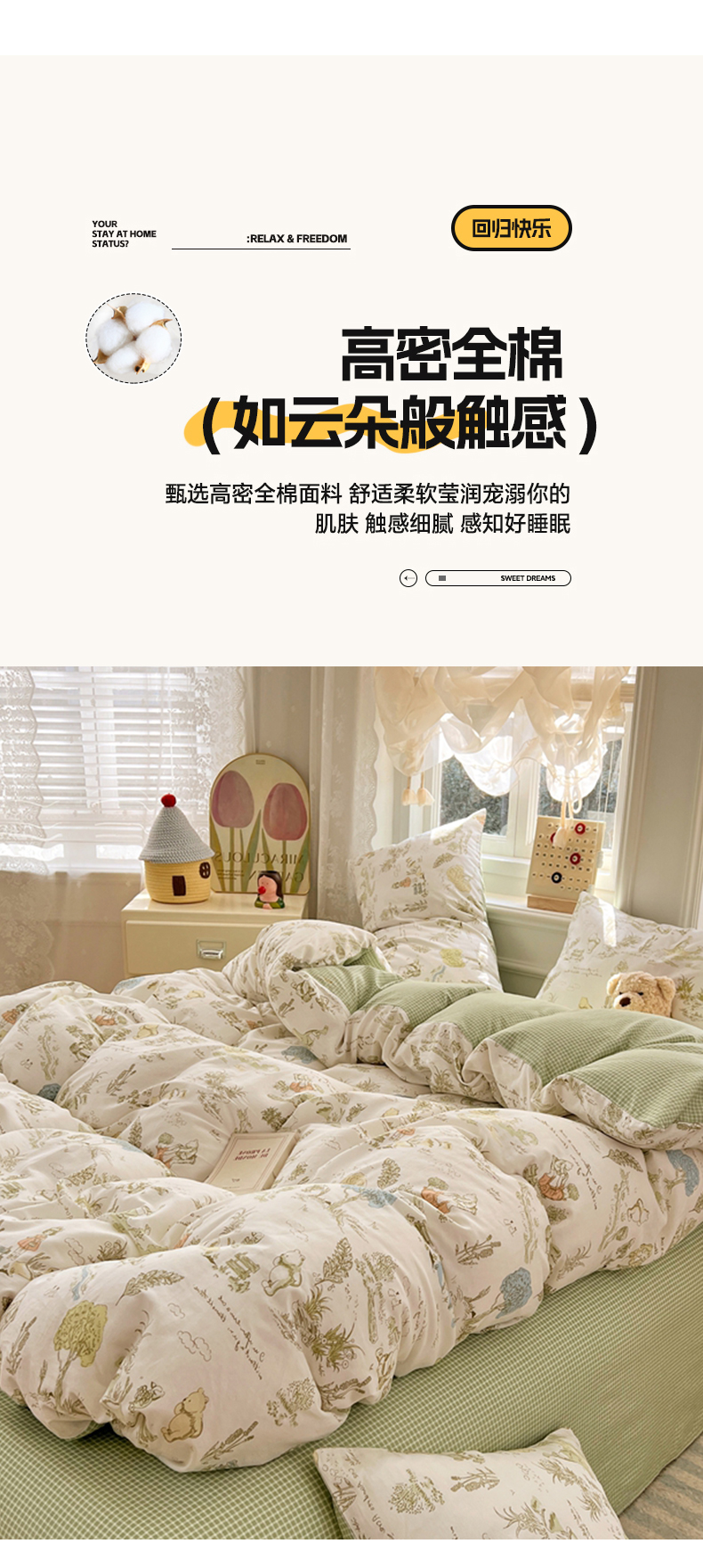 (总)2025年新款13070全棉四件套加厚斜纹田园清新风四件套纯棉床单床笠款床品套件