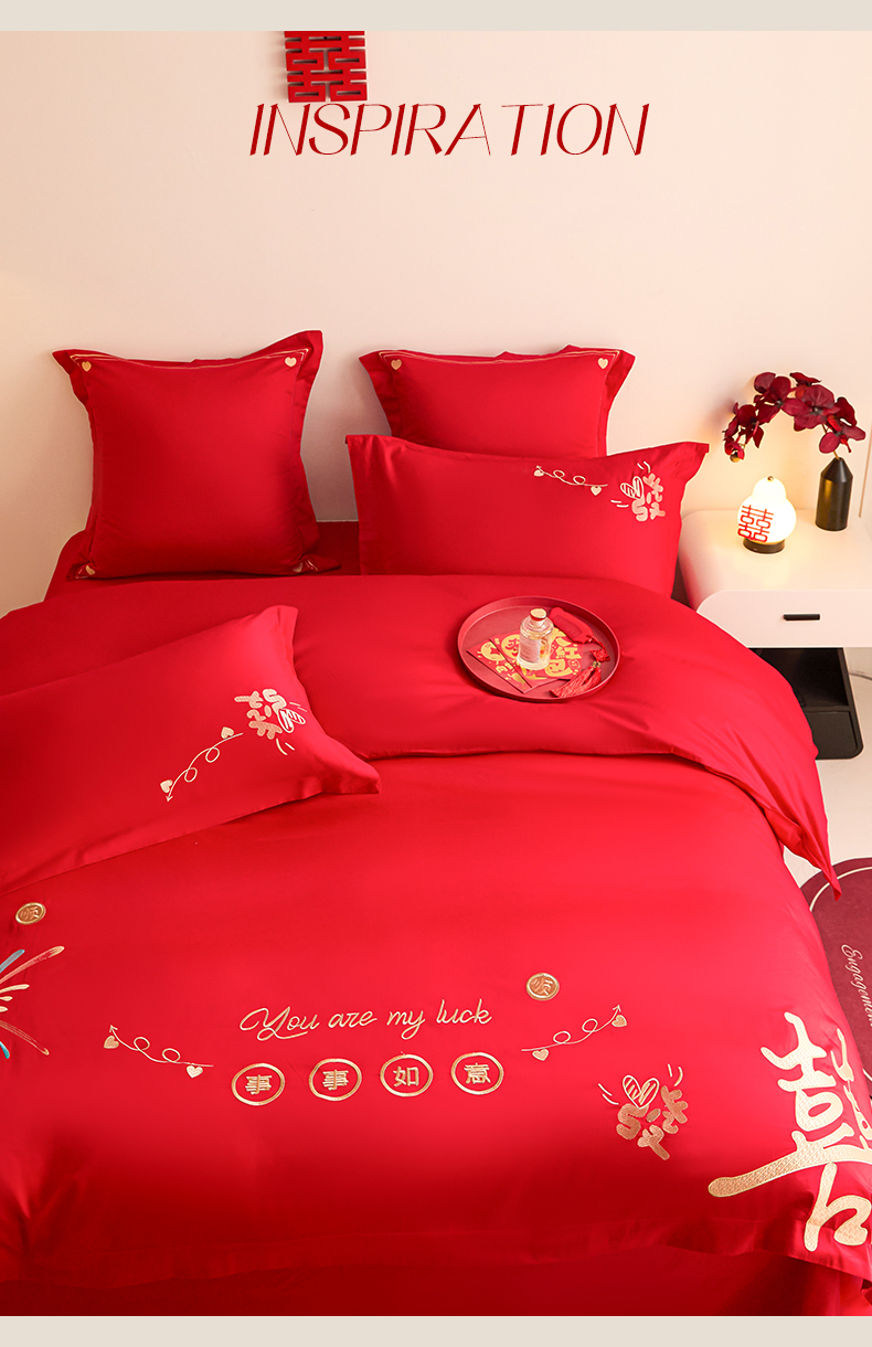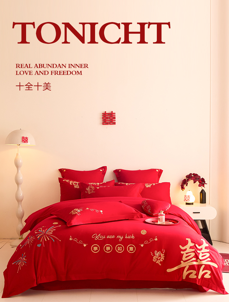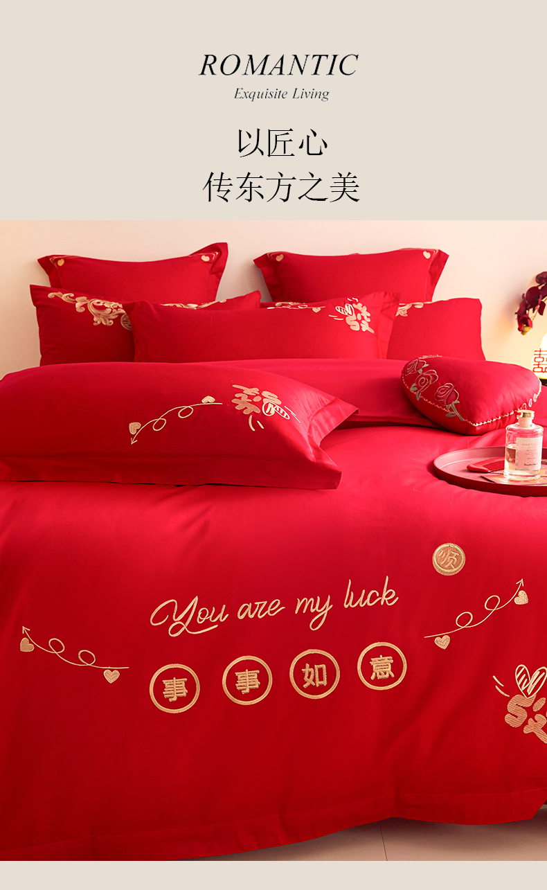 当前位置: 91家纺网 > 商品网购 > 床品套件 > 四件套 > 婚庆四件套 > 东方合美(原:皇家传奇) 2025新款长绒棉纯棉婚庆刺绣小红书系列四件套 十全十美