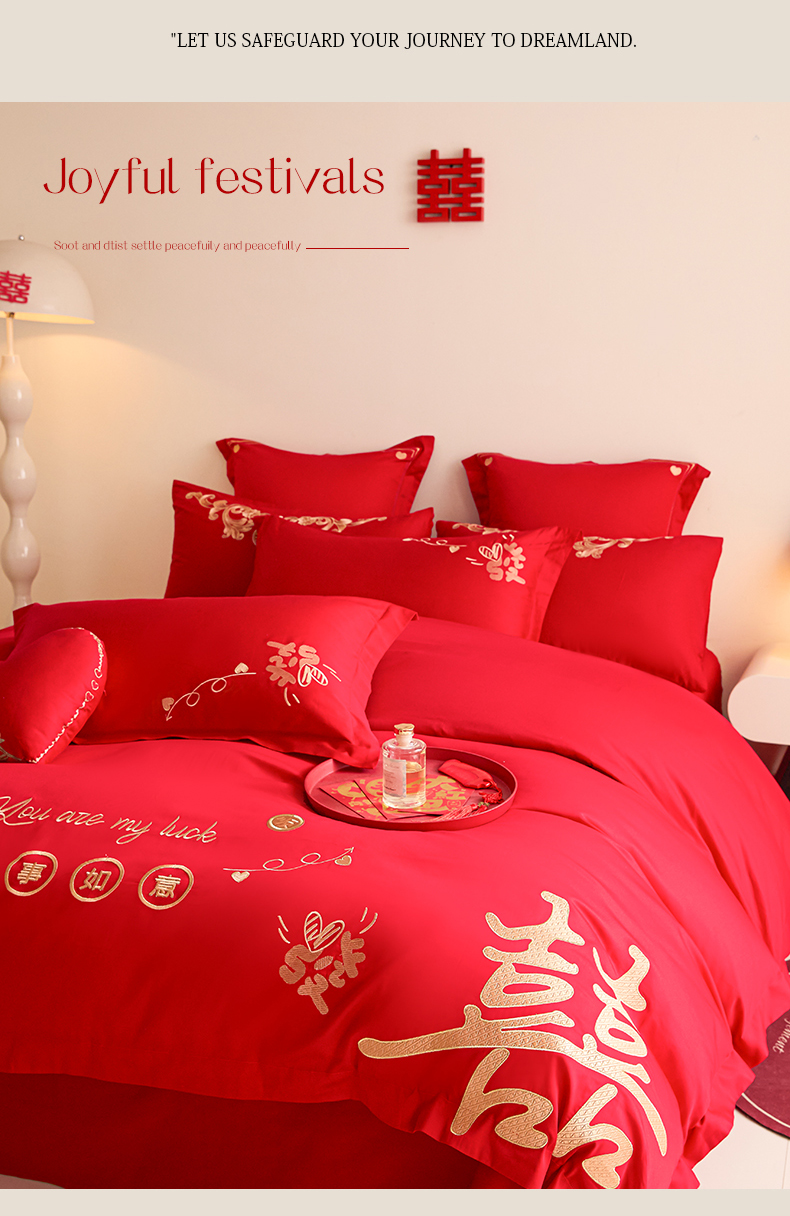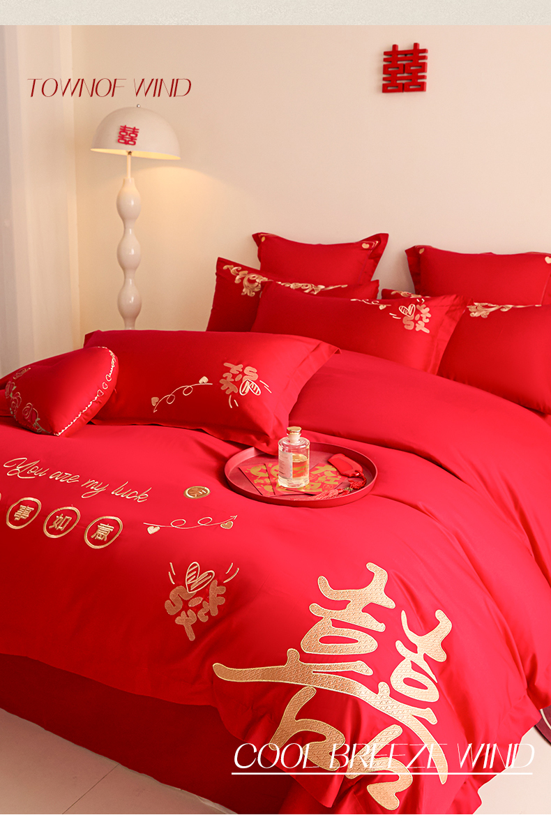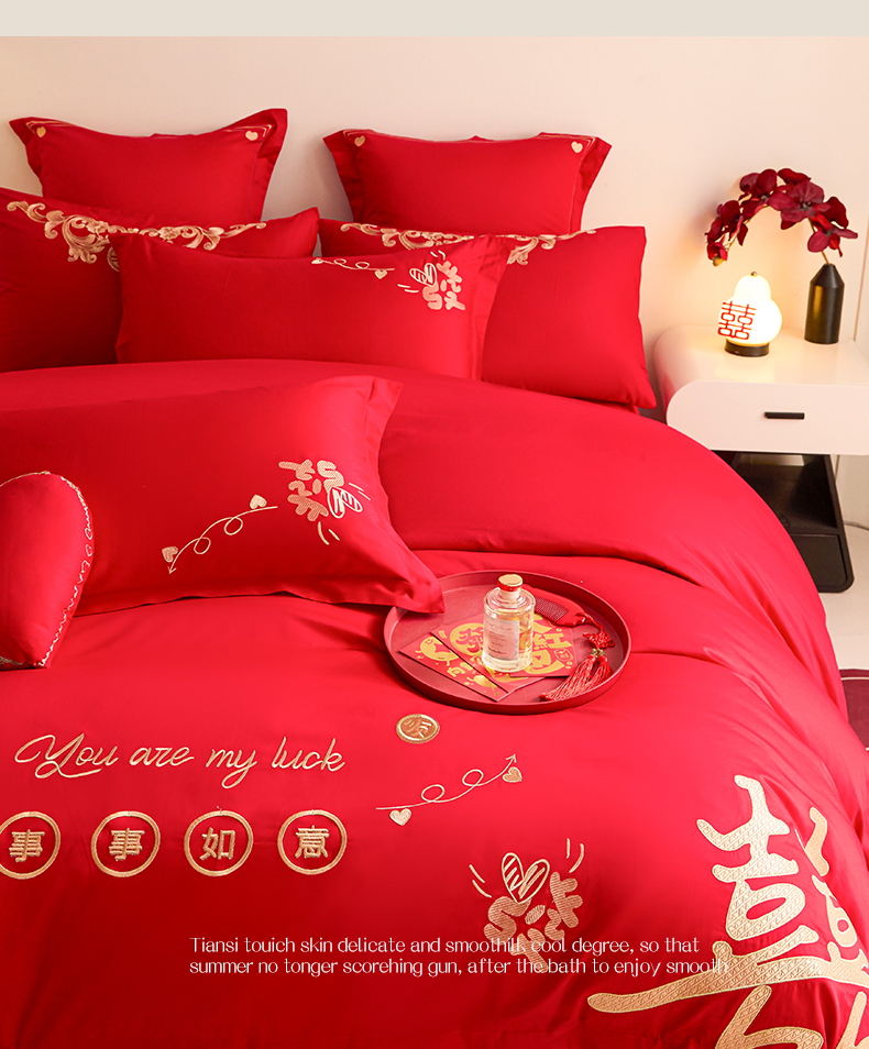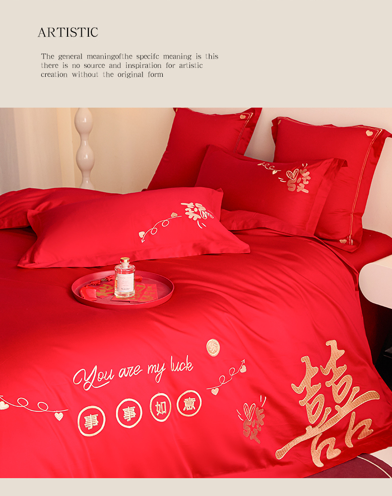 当前位置: 91家纺网 > 商品网购 > 床品套件 > 四件套 > 婚庆四件套 > 东方合美(原:皇家传奇) 2025新款长绒棉纯棉婚庆刺绣小红书系列四件套 十全十美