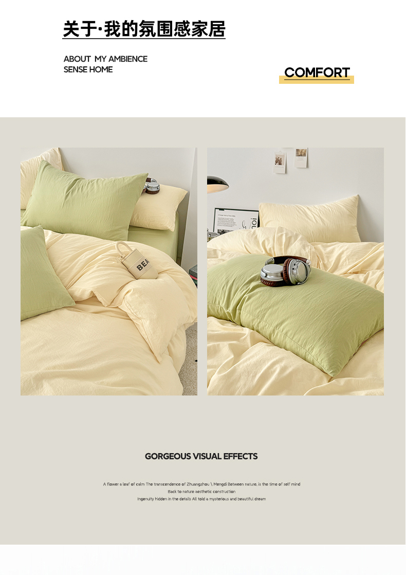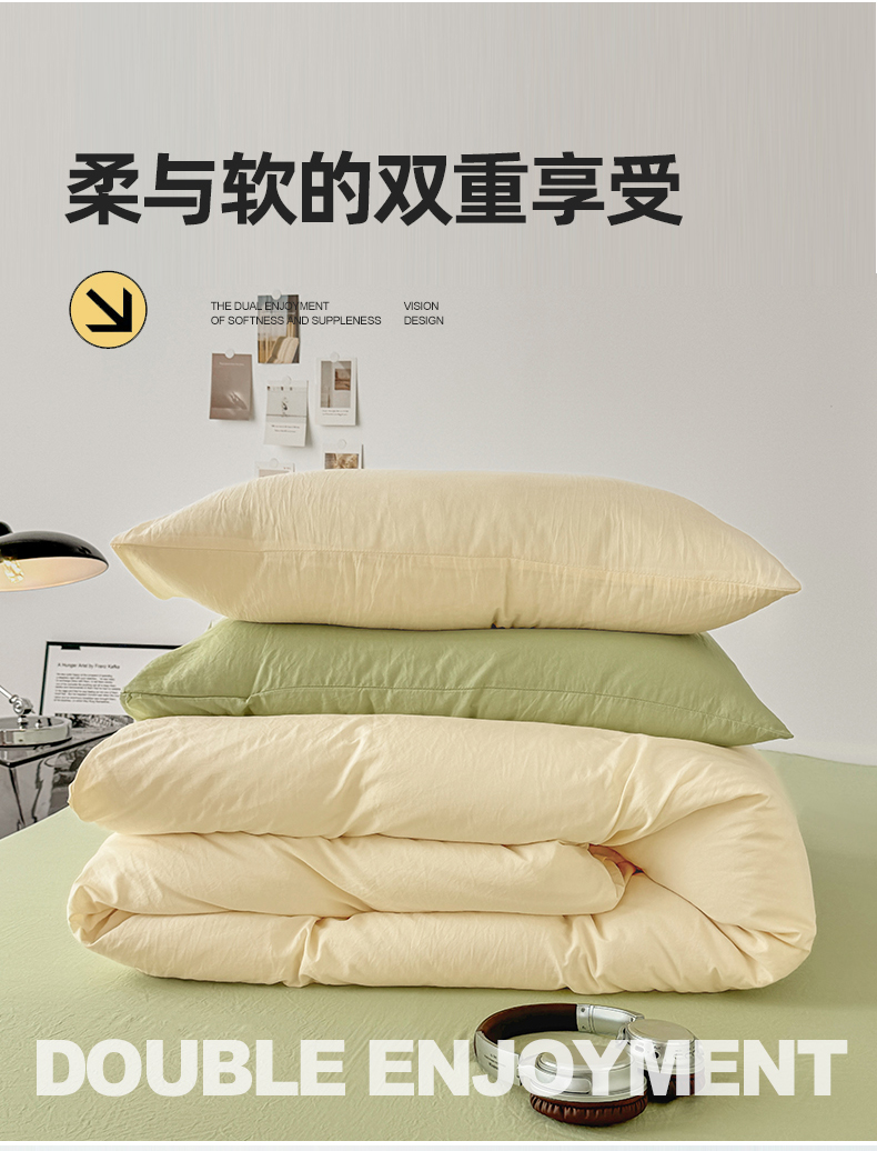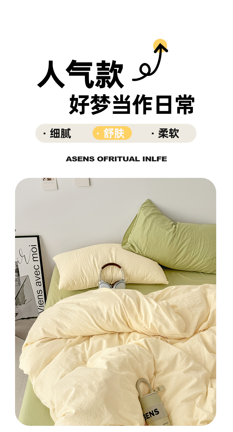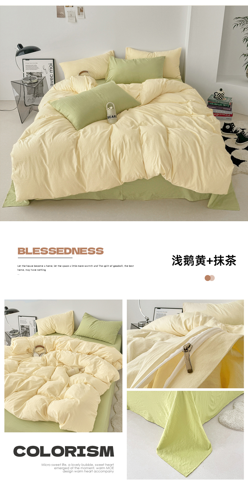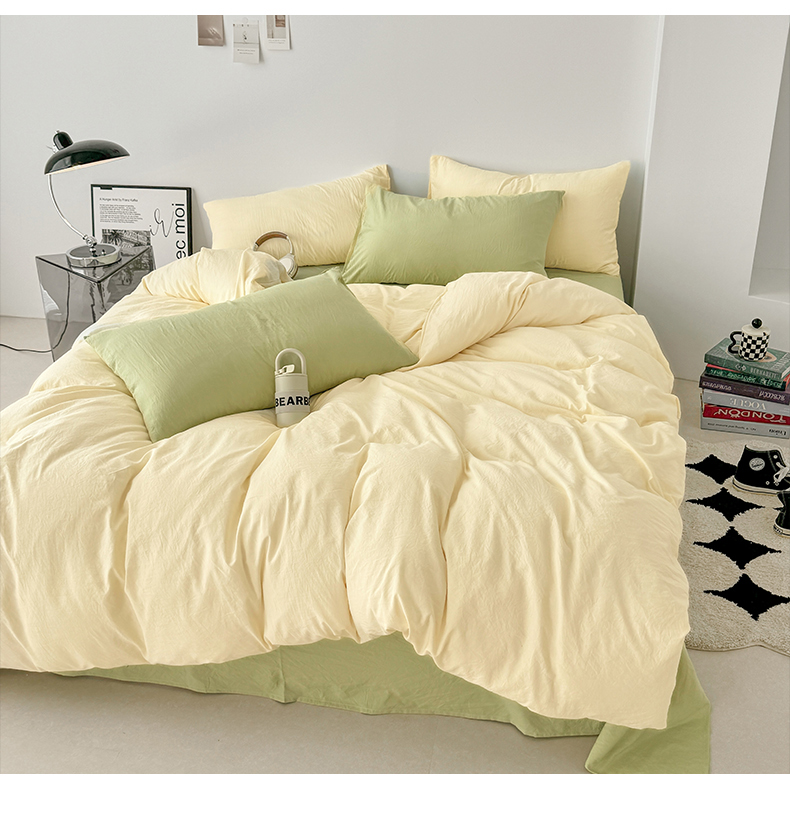 当前位置: 91家纺网 > 商品网购 > 床品套件 > 四件套 > 水洗棉四件套 > 芷凡家纺 2025新款A类加厚水洗棉云朵棉四件套 浅鹅黄+抹茶